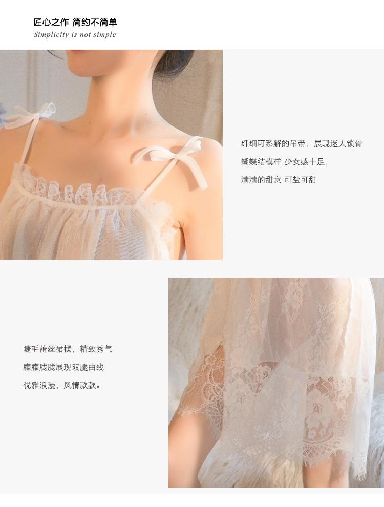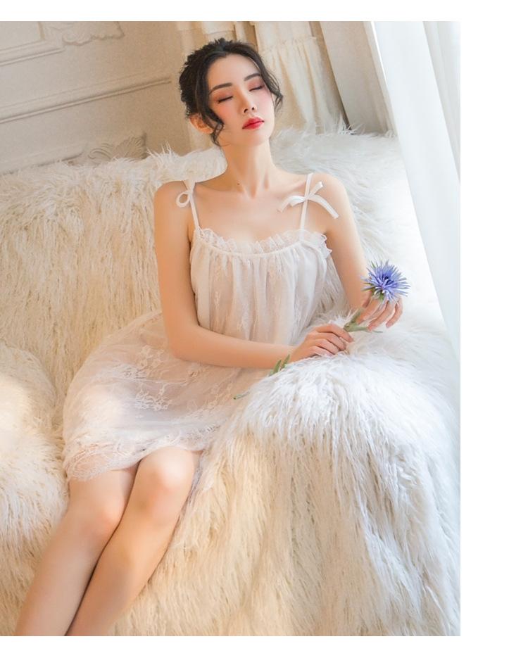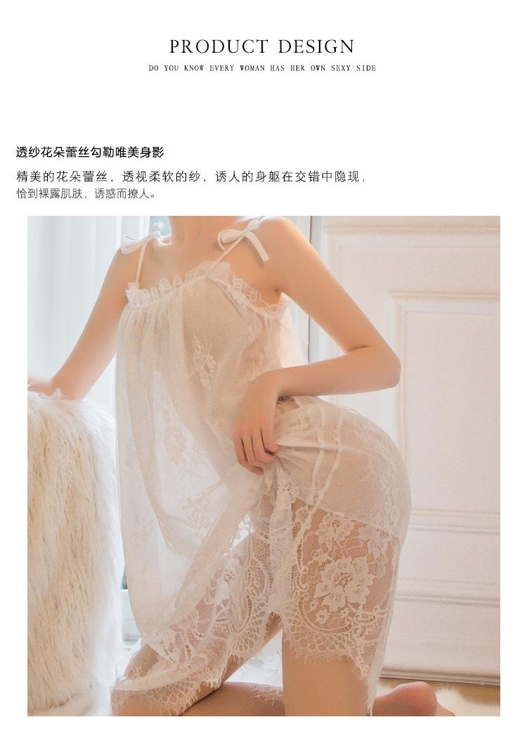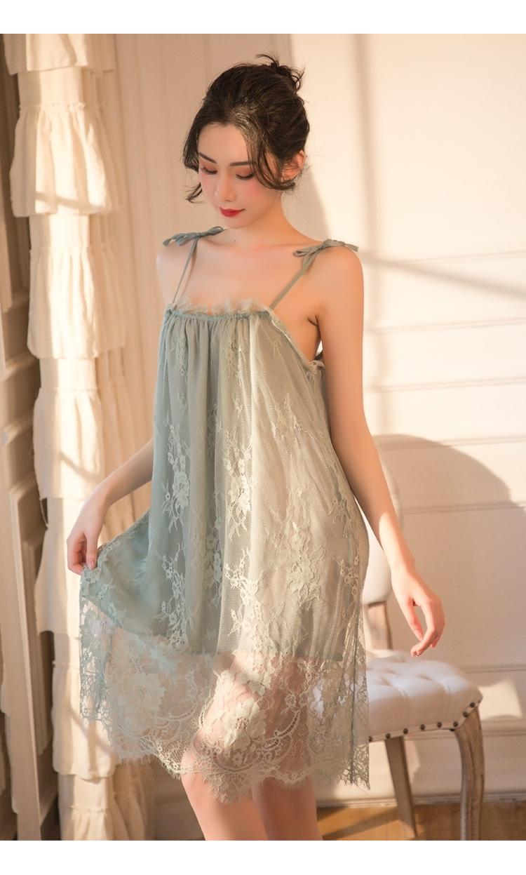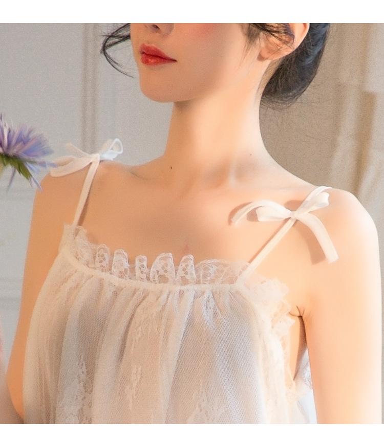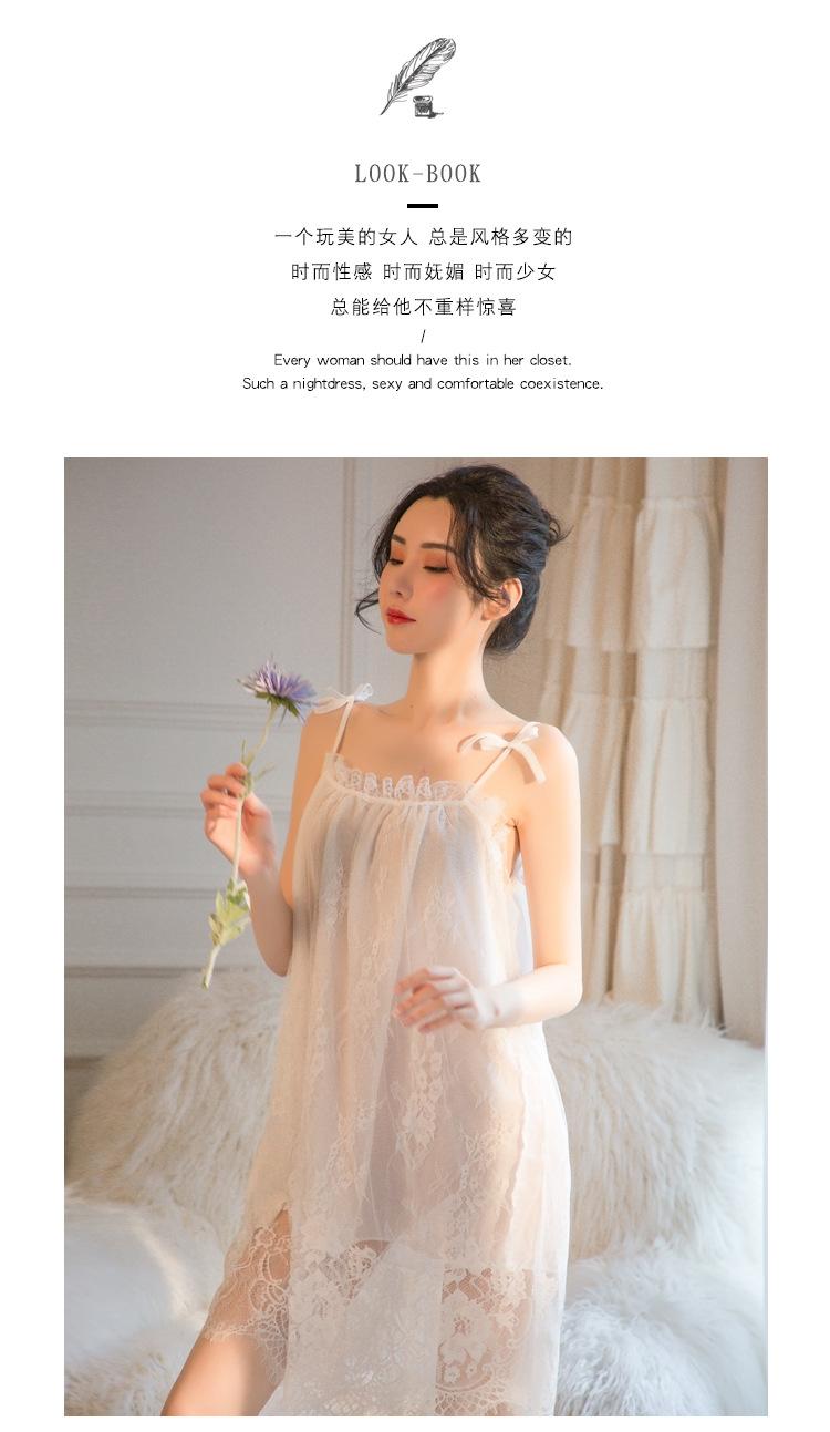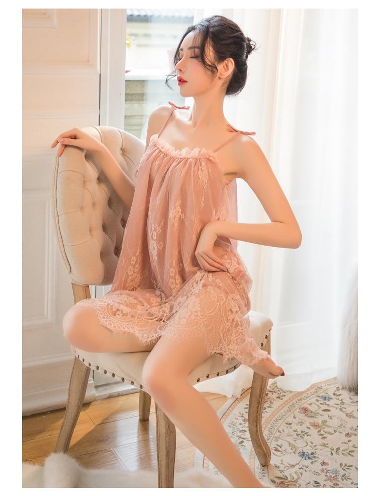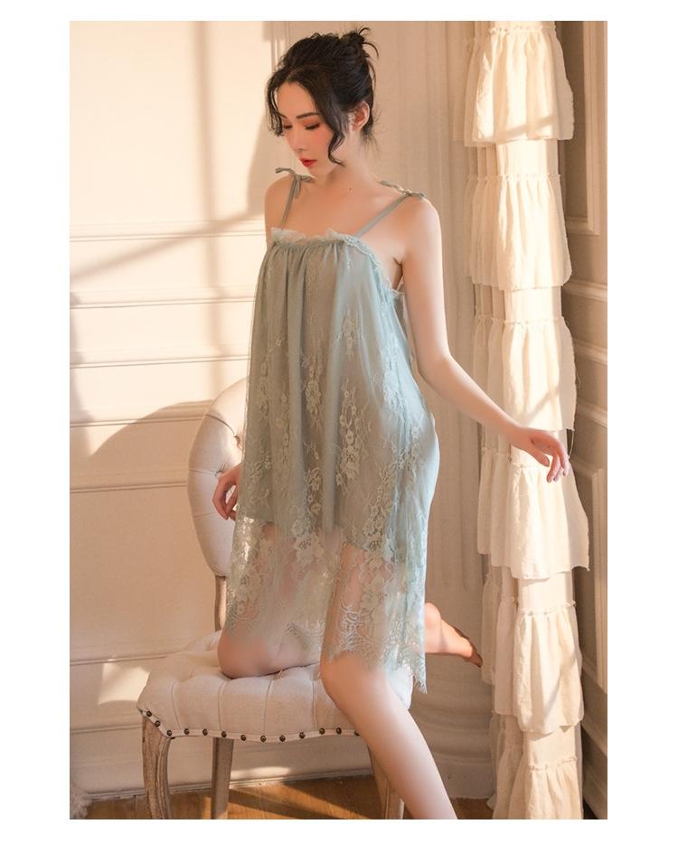 Ropa Interior Sexy Camisón de Encaje y Malla con Perspectiva para Mujer Deseo Puro Lindo Ropa para el Hogar Pijamas Delgados y Sexys 1759