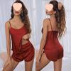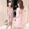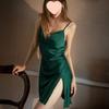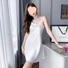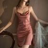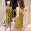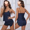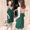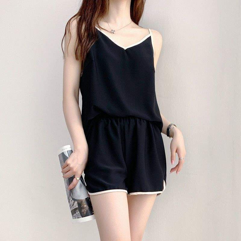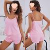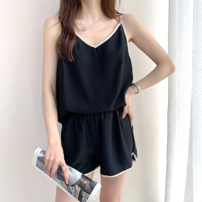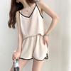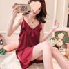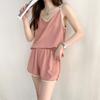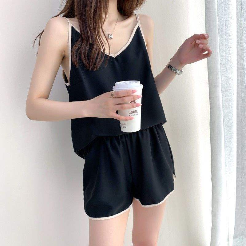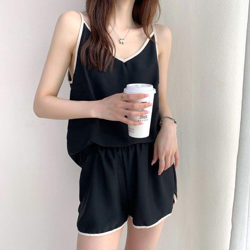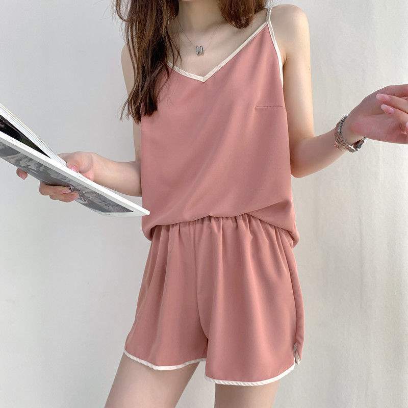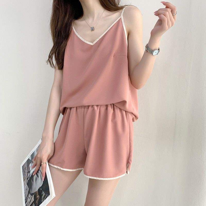 Pijama de verano para mujer, de seda helada, fino, sexy, con cuello, de satén, camisola, pantalones cortos, traje de dos piezas holgado