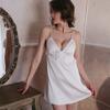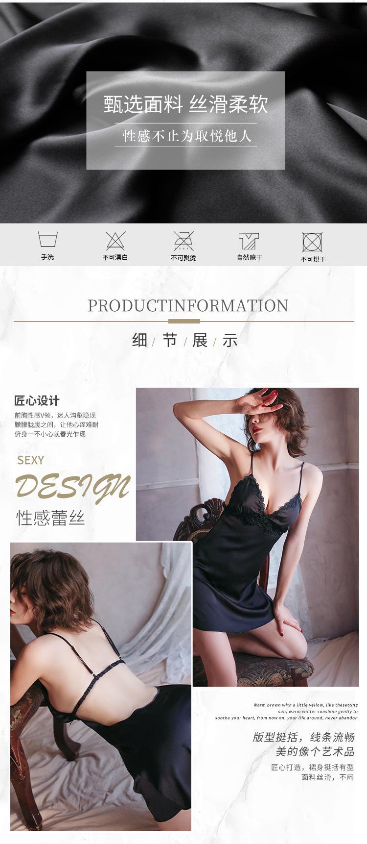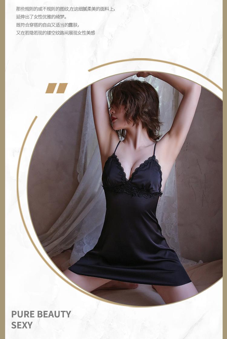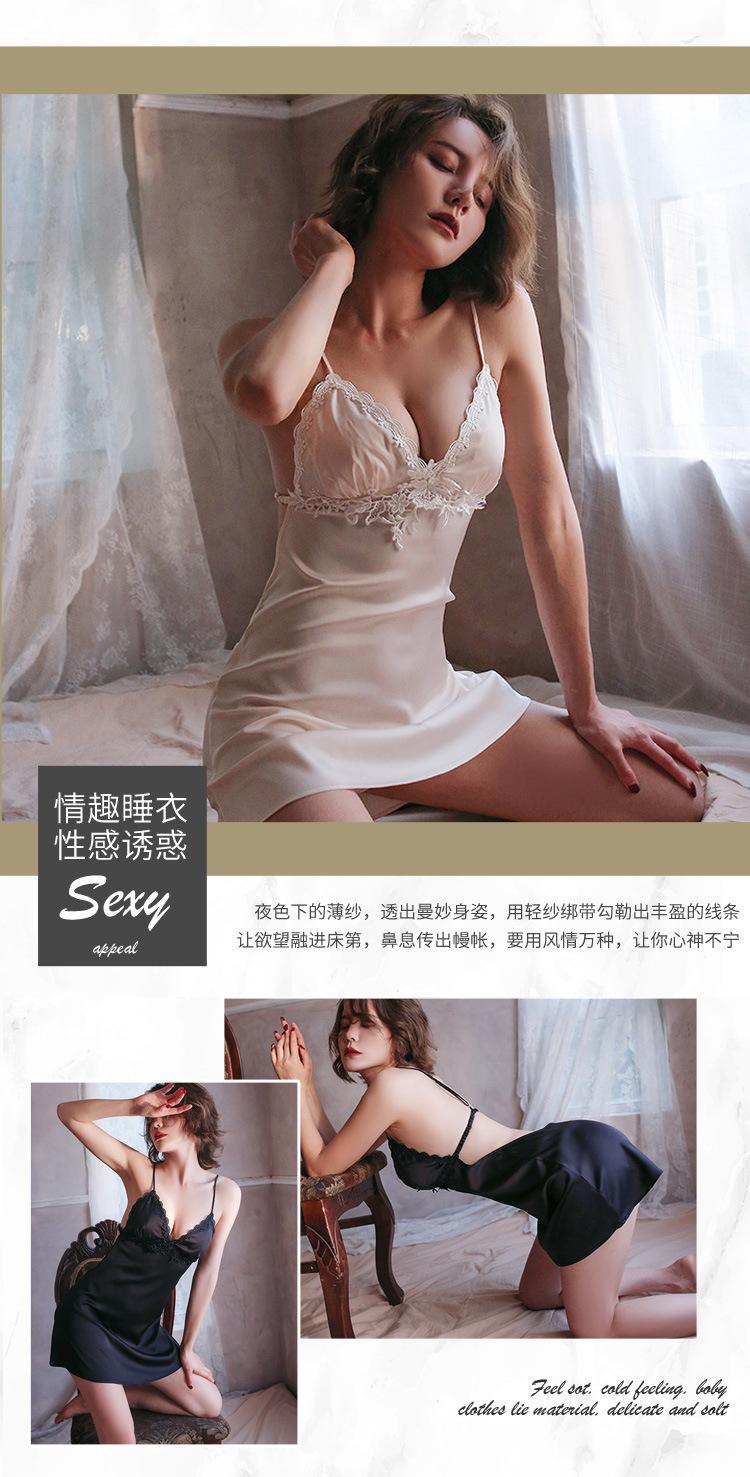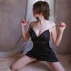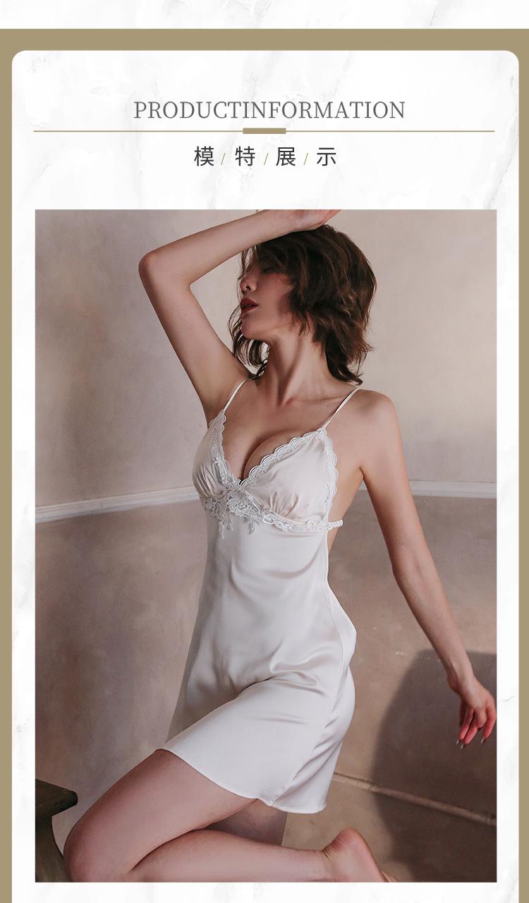 Lencería Sexy Camisón Sexy con Tirantes para Mujer Satín Ropa para el Hogar Pijama Elegante Look Adelgazante Vestido Grande sin Espalda 1733