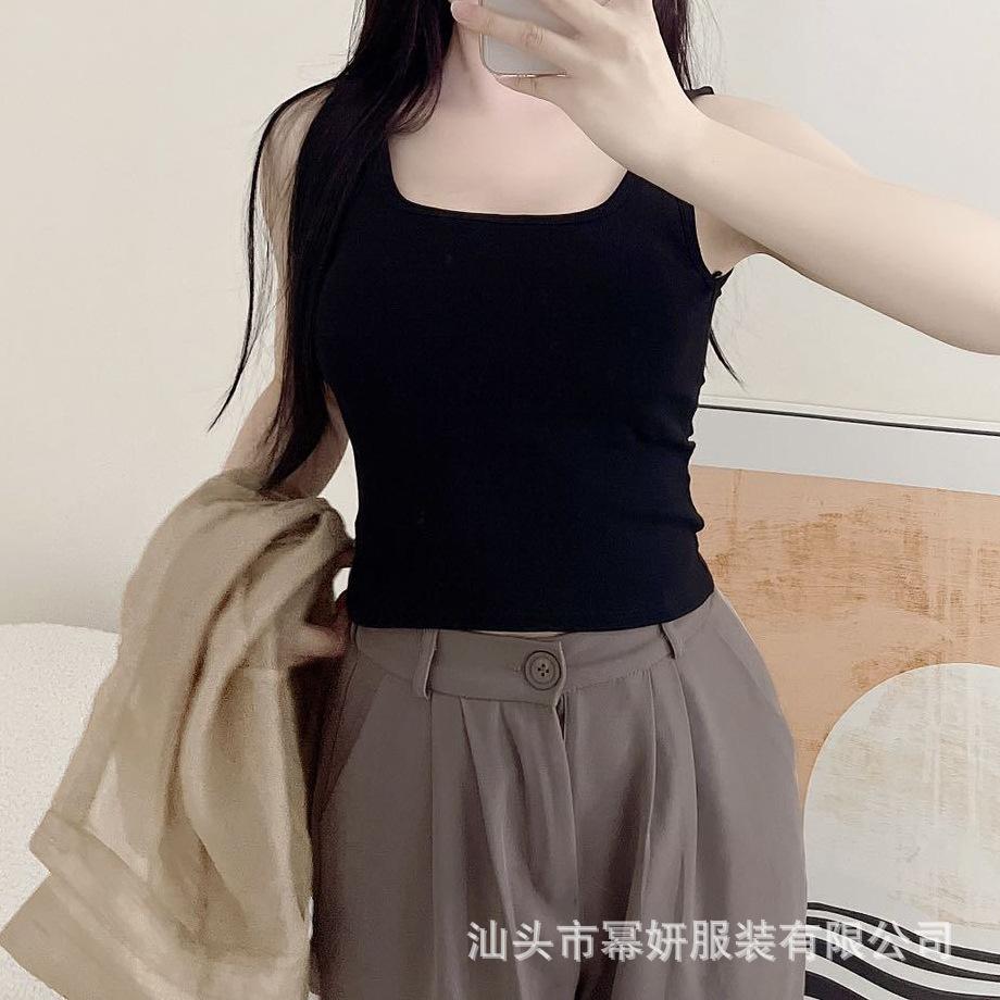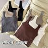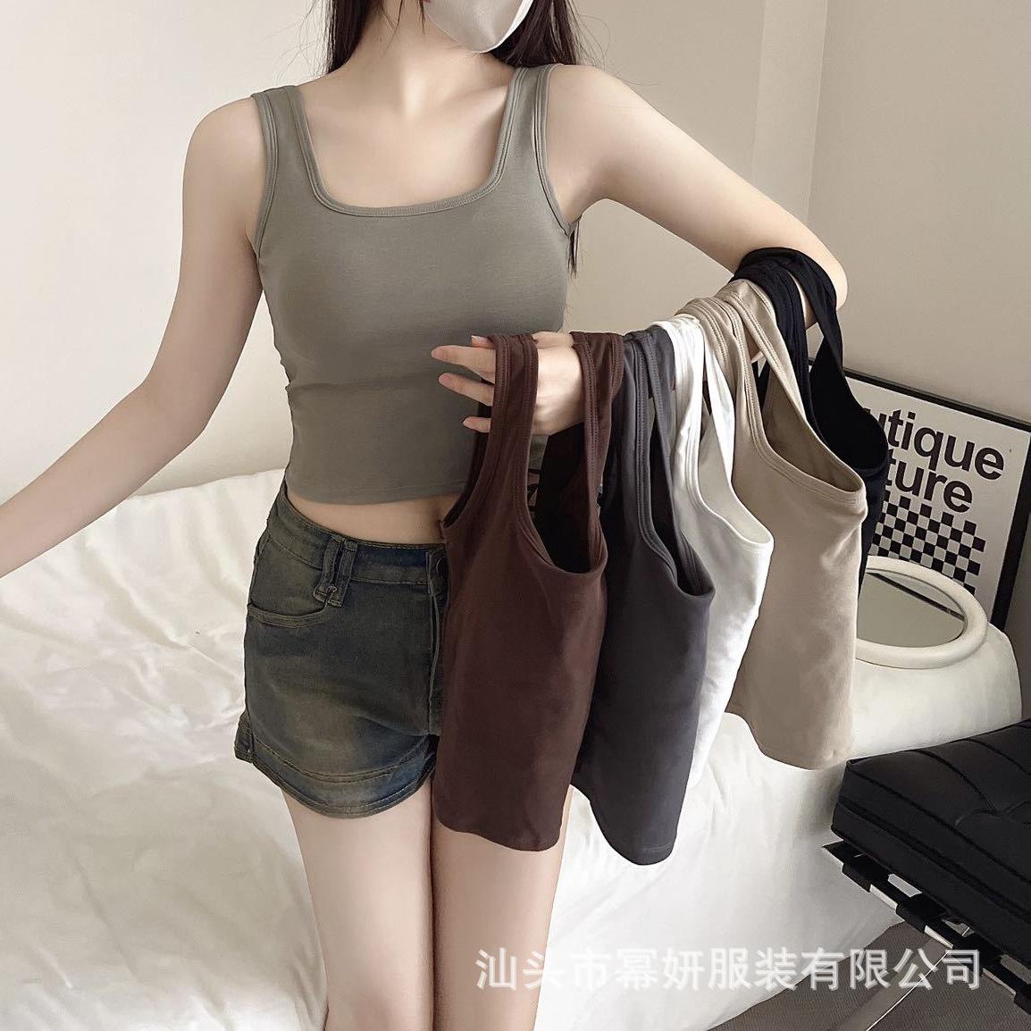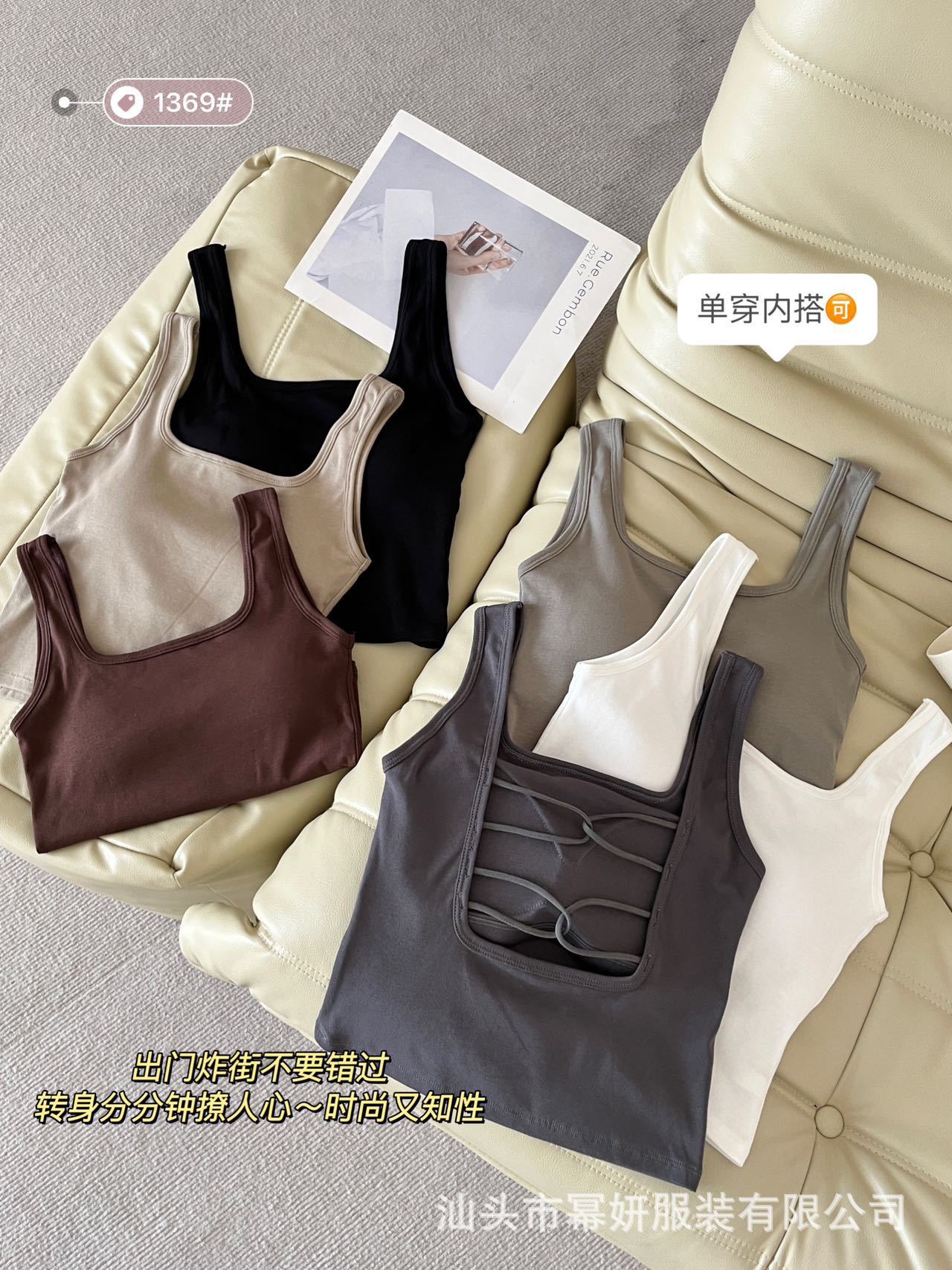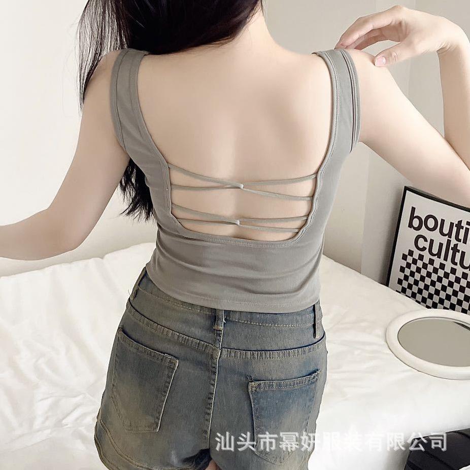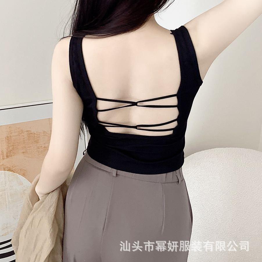 Algodón Puro Sexy Calado Espalda Hermosa con Almohadilla en el Pecho Tirante Ancho Antideslumbrante Camisola Chaleco Top Puro Slim