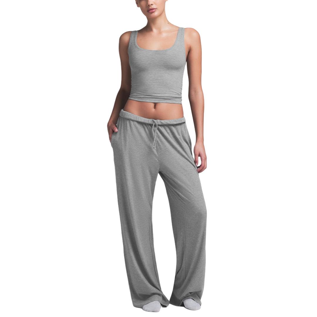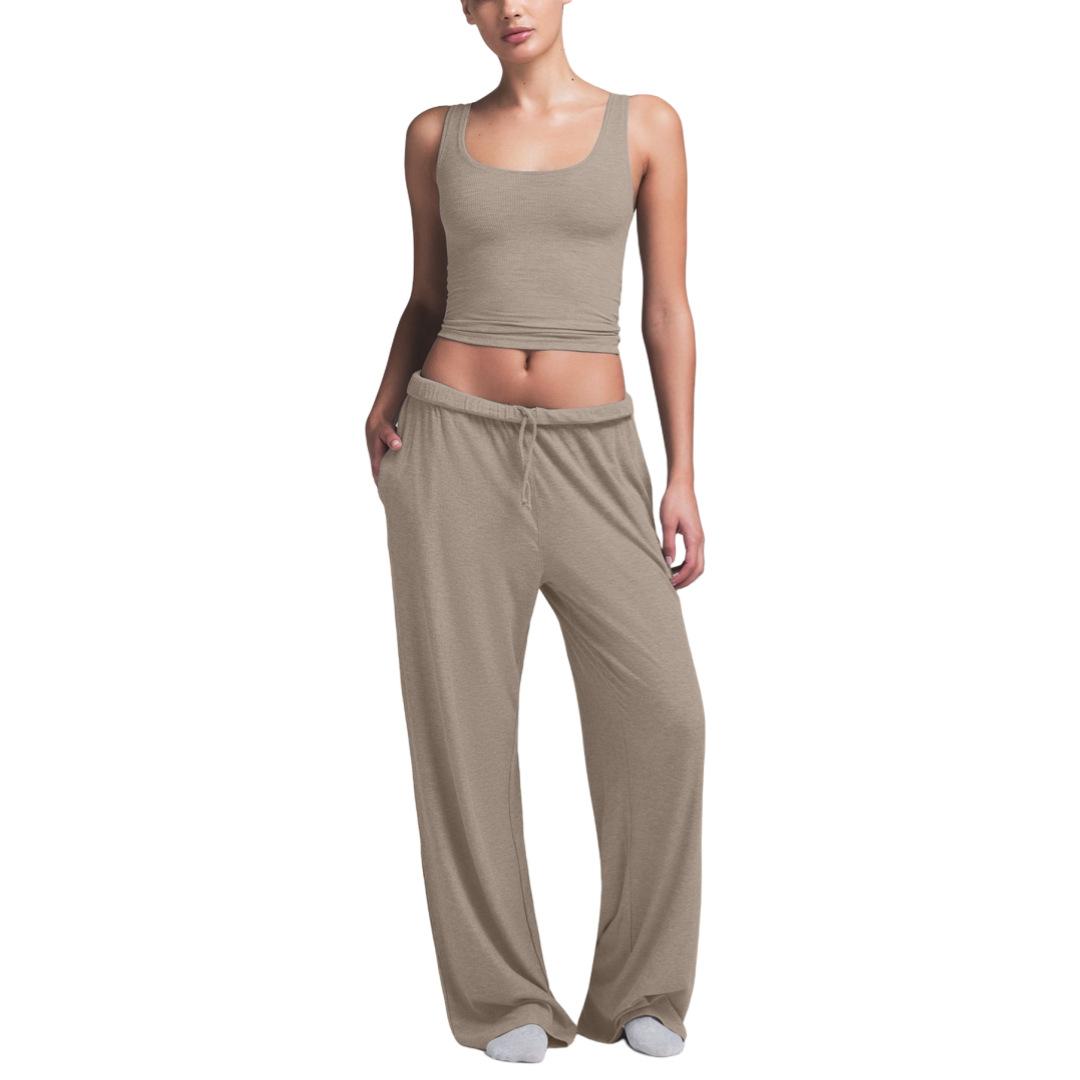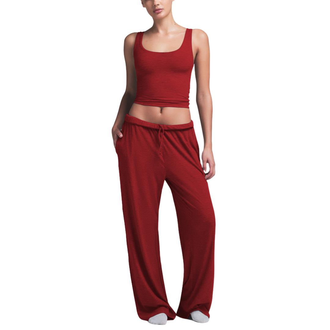 Conjunto de Ropa para el Hogar para Mujer Popular Europeo y Americano para Deportes y Ocio Yoga Pantalones Casuales Chaleco de Verano con Ombligo Descubierto