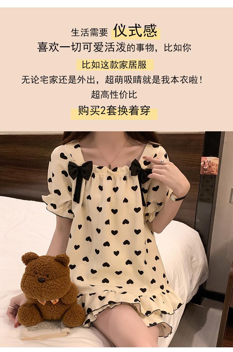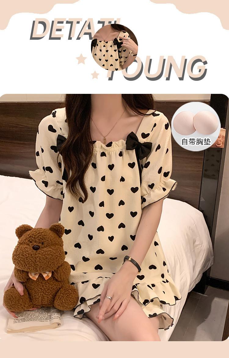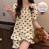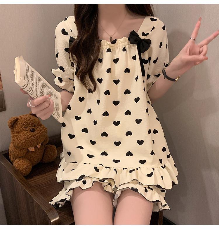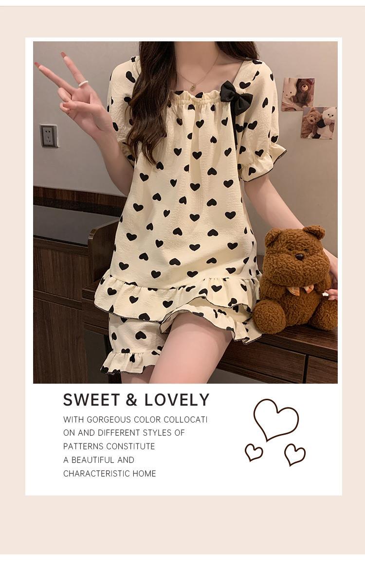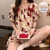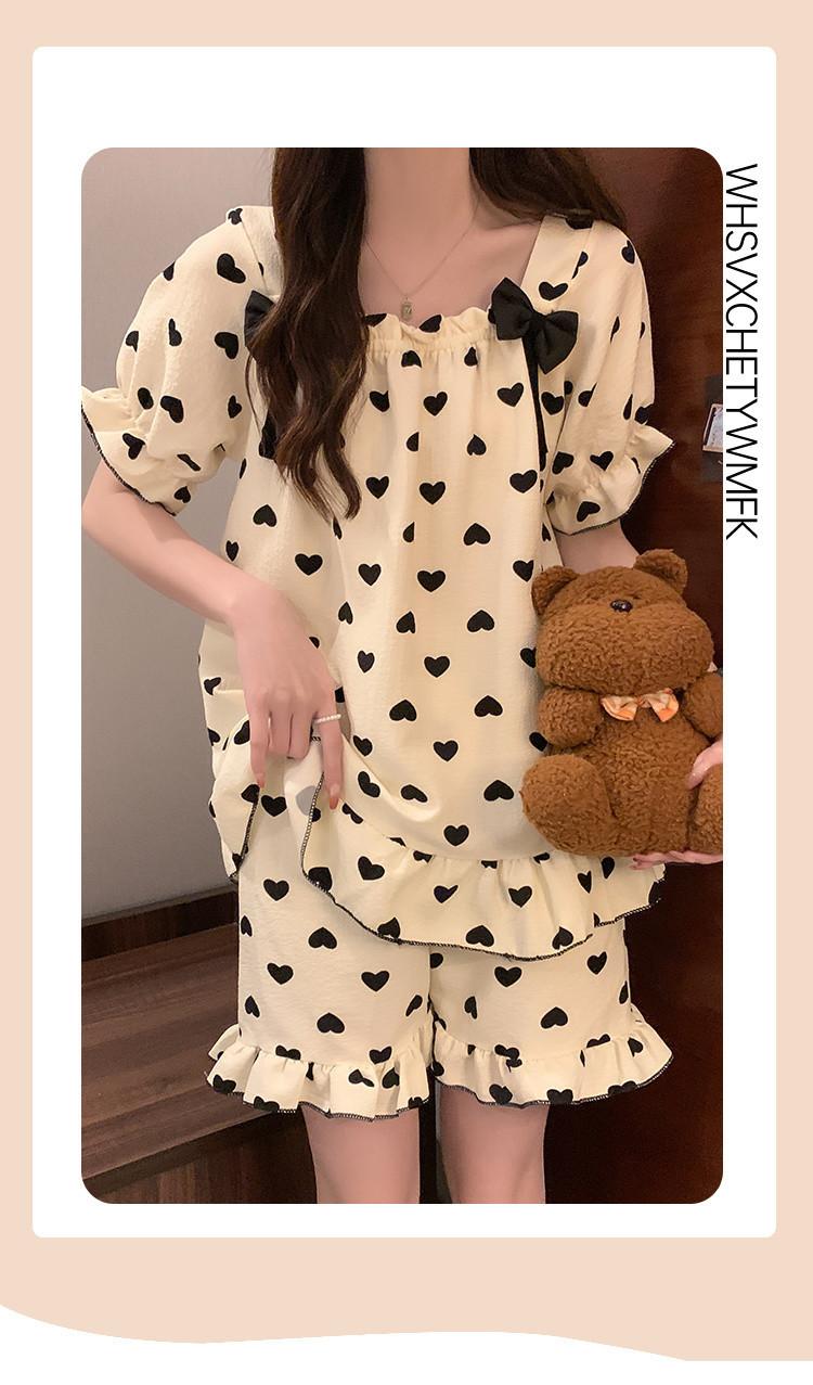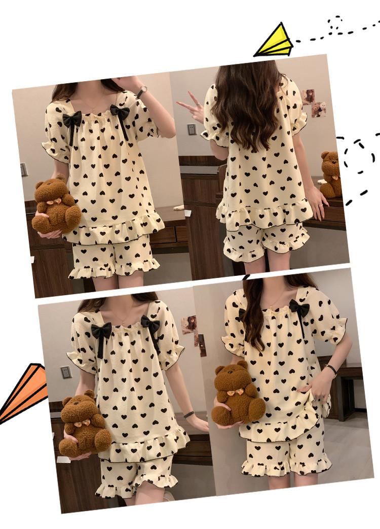 Pijama con Almohadillas para el Busto para Mujer, Verano Manga Corta, Dulce, Antigolpes, Estilo Popular Lindo, Conjunto Delgado de Verano para Estar en Casa