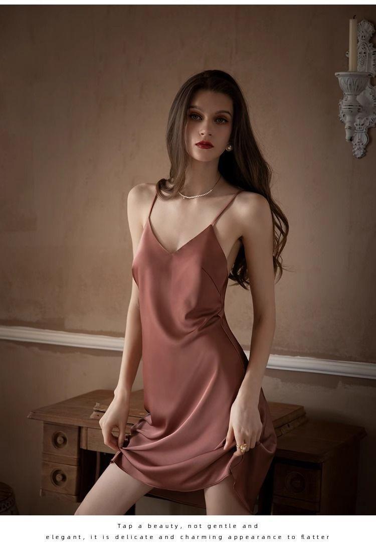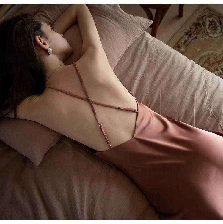 Liquidación Nuevo Deseo Puro Seda Sexy Camisón para Mujer Diseño de Verano Tirante Seda de Hielo Hermosa Espalda Ropa de Dormir Ropa de Descanso