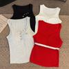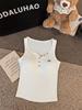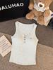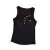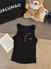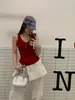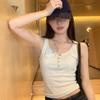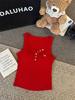 Camisola exterior con botones y cuello en V rojo para mujer, nueva camiseta de verano sin mangas, ajustada, que cubre el pecho y la espalda.