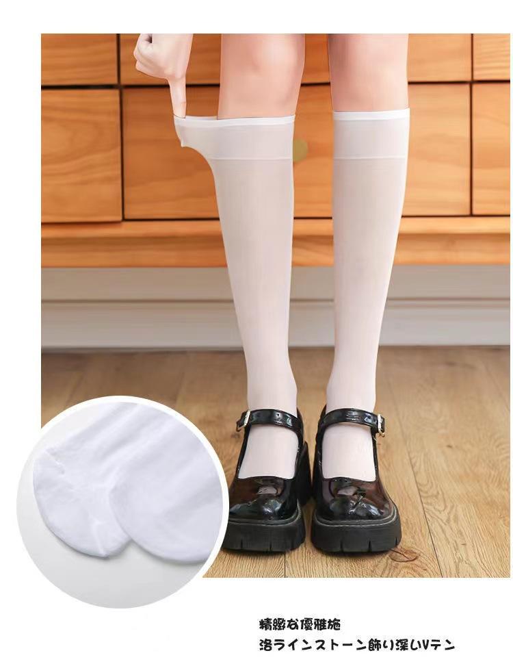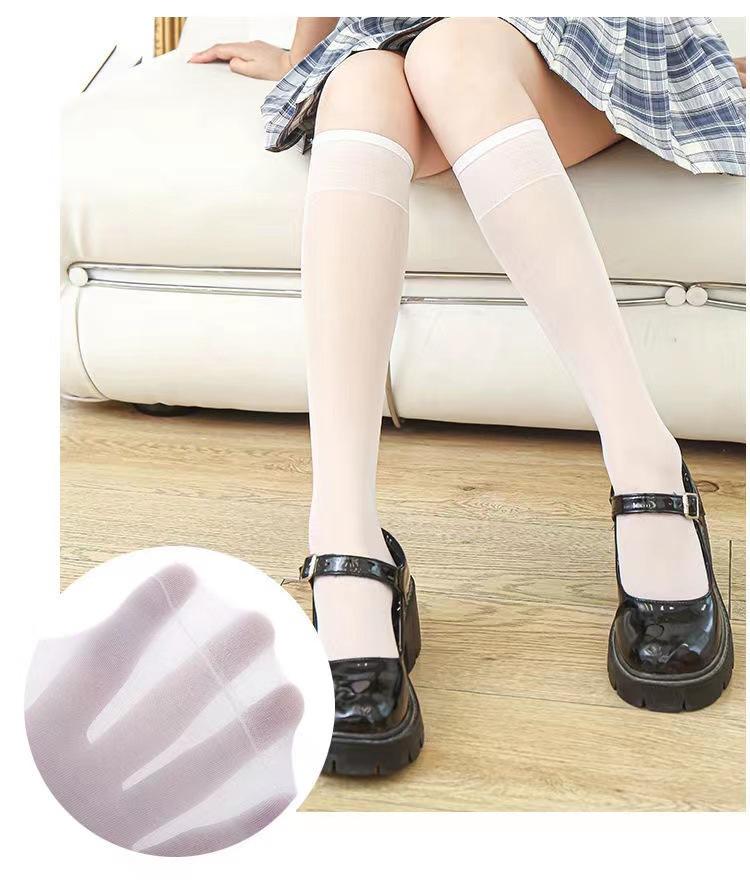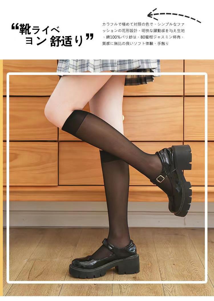 Calcetines de Media Caña, Translúcidos y Delgados, Calcetines Largos de Verano a la Moda Blancos, Medias de Media Caña Jk para Mujer, Calcetines de Media Caña Negros Estilo Japonés