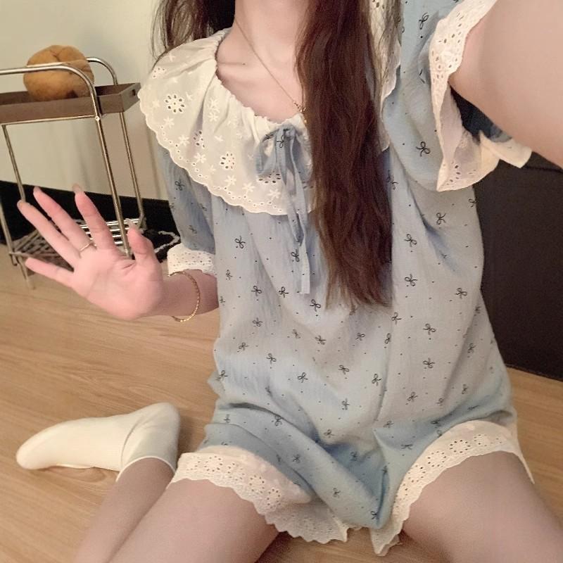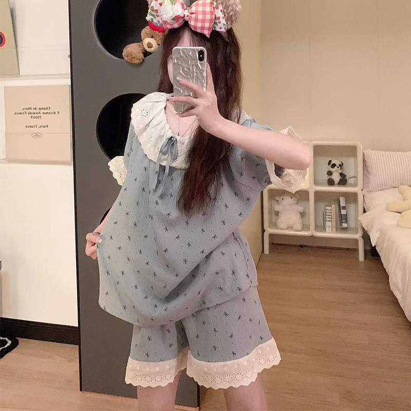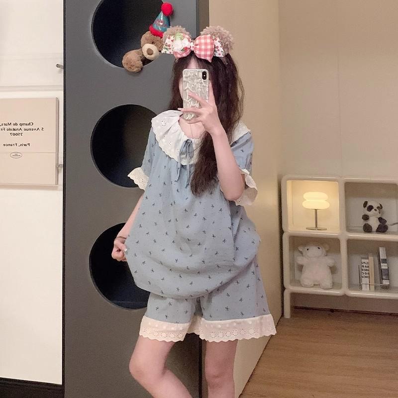 Pijama de Verano de Manga Corta para Mujer, Estilo Coreano Holgado, Ropa de Casa de Verano Fina Estilo Princesa Linda y Dulce