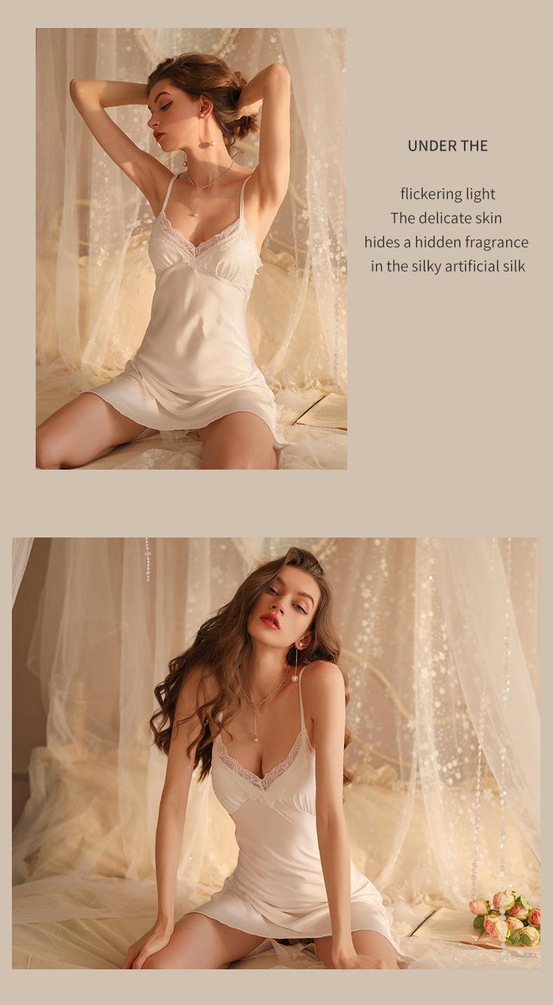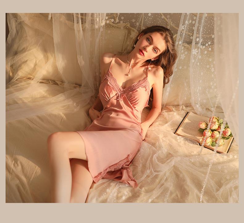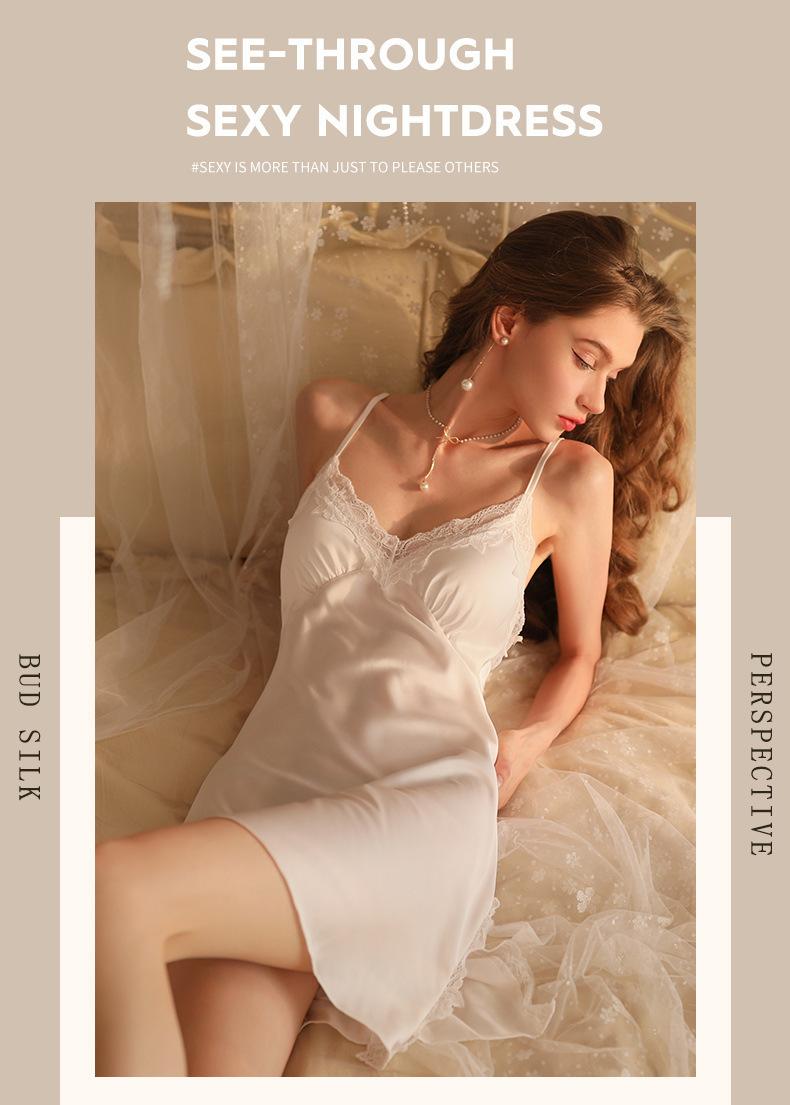 Camisón sexy para mujer de Seda de Hielo talla grande perspectiva Divertido traje de casa nuevo tentación de viento puro pijamas al por mayor