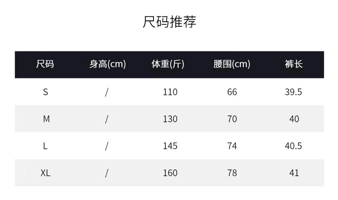 S (code number) within 110, M (4 code numbers) 110-130, L (6 code numbers) 130-145, Xl (8 yards) 145-160