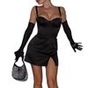 En Stock Verano 2025 Nuevo Comercio Exterior Europeo y Americano Sexy Abertura Color Sólido Tirantes Finos Vestido Simple para Mujer