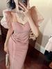 Vestido de Tirantes Mariposa Estilo Francés 2025 Nuevo para Mujer Primavera Diseño Nicho Largo con Espalda Descubierta y Ajuste en la Cintura