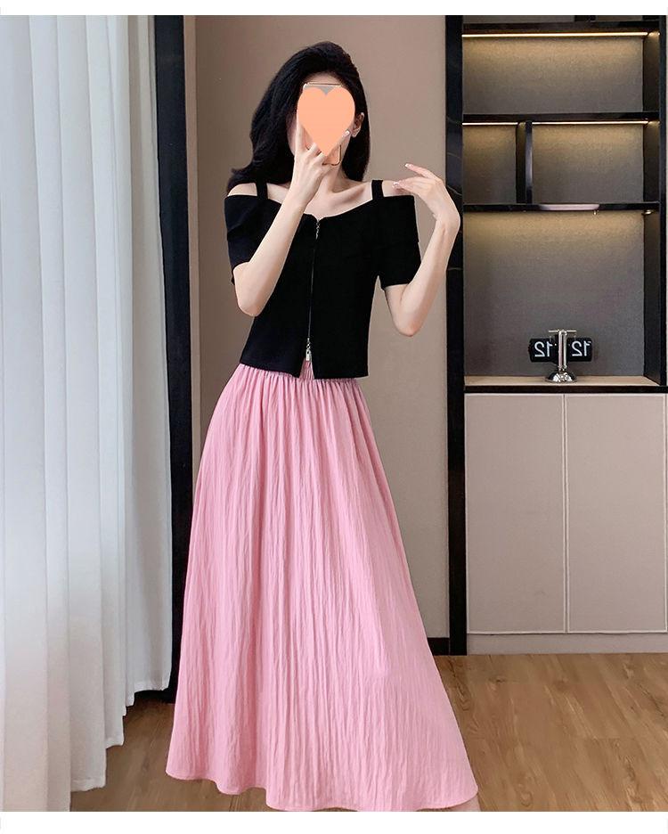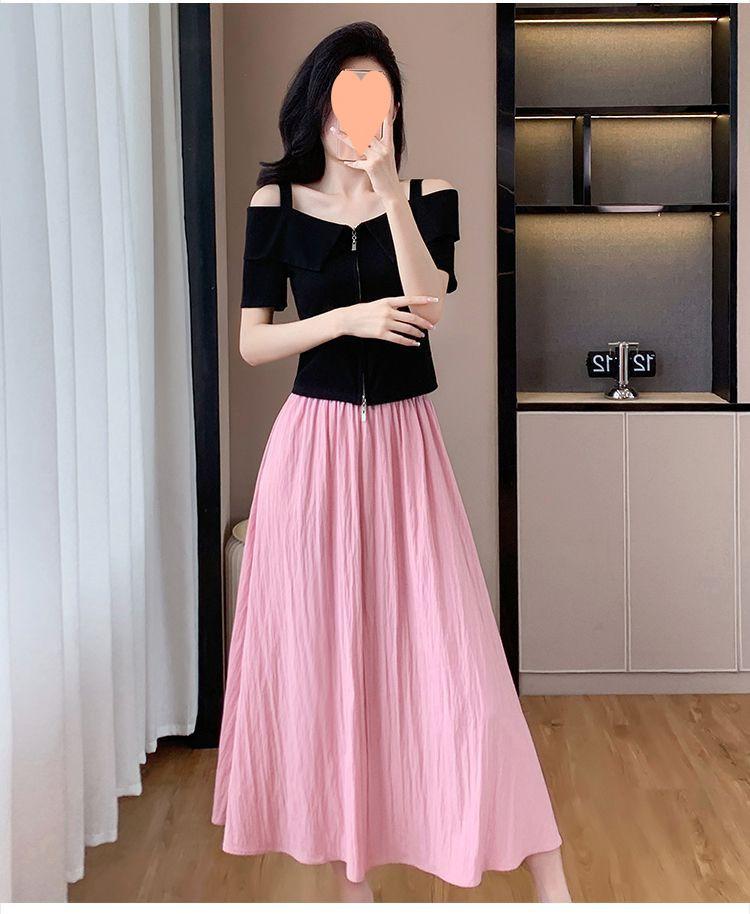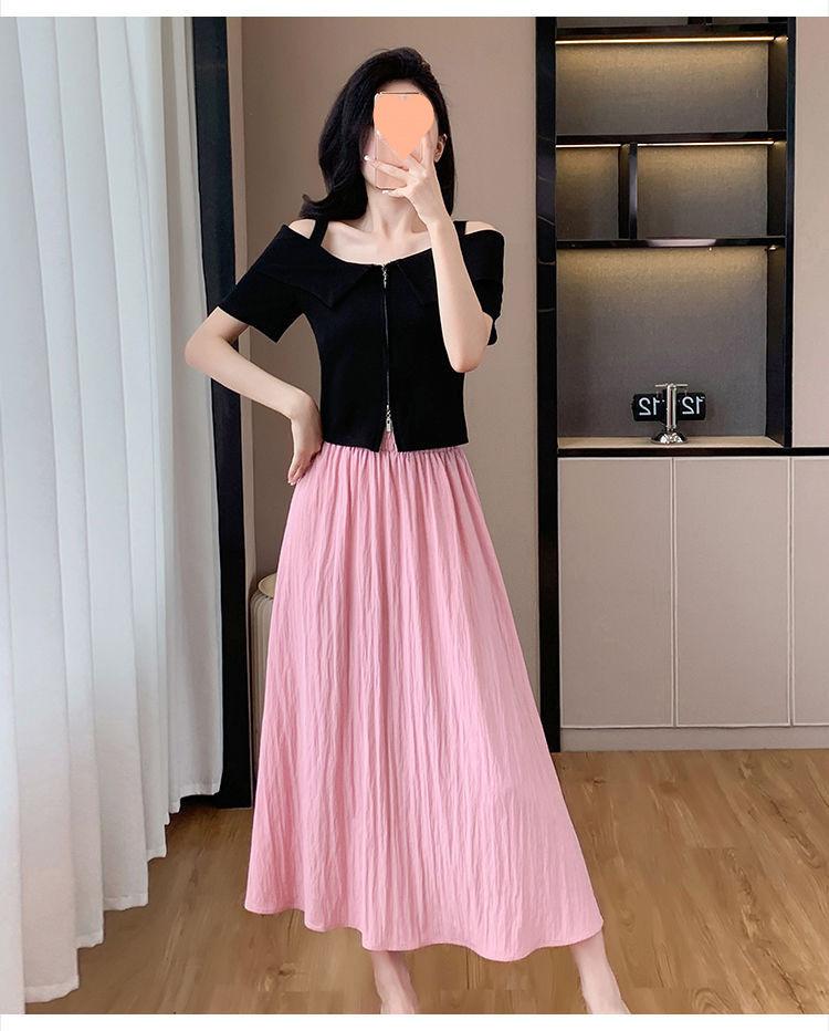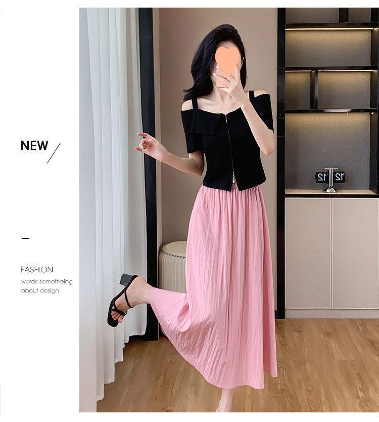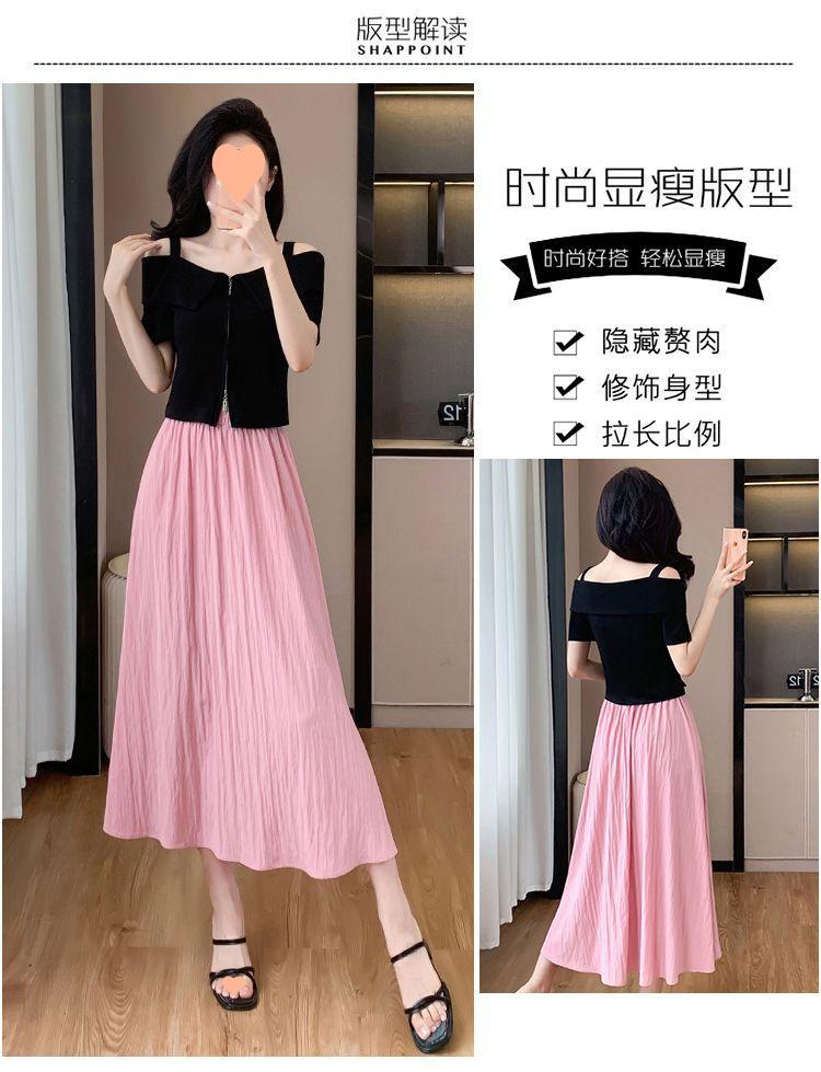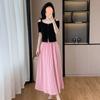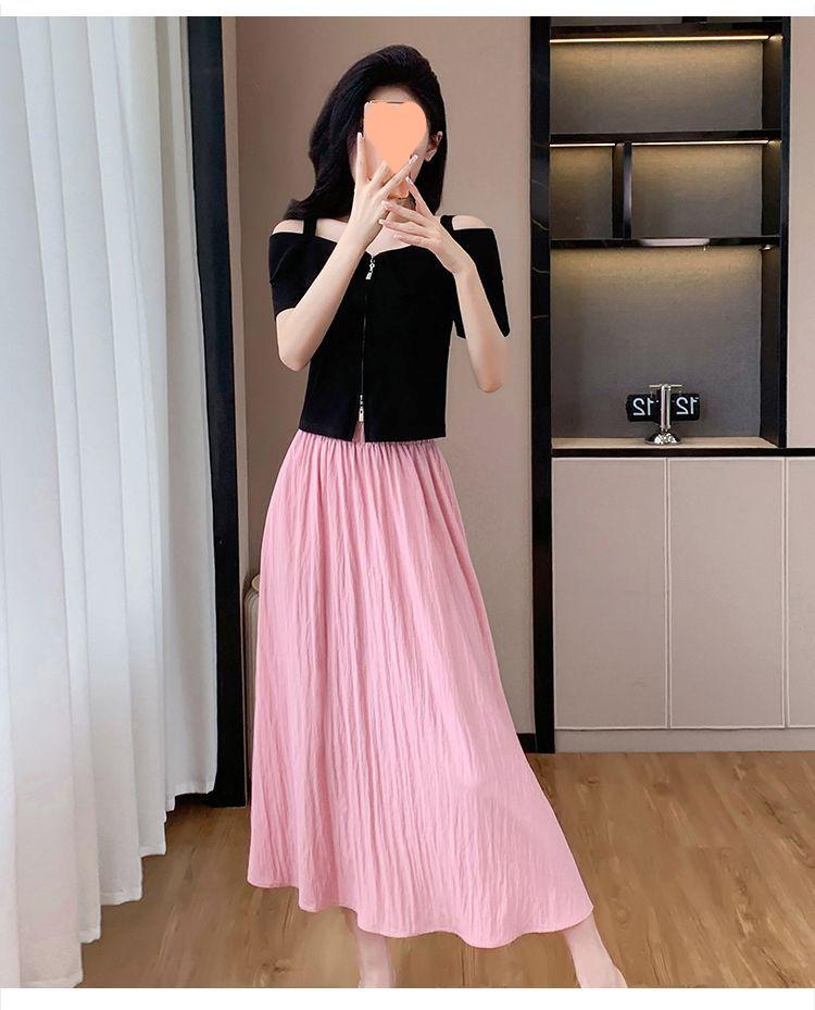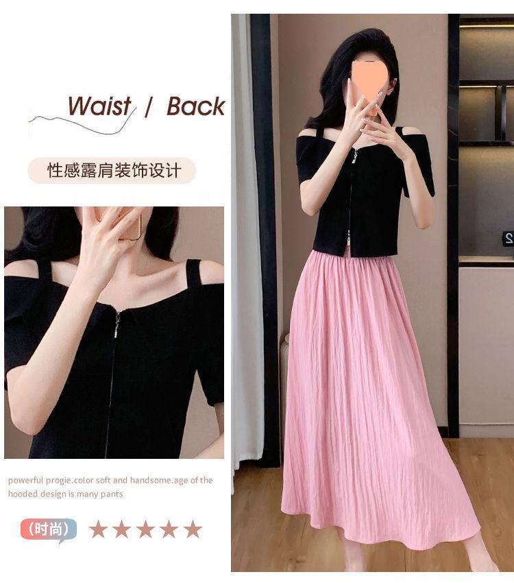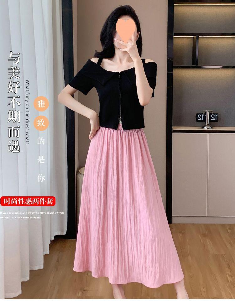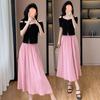 Traje de Moda Talla Grande 2025 Verano Nuevo Camiseta de Manga Corta Top Falda de Cintura Alta Look Adelgazante Conjunto de Una/Dos Piezas