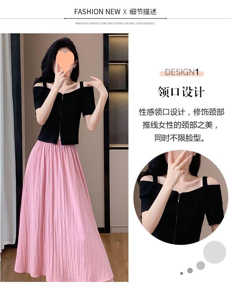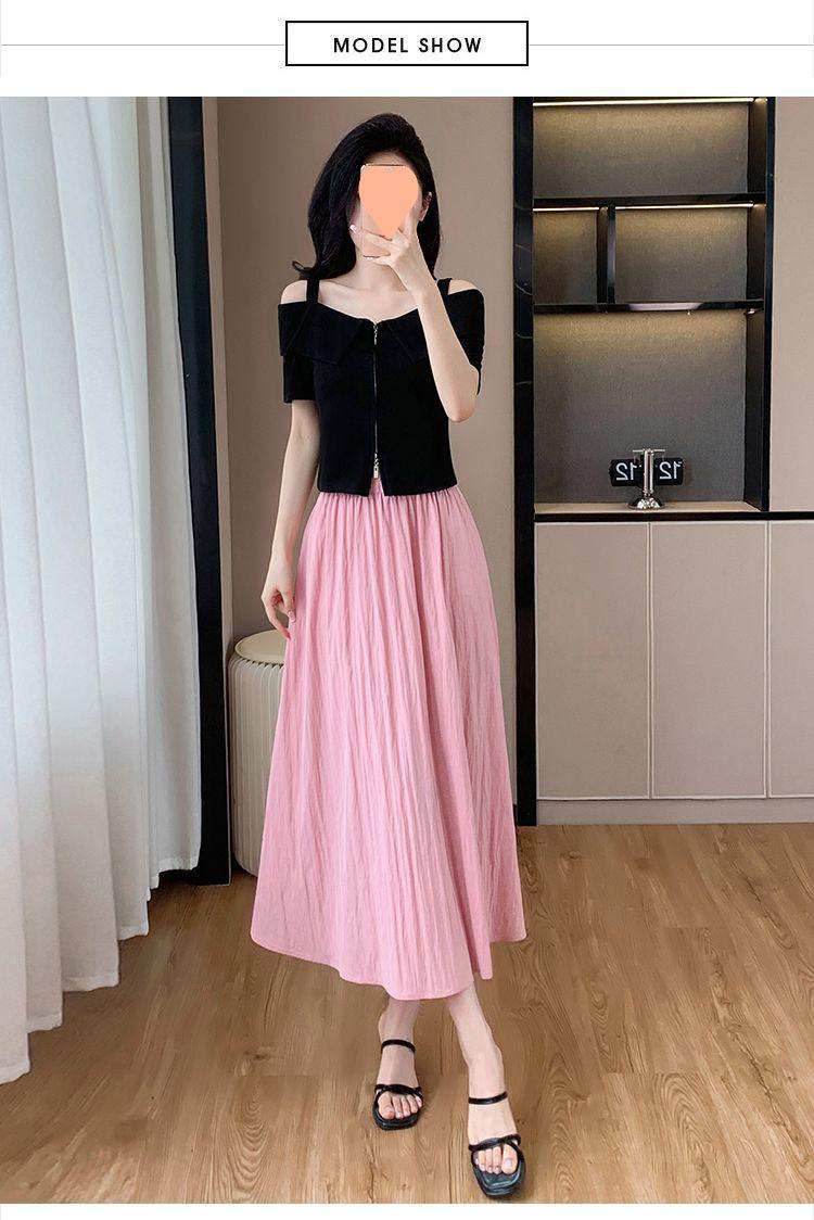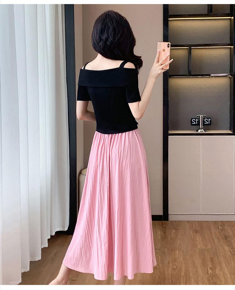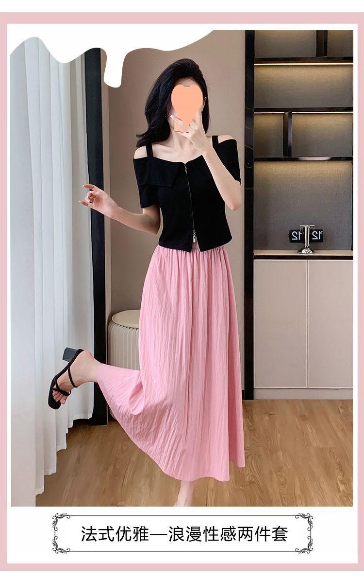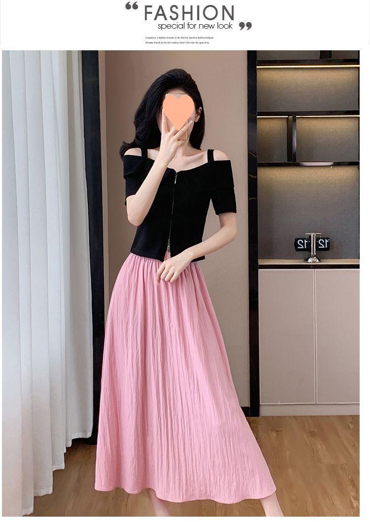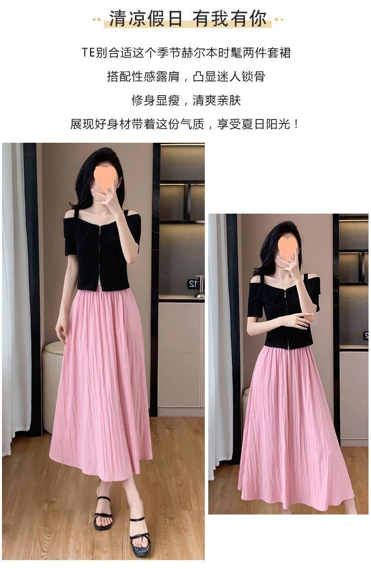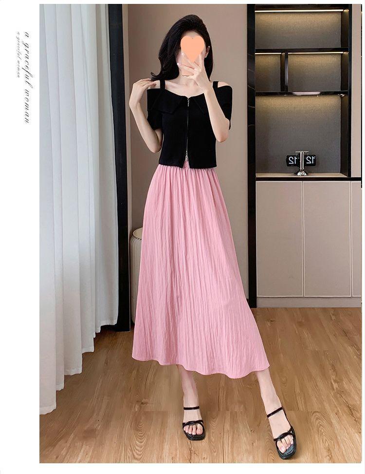 Traje de Moda Talla Grande 2025 Verano Nuevo Camiseta de Manga Corta Top Falda de Cintura Alta Look Adelgazante Conjunto de Una/Dos Piezas