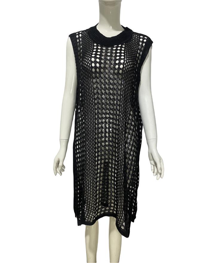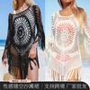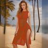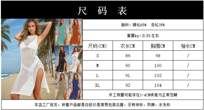 Verano Europeo y Americano Nuevo Suéter Tejido Holgado con Aberturas Transfronterizo Cuello Redondo Falda de Playa Blusa Tejida Ropa de Protección Solar para Mujer