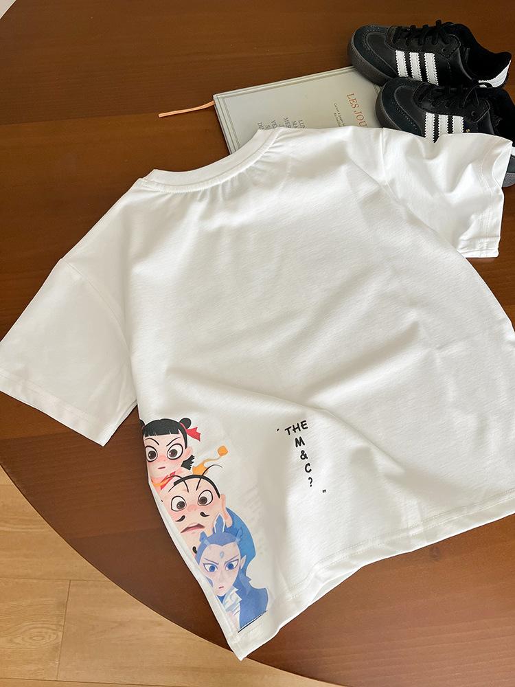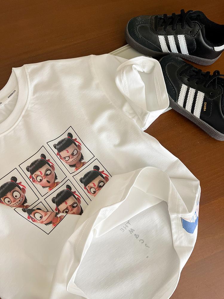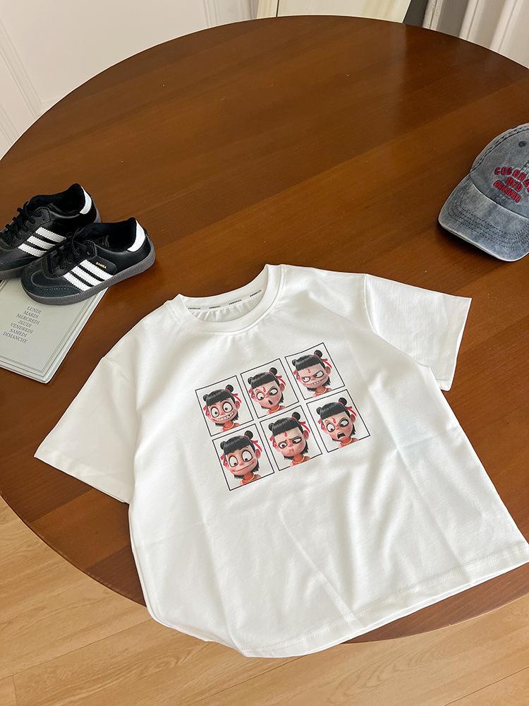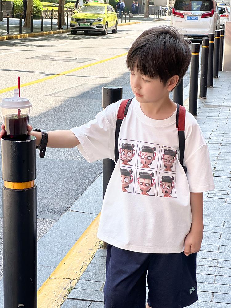 [Liquidación] Camiseta Infantil de Moda de Hielo de Dibujos Animados de Manga Corta 2025 Verano Moda Infantil Grande Top Nezha