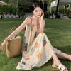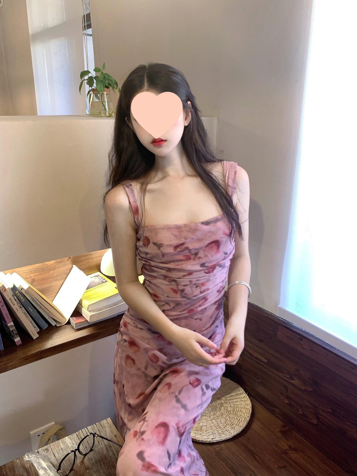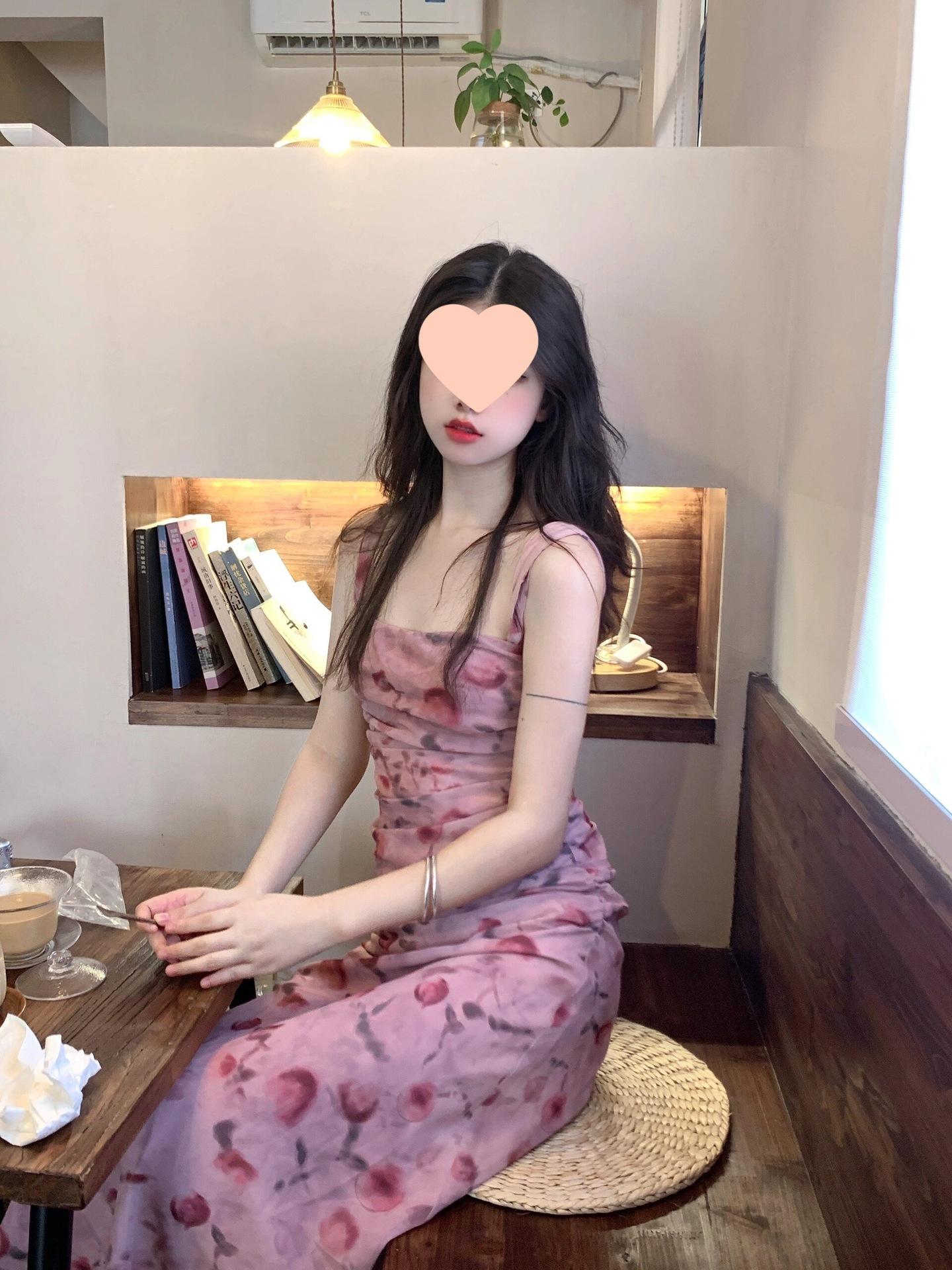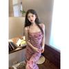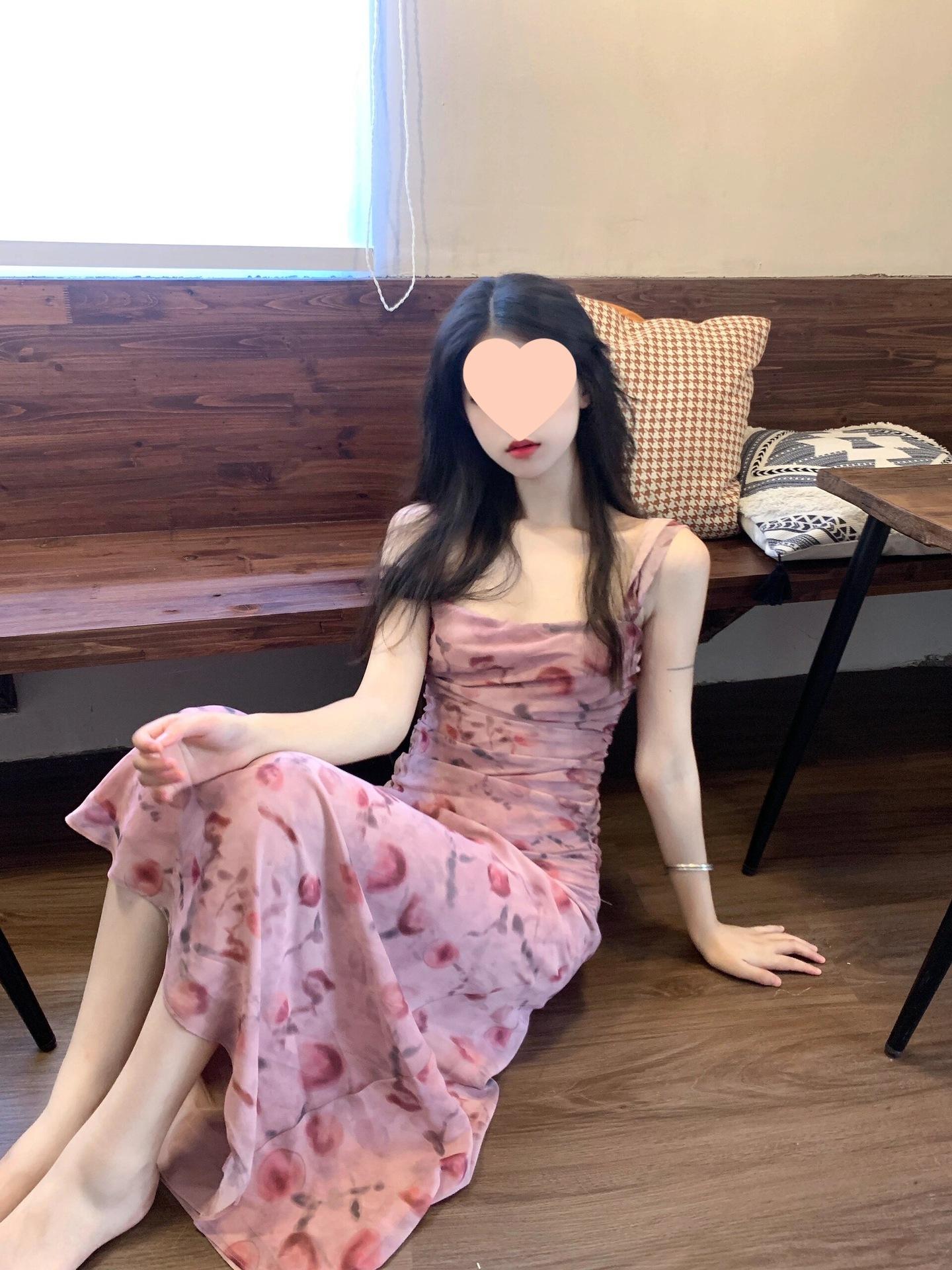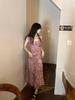 Vestido de Tirantes de Malla Floral Rosa Dulce para Mujer Francés Romántico y Suave Vacaciones Junto al Mar Hermoso Vestido Largo Verano