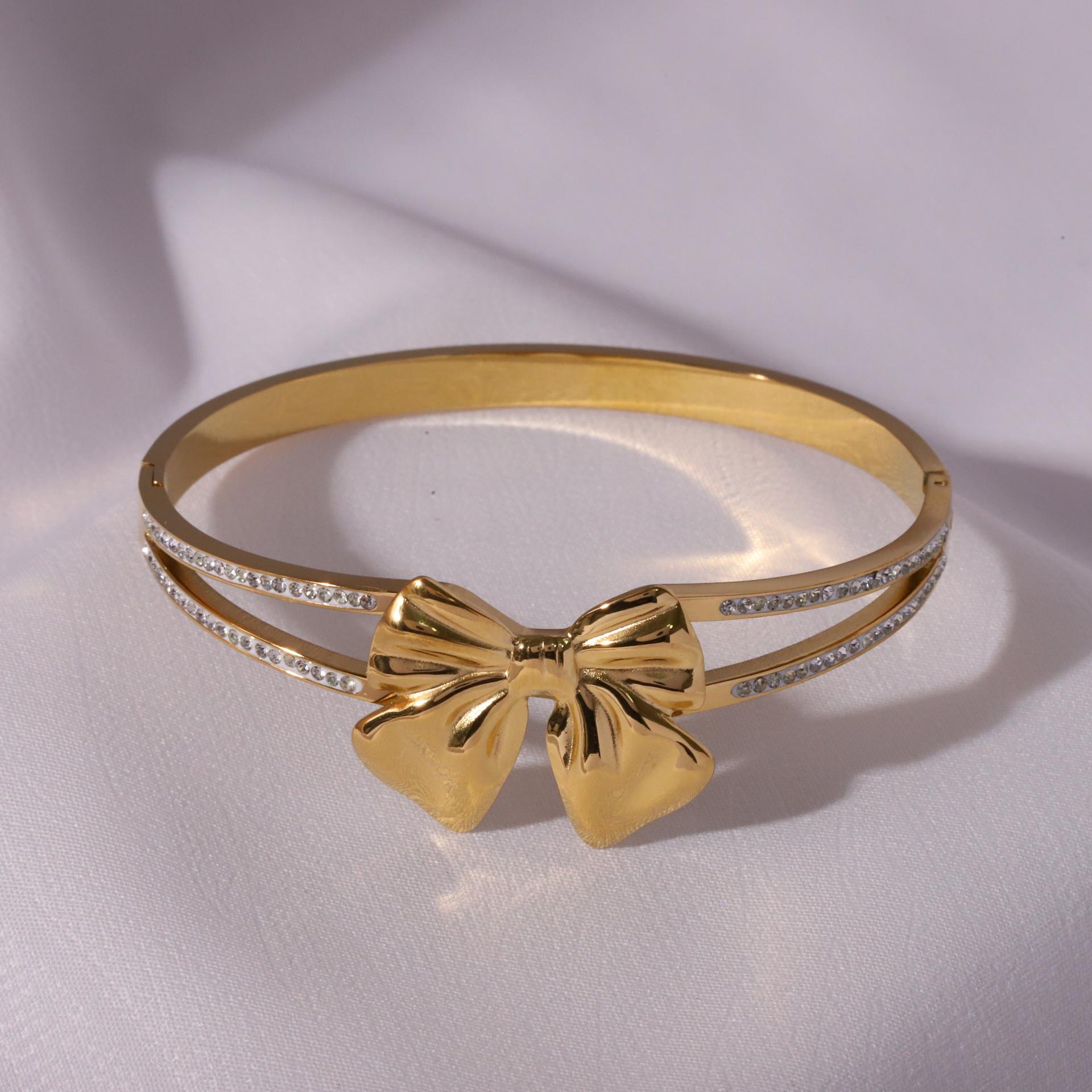 Pulsera para Mujer Transfronteriza Lazo Brazalete Pulsera Diamante Completo Diseño Nicho Moda Elegante Abierta Personalidad Retro Accesorios Pulsera