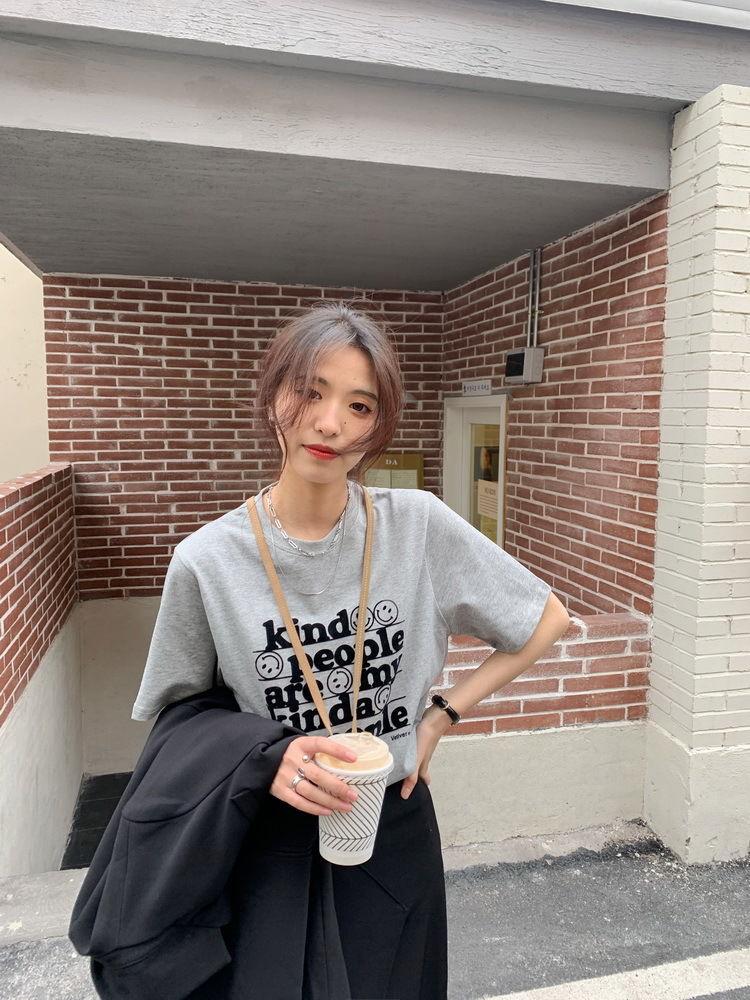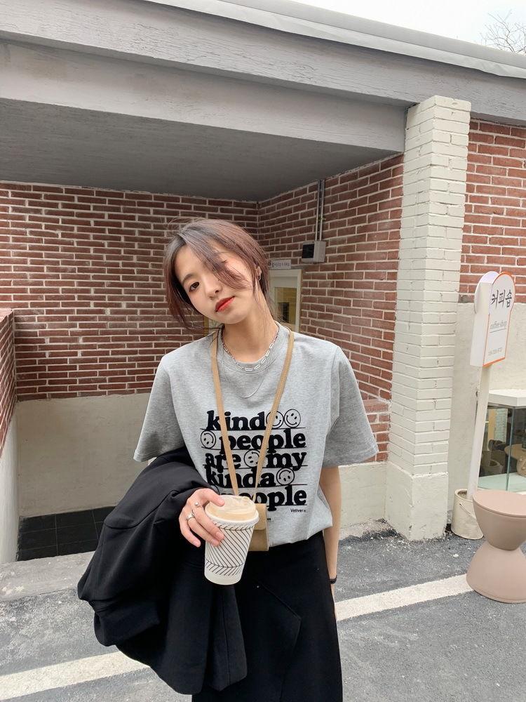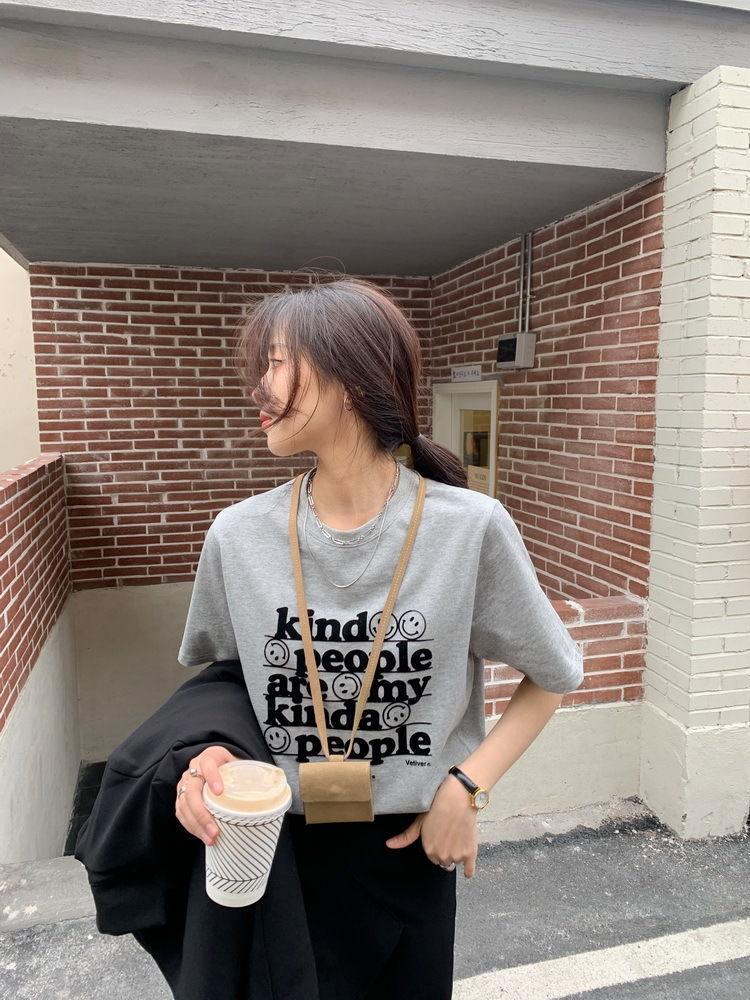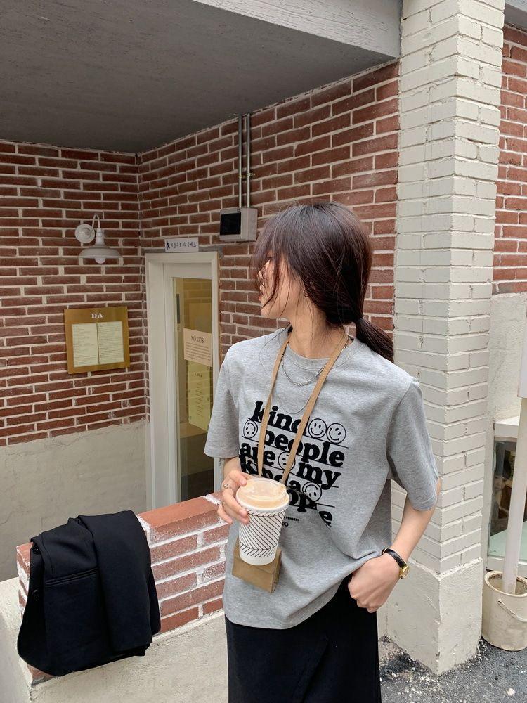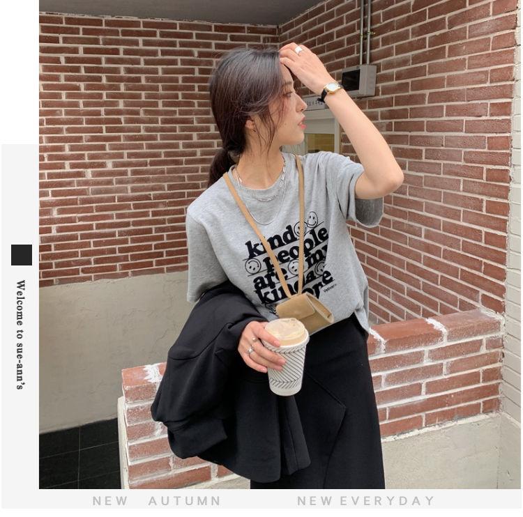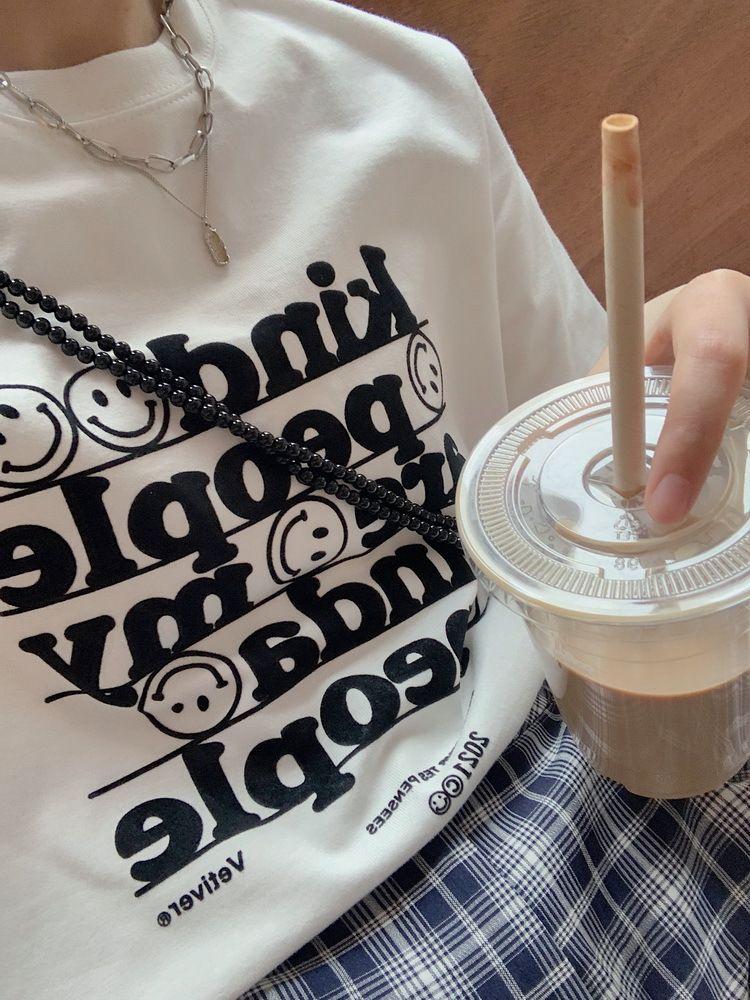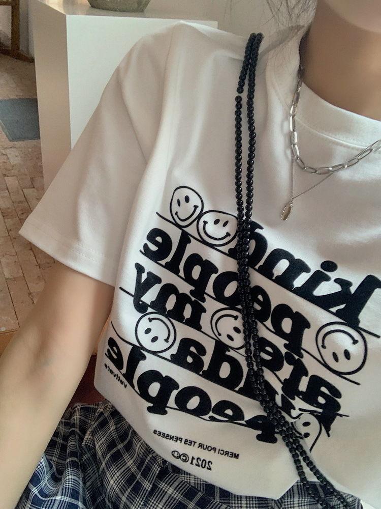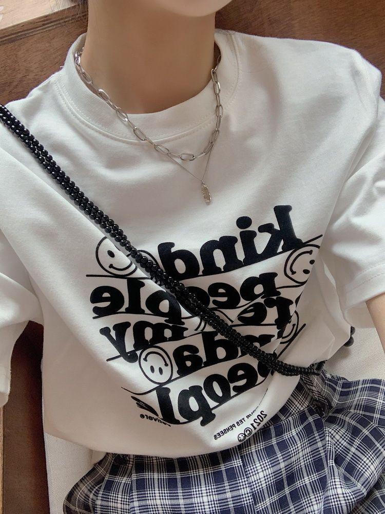 2025 Nueva Camiseta de Verano de Manga Corta para Mujer Estilo Coreano Estampada Holgada Tops de Estudiante Camiseta Básica Tendencia Ins