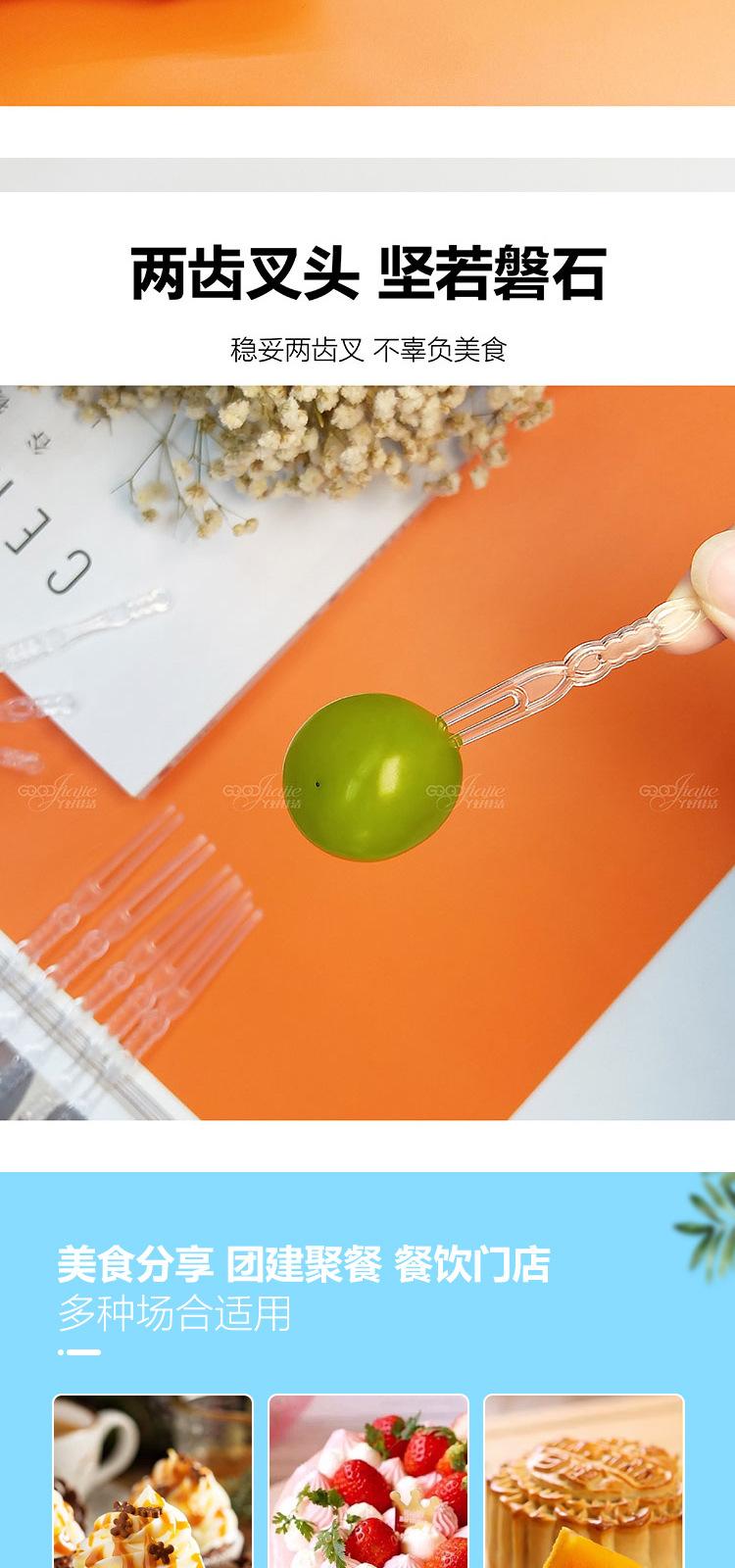 Tenedor de Fruta Desechable Grado Alimenticio Empaque Simple Tenedor para Pastel de Luna Venta al Mayoreo Ktv Plato de Fruta Cristal Tenedor de Dos Púas