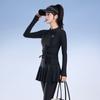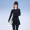 Traje de baño conservador con protección solar con estilo de falda adelgazante para mujeres ligeramente rellenitas, traje de baño de dos piezas de talla grande con manga larga y pantalón largo para mujer