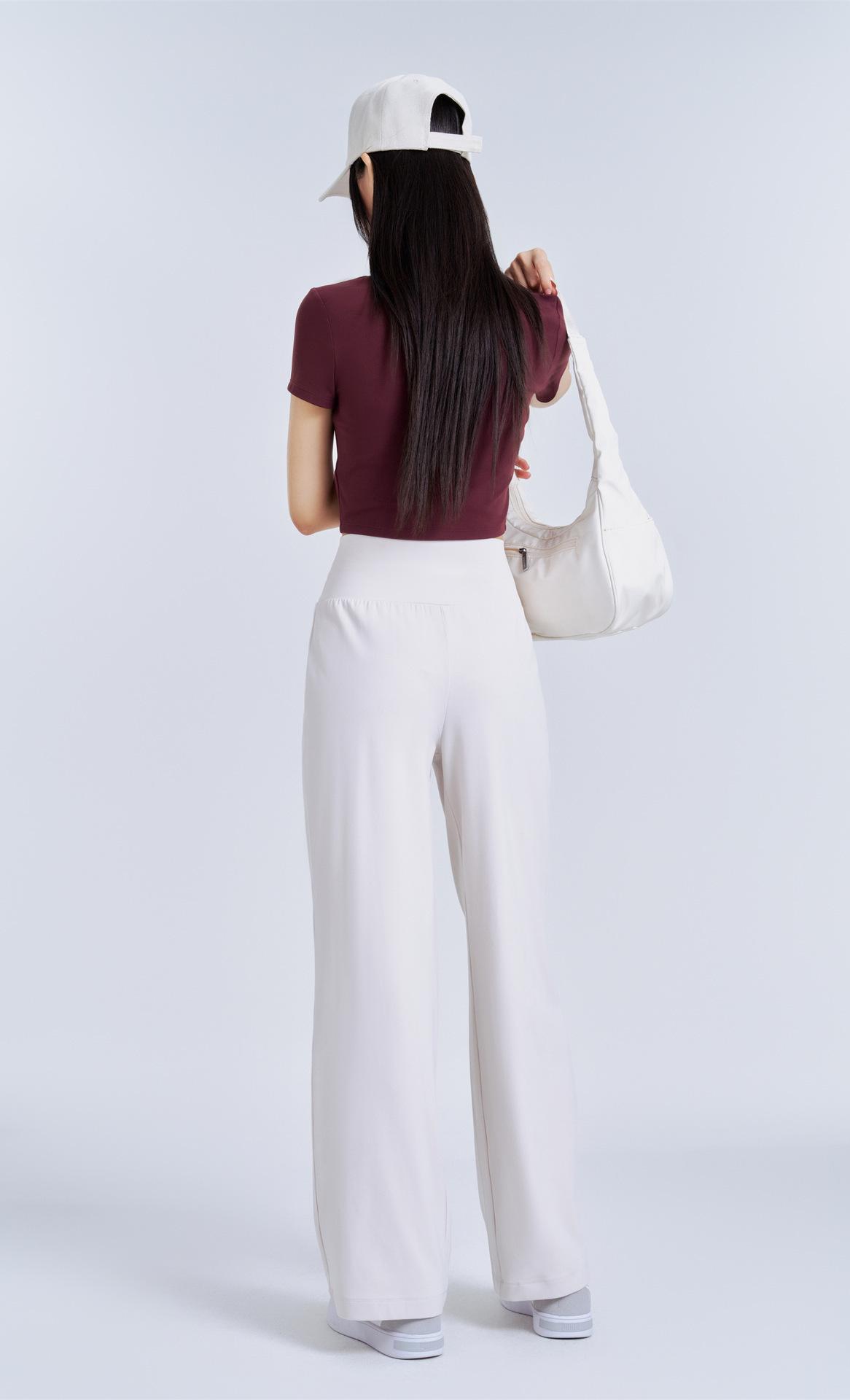 Pantalones de Yoga Holgados Transpirables Sports Naked Sense Abdominales Levantamiento de Cadera Pantalones de Pierna Ancha Fitness Cintura Alta Casuales Largos de Pierna Recta
