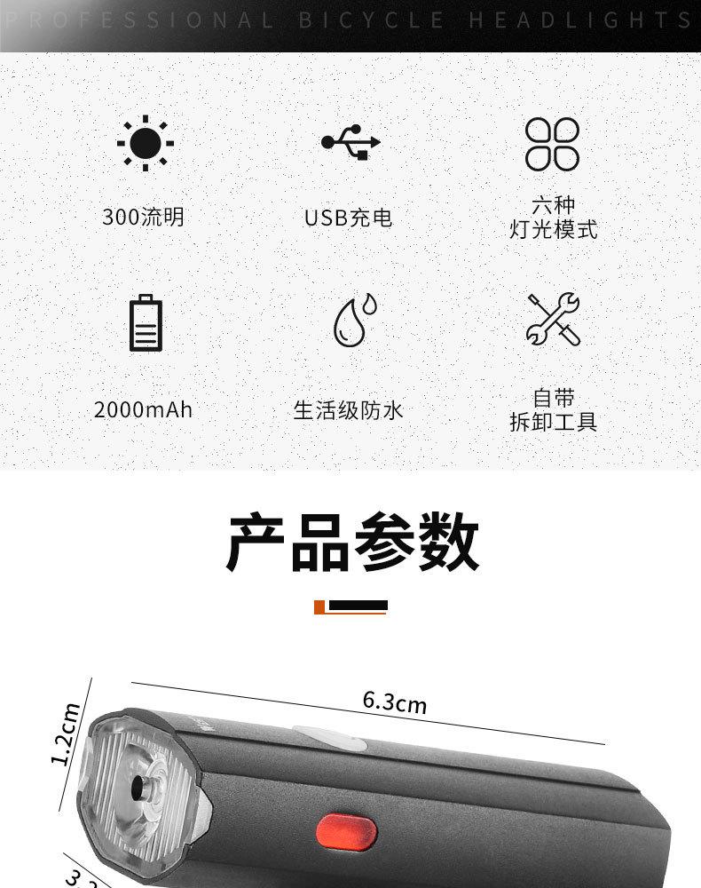 Luz alta aproximadamente 3 horas, luz baja aproximadamente 5 horas, luz trasera individual encendida 8 a 10 horas 300lm