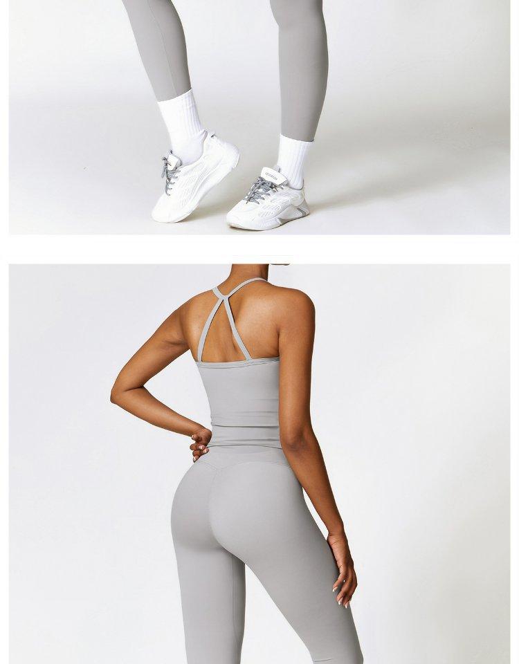 Traje de Yoga Elástico Ajustado Cepillado Europeo y Americano Ropa de Fitness de Secado Rápido Otoño e Invierno Ropa de Fitness para Correr al Aire Libre Chaleco de Dos Piezas