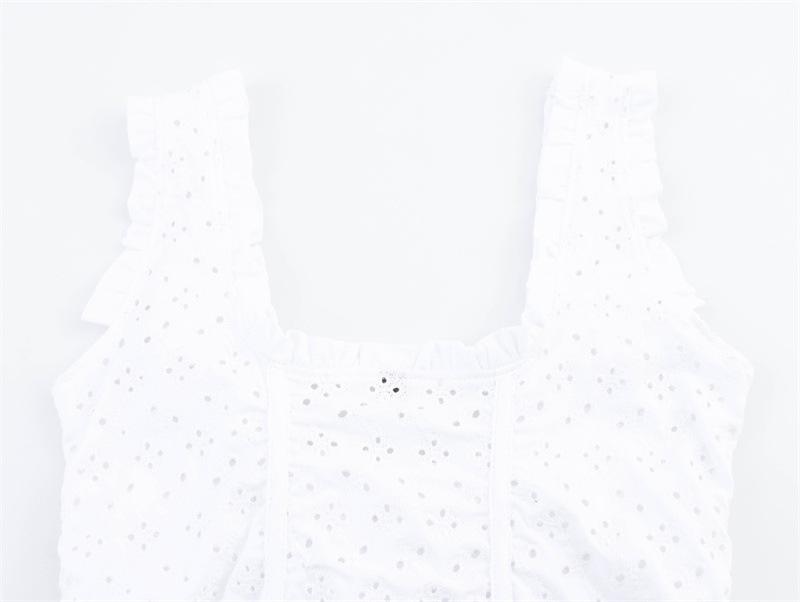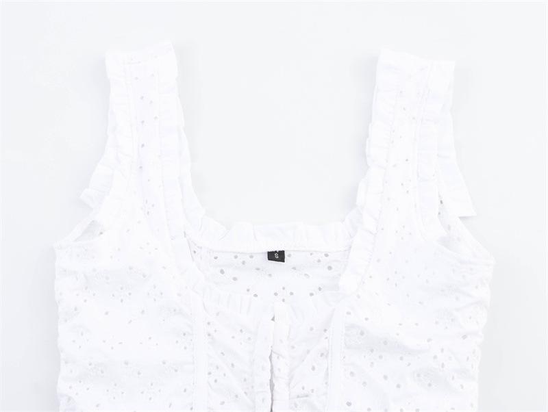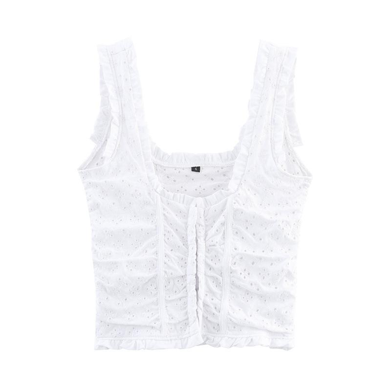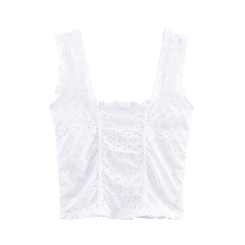 2025 Verano Nuevo Damas Estilo Dulce Calado Bordado Tirante Ancho Cuello U Corto Sling Chaleco Top Combinable