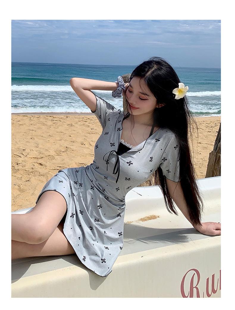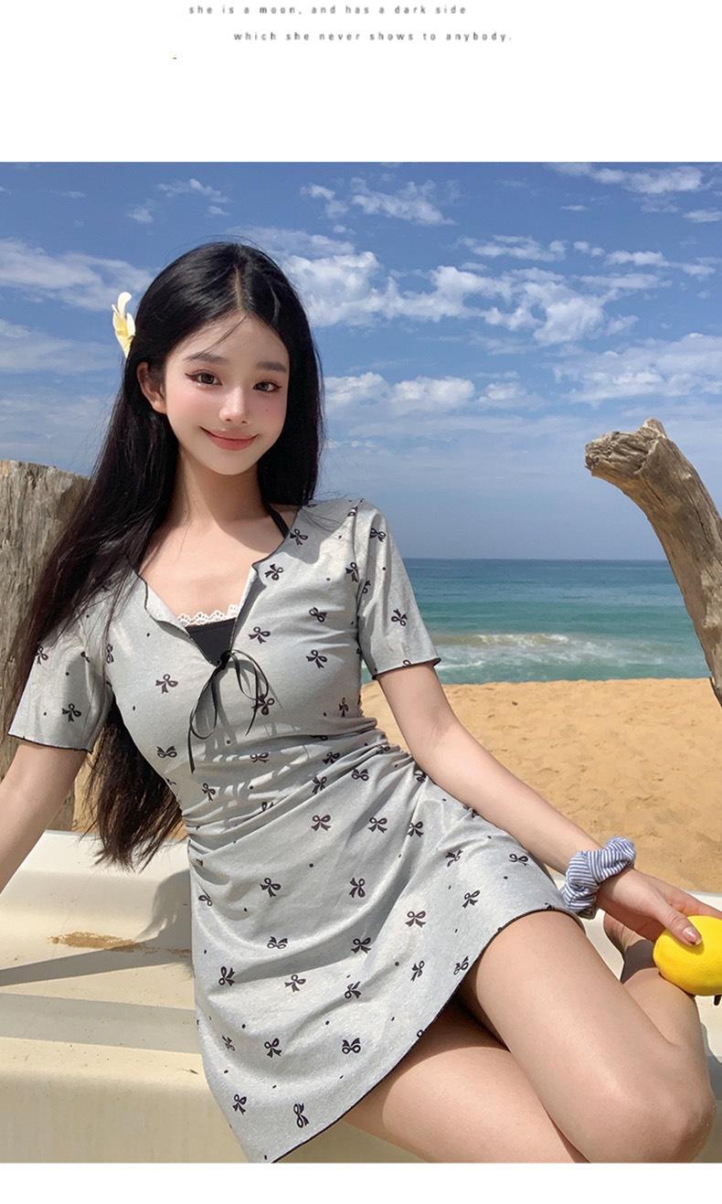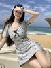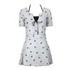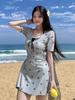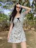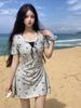 Vestido de encaje de dos piezas falsas estilo Pure Lust para mujer 2025 Nuevo vestido de verano Adelgazamiento de cintura Falda corta francesa