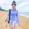 Traje de baño dividido Estudiante Mujer Deportes Vacaciones Aguas Termales Traje de baño Adelgazante Manga Larga Conservador Falda Traje de baño de dos piezas