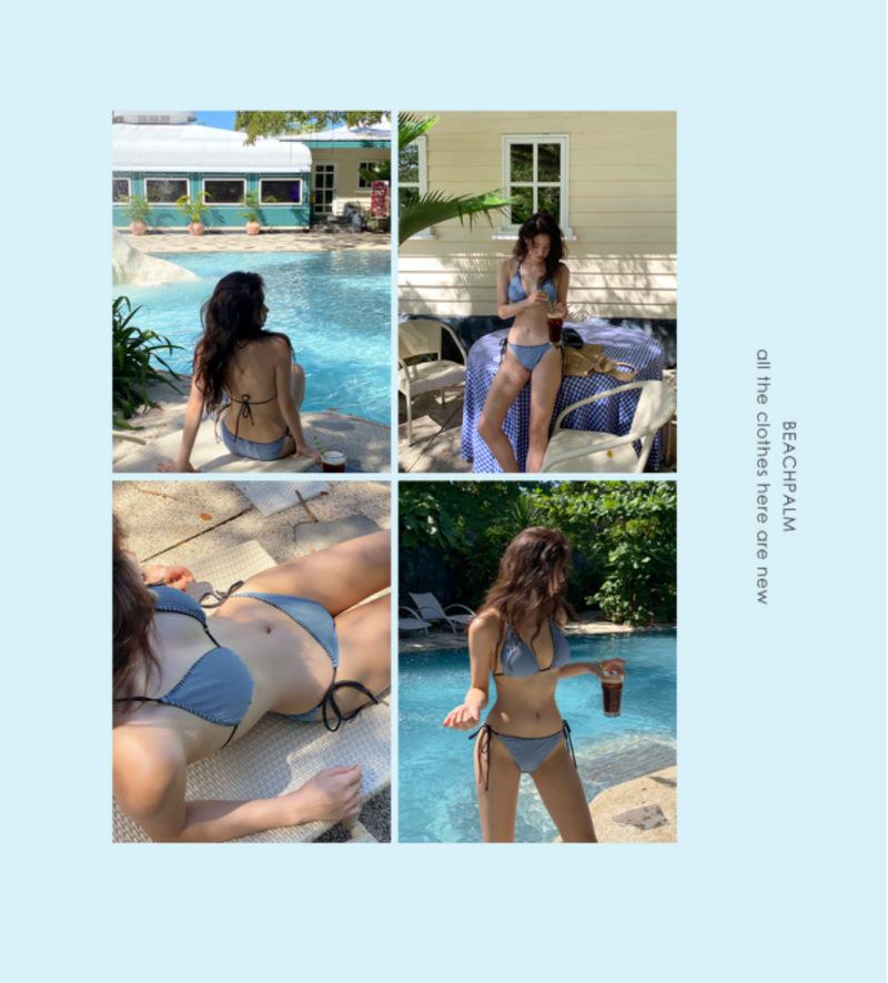 Bikini Sexy de Encaje de Tres Puntos de Alta Gama Estilo Ins Coreano Bikini Traje de Baño de Playa para Mujer