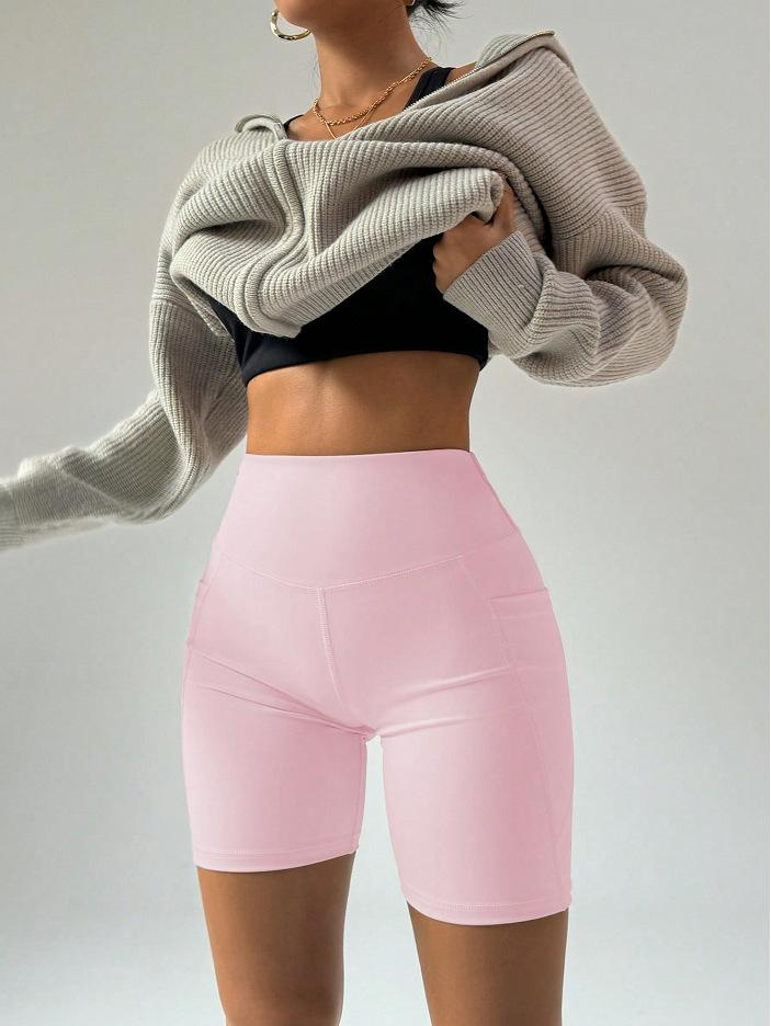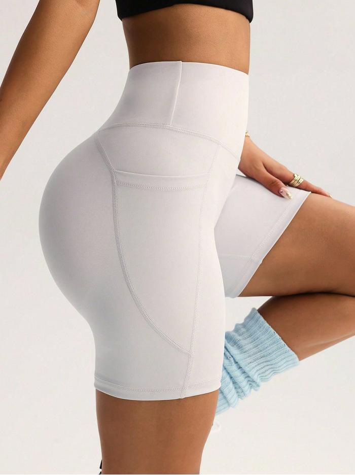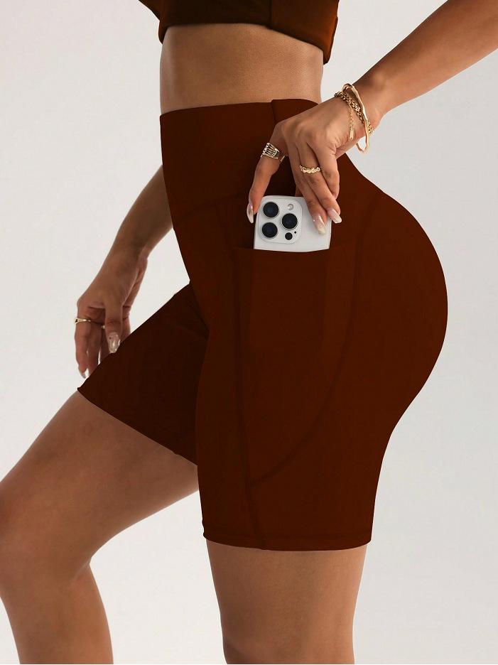 Shorts Deportivos Nuevos Europeos y Americanos con Bolsillos para Mujer, Cintura Alta, Ajustados, Pantalones de Yoga de Secado Rápido, Capa Base para Correr, Fitness, Ciclismo