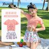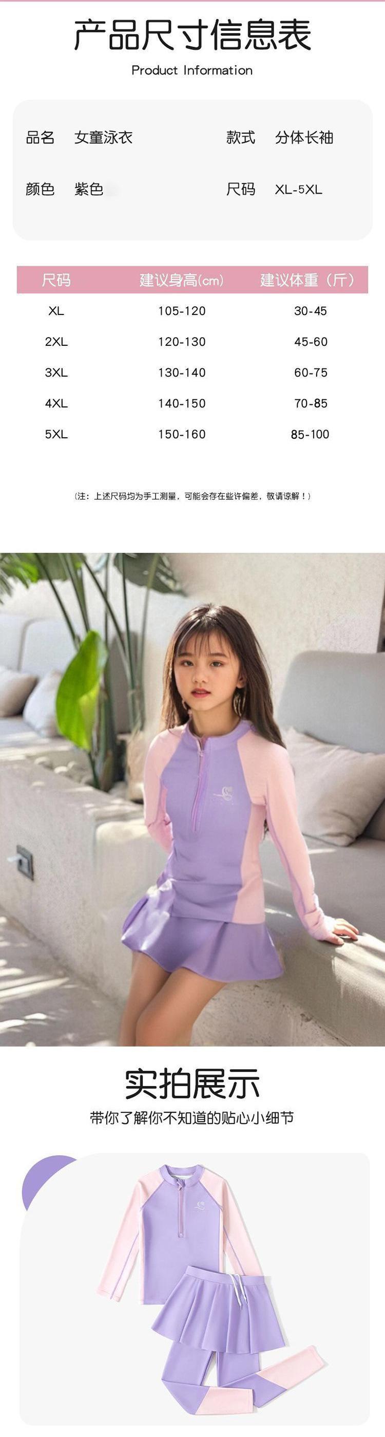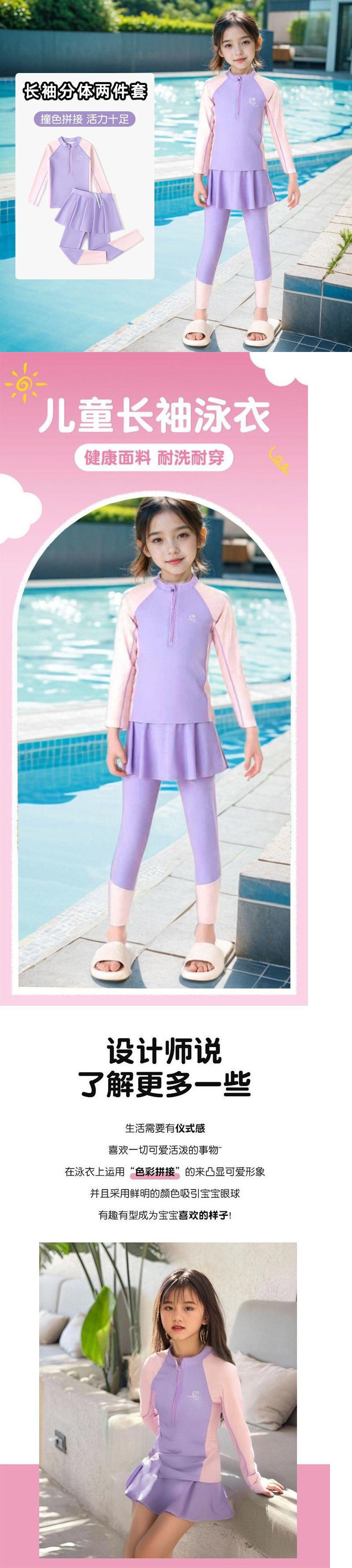 Traje de Baño para Niñas 2024 Nuevo Manga Larga Protección Solar Mediano y Grande Estilo Falda para Niñas Traje de Baño Dividido para Aguas Termales
