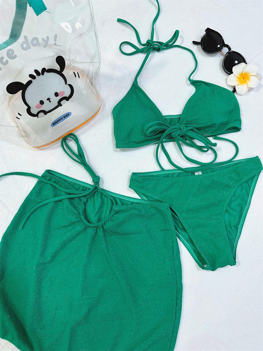 Traje de tres piezas de color sólido con abertura estilo moda coreana para mujer, traje de baño bikini sexy europeo y americano push up para pecho pequeño para playa