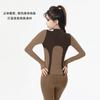 Ropa de yoga de secado rápido para exteriores, nueva prenda de primavera para mujer, de alta elasticidad, ajustada, adelgazante, con cremallera en contraste, top deportivo informal