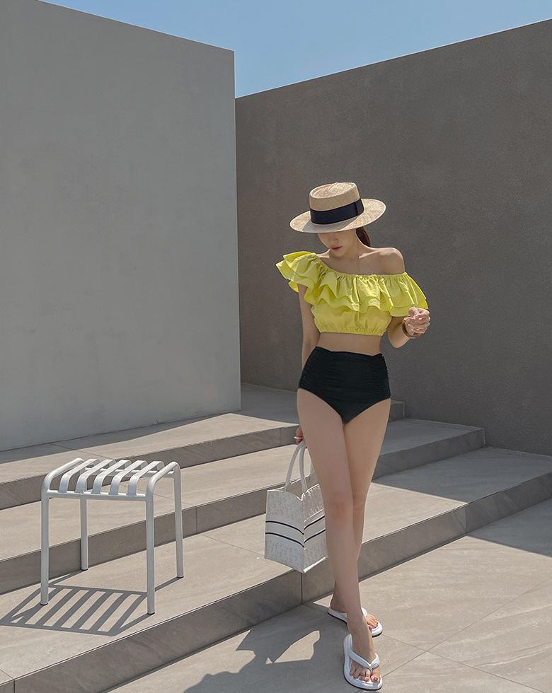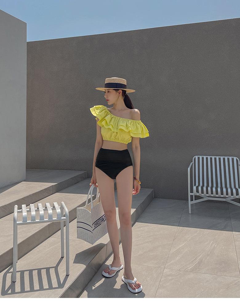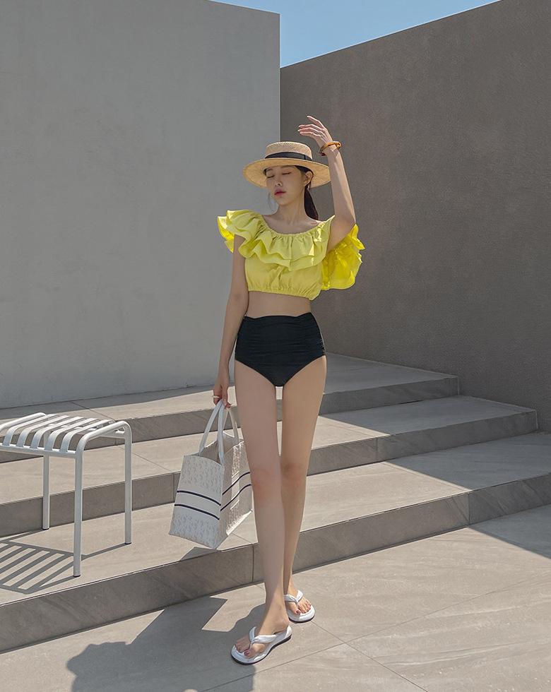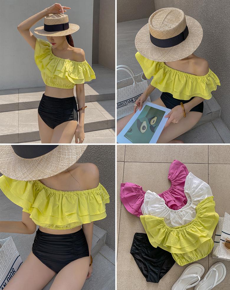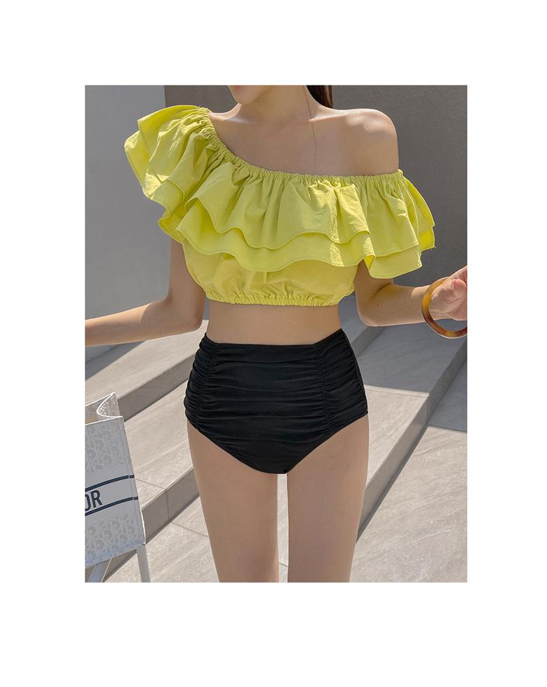 Moda mujer verano nuevo pantalón dividido de cintura alta sexy adelgazante pecho pequeño push up traje de baño bikini para vacaciones en aguas termales