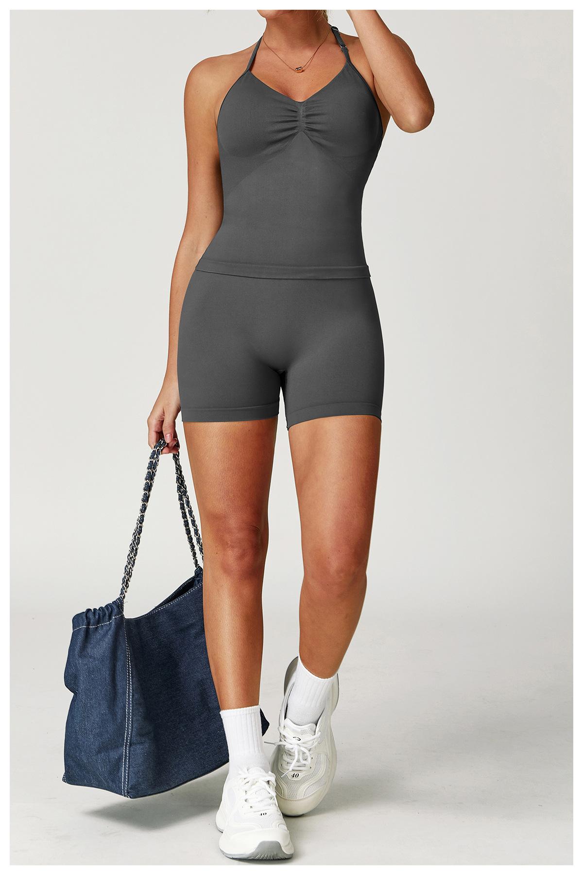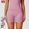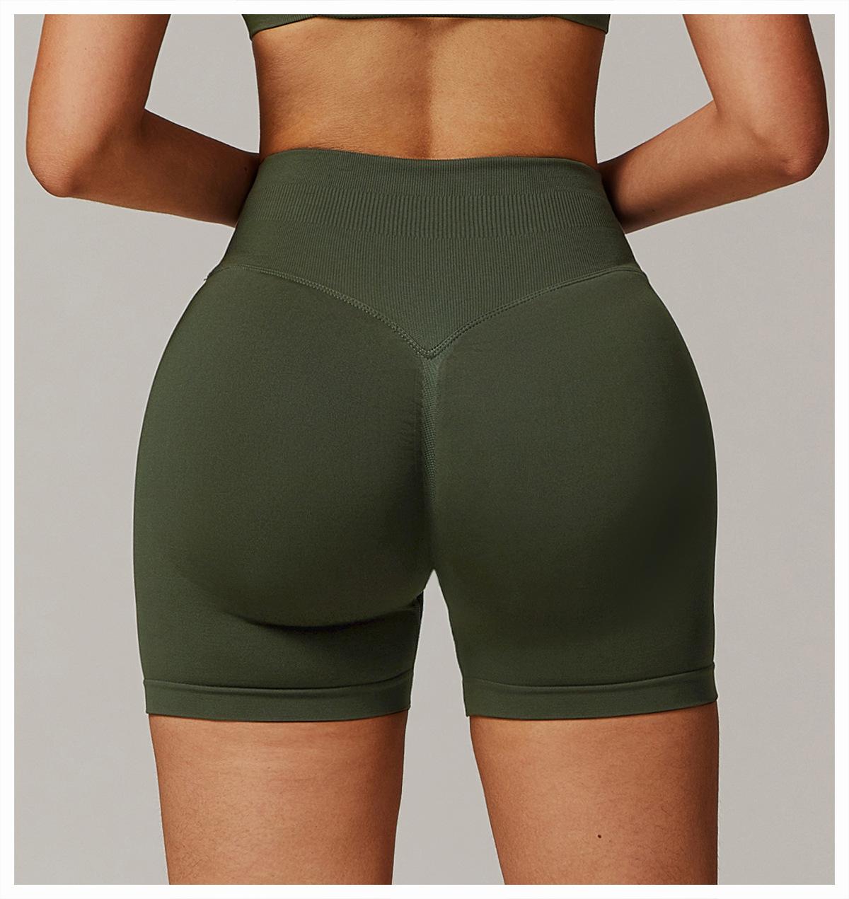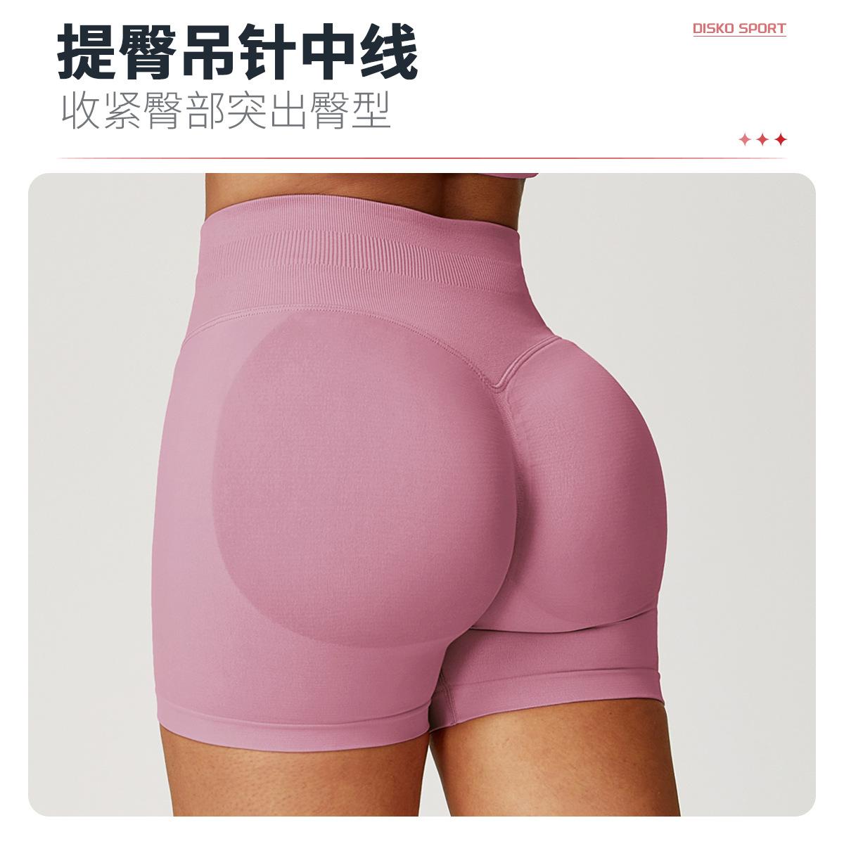Procesando Shorts de Yoga Personalizados Sin Costuras de Cintura Alta Verano Ajustados Levanta Caderas Deportes Correr Secado Rápido Pantalones de Fitness 7655
