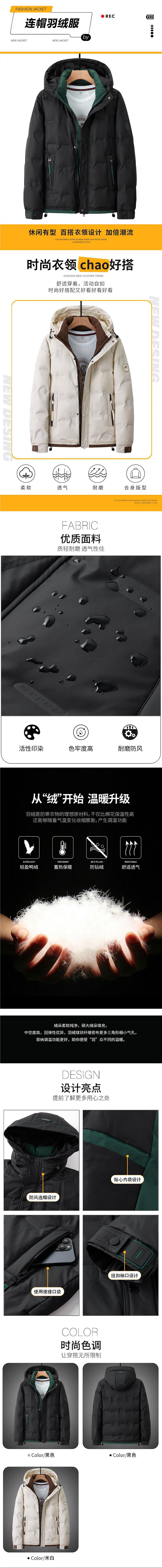 Logotipo Personalizado Invierno Nuevo Plumón de Pato Blanco Moda Trendy con Capucha para Hombre Ligera Business Casual Versátil Chaqueta plumón