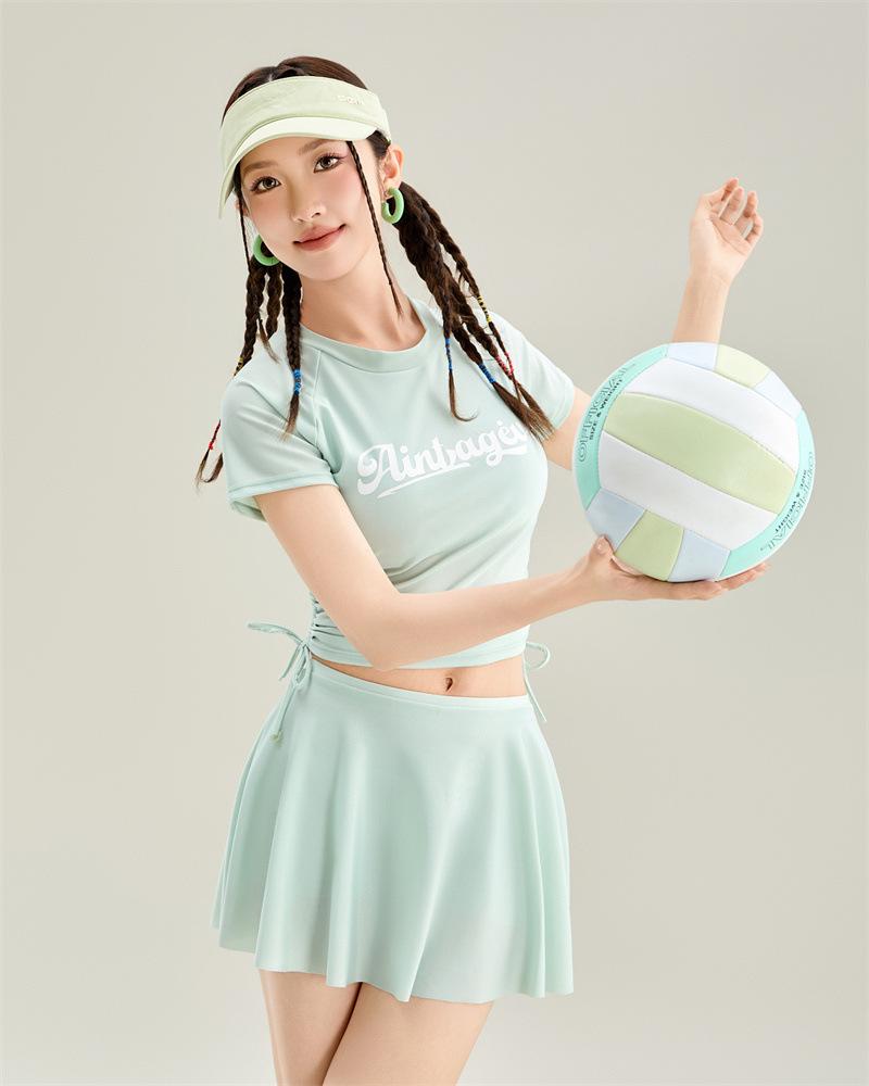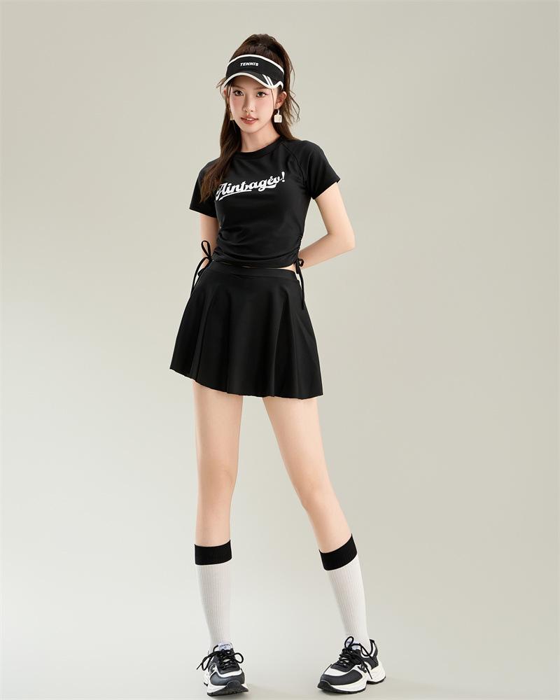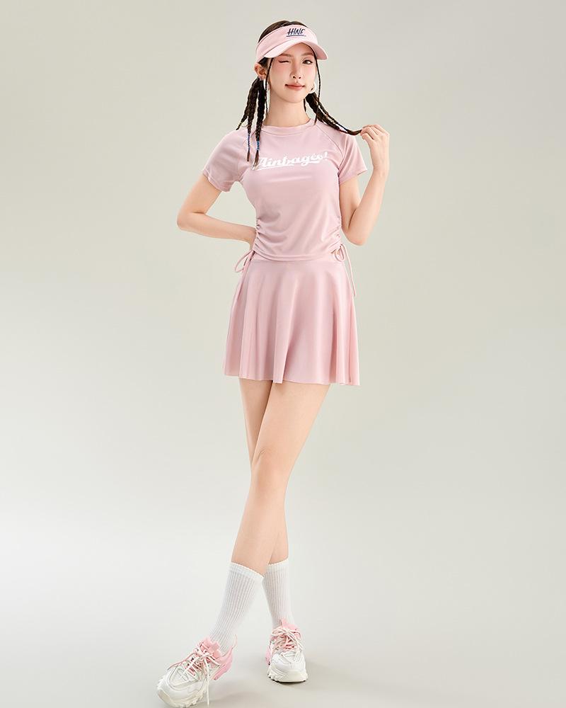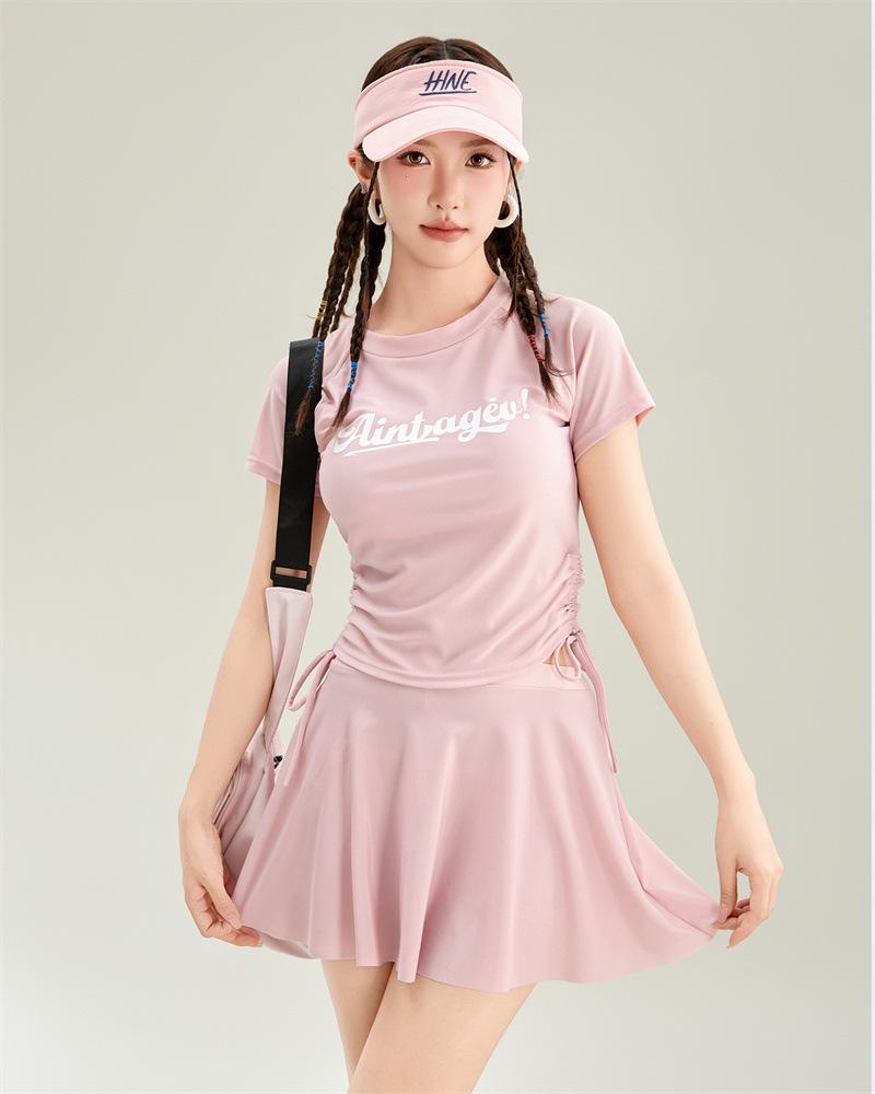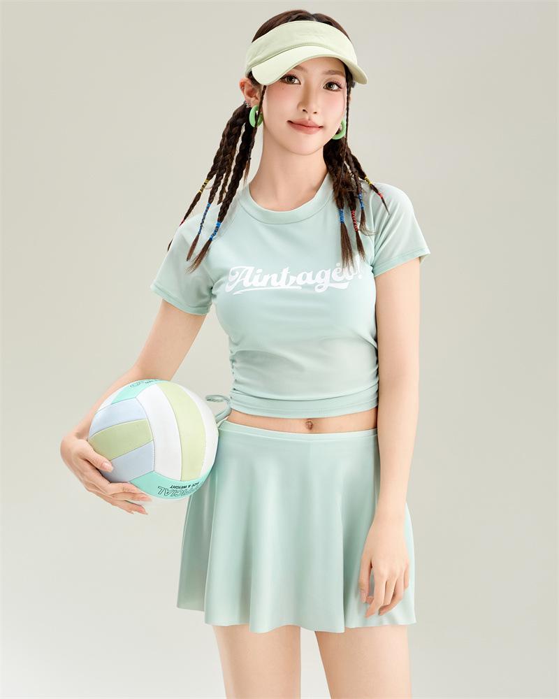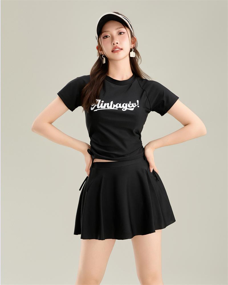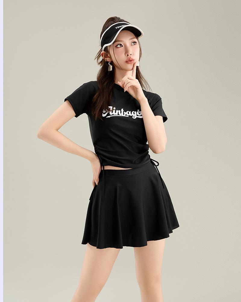 Traje de Baño Separado para Mujer 2025 Nuevo Estilo Boxer de Manga Corta con Falda Cubre Vientre Adelgazante Deportivo para Estudiante Conservador para Aguas Termales