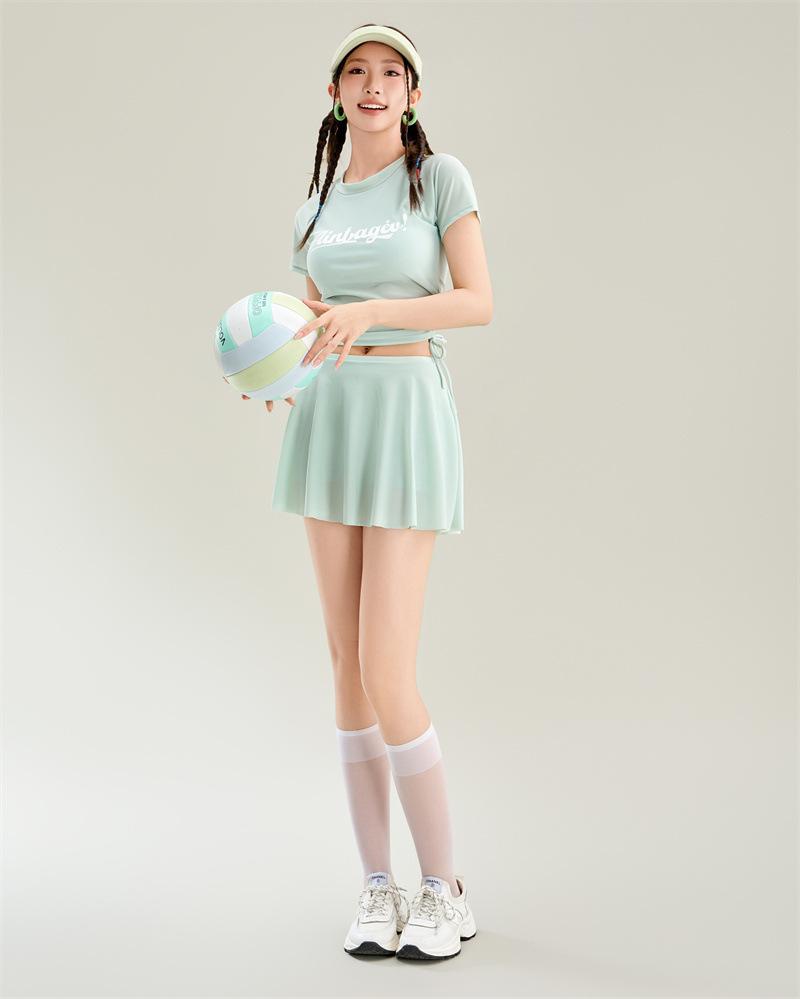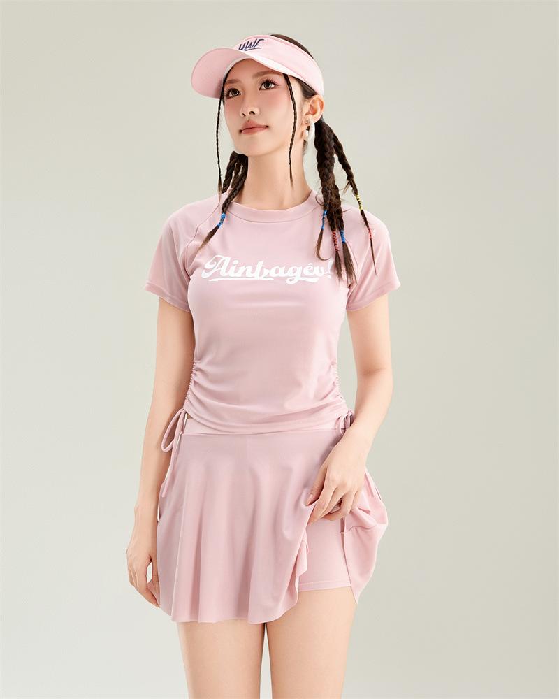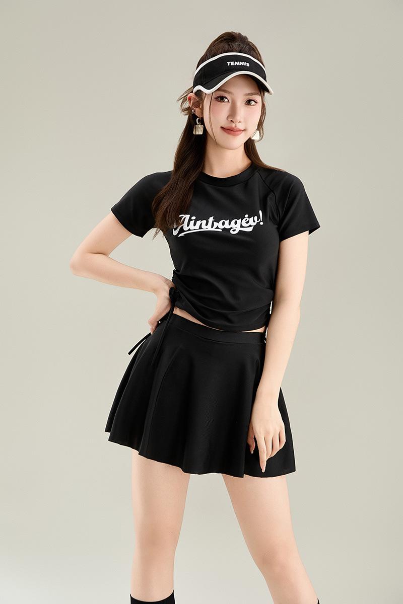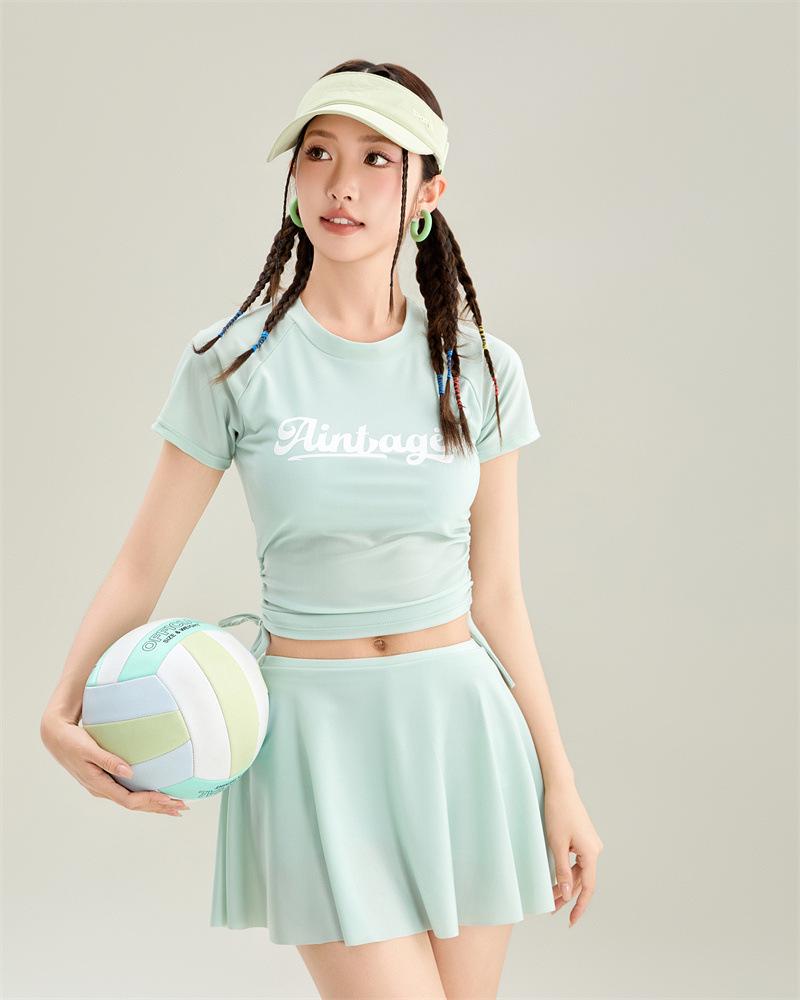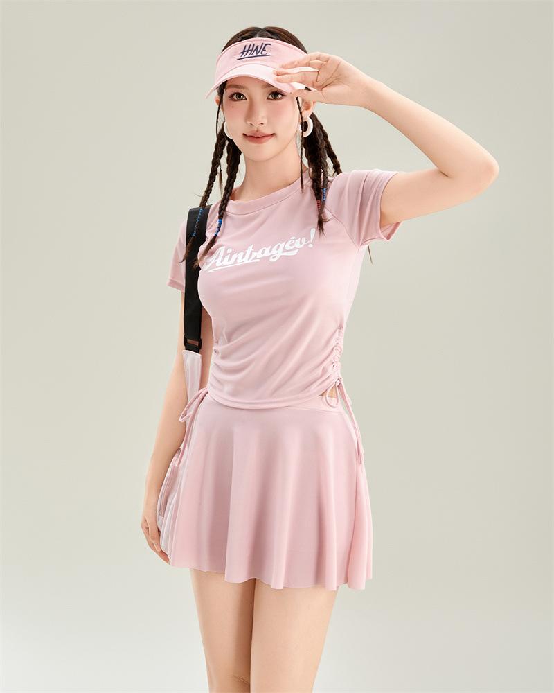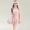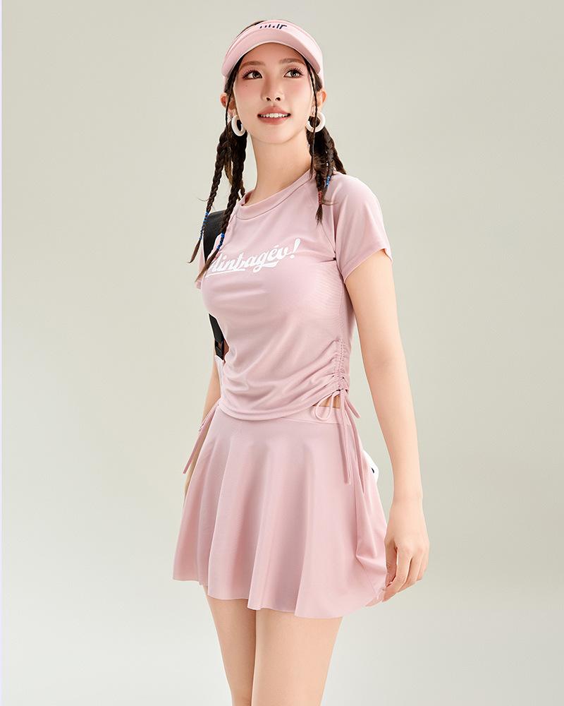 Traje de Baño Separado para Mujer 2025 Nuevo Estilo Boxer de Manga Corta con Falda Cubre Vientre Adelgazante Deportivo para Estudiante Conservador para Aguas Termales