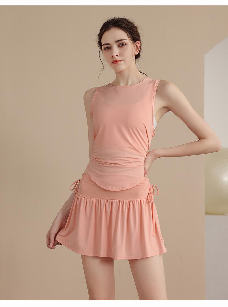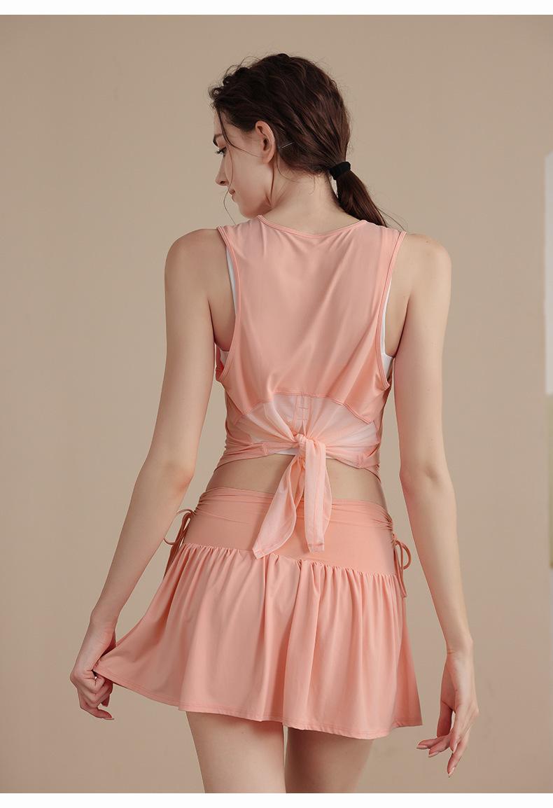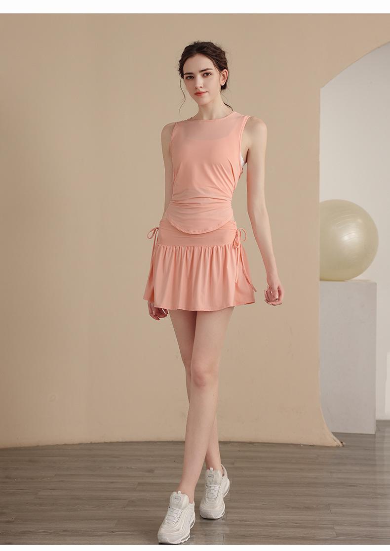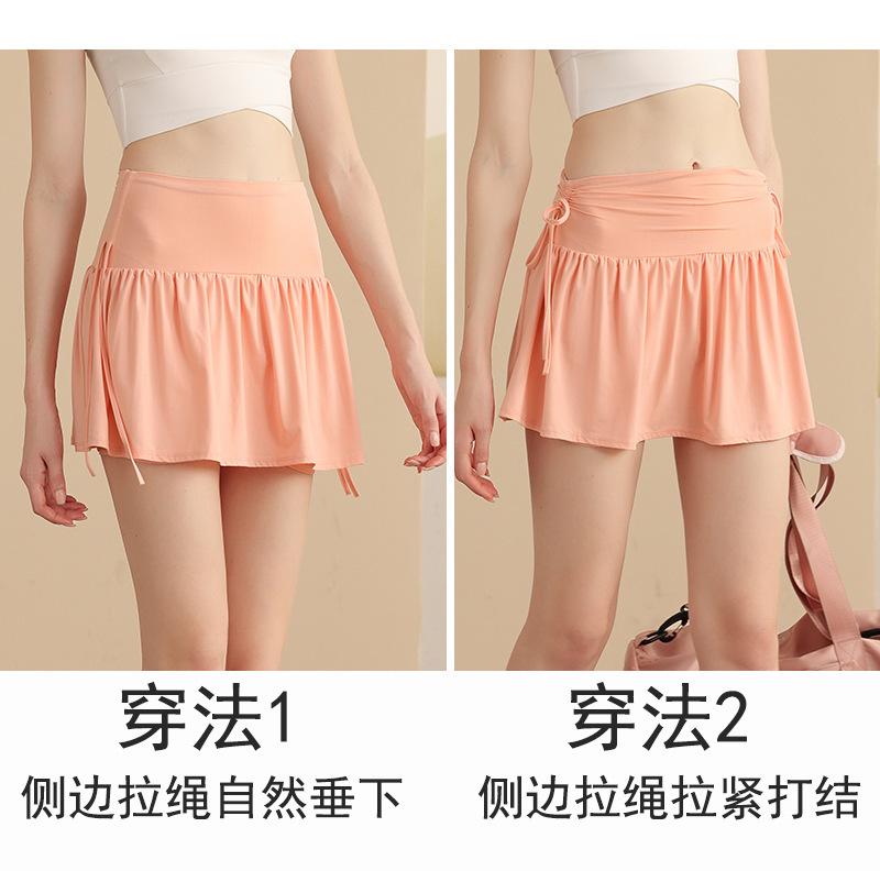 Verano Cintura Alta Cordón Antirozaduras Fitness Yoga Falda para Mujer Fresca Transpirable Adelgazante para Correr Ropa Exterior Falda de Tenis