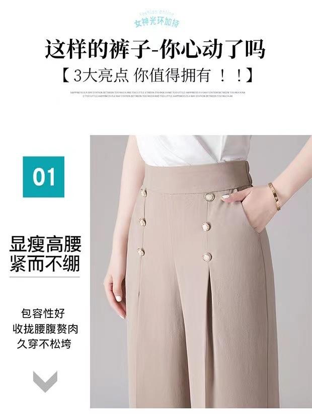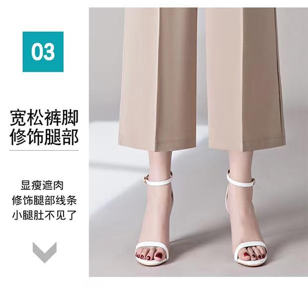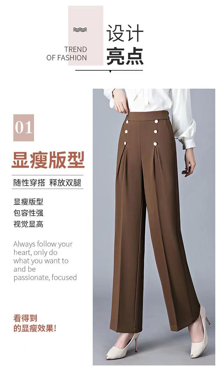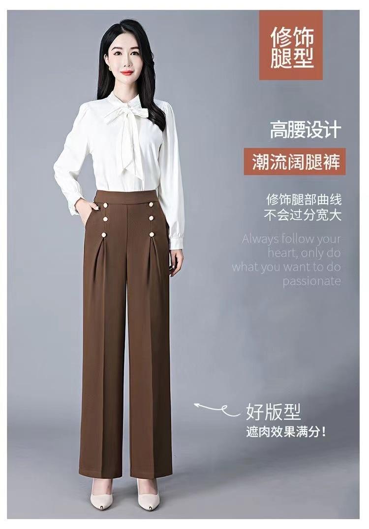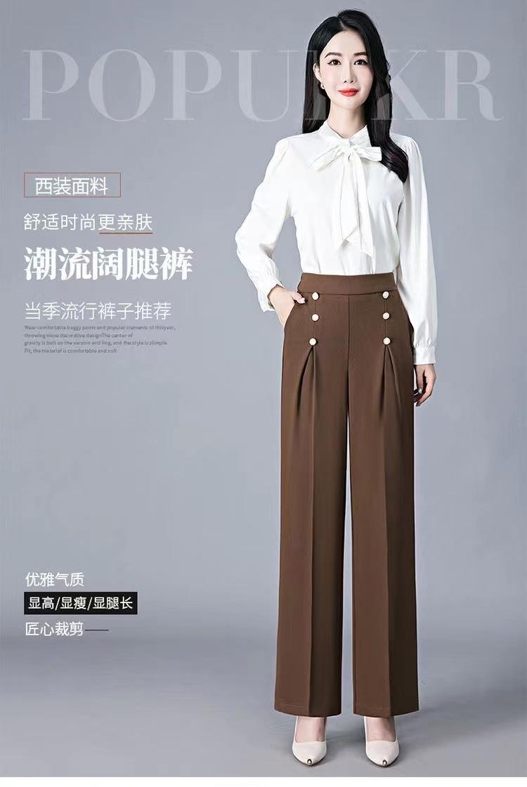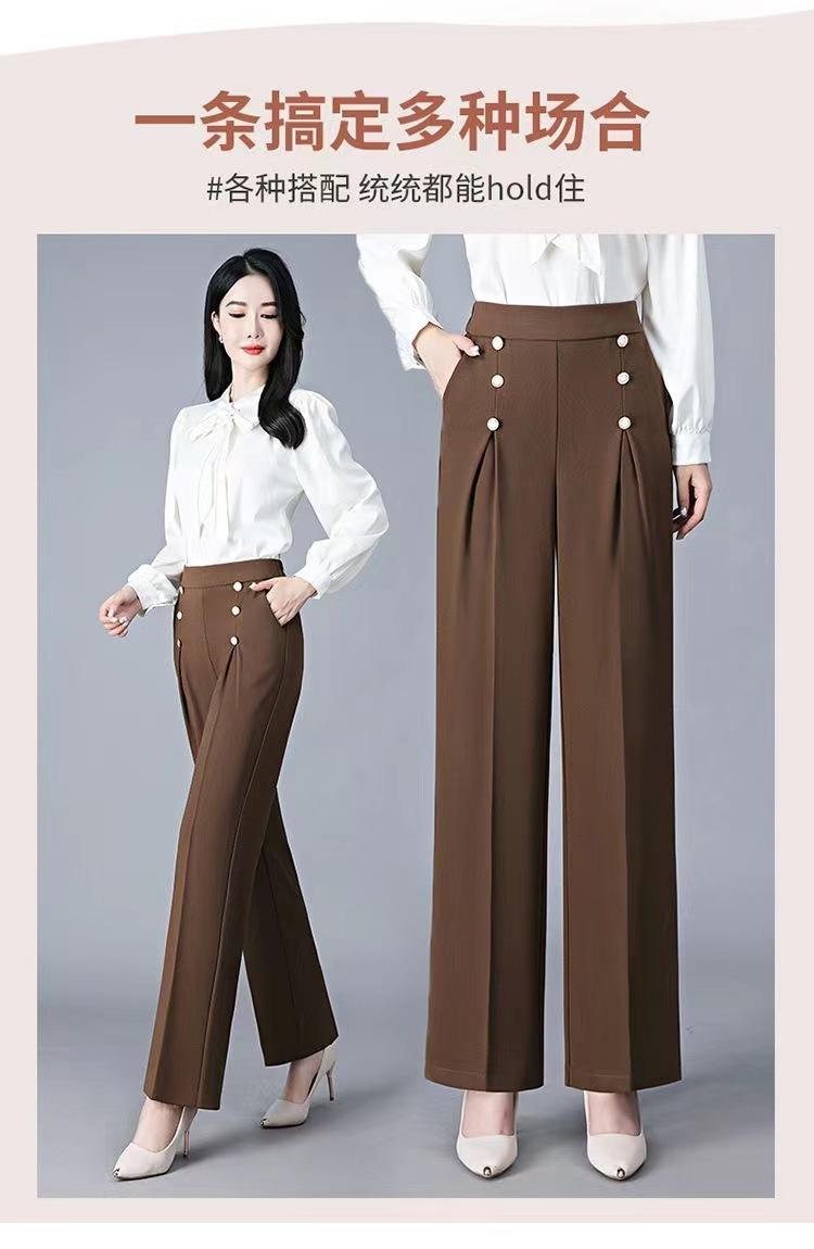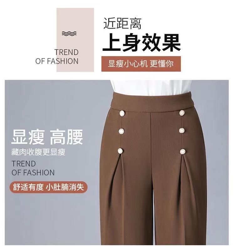 Pantalones Drapeados de Pierna Ancha para Mujer, Otoño Nuevo Pantalones de Mamá de Gama Alta, Pantalones Casuales de Cintura Alta Sueltos Rectos Recortados
