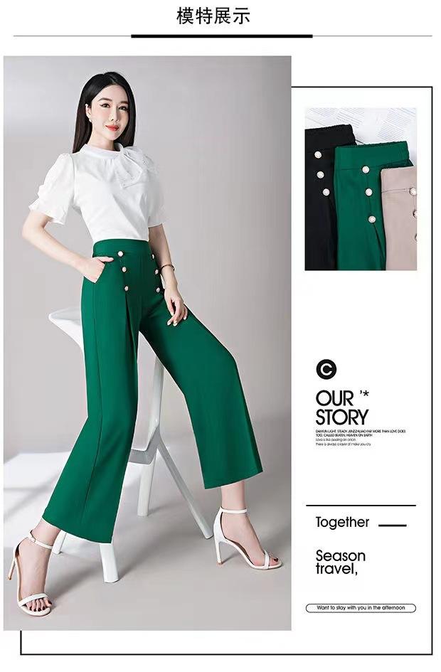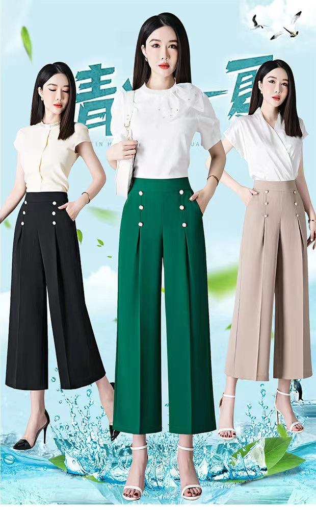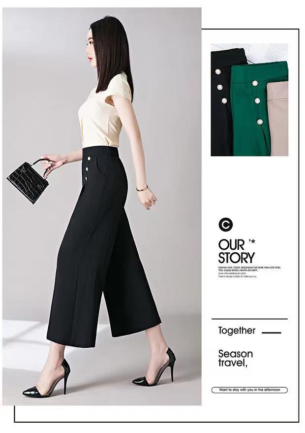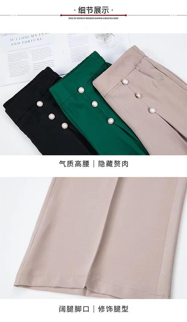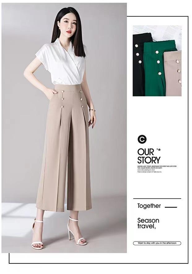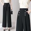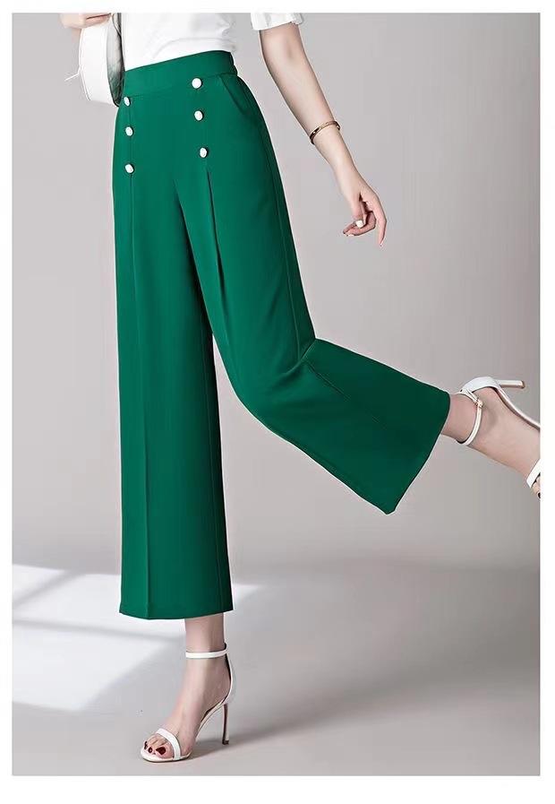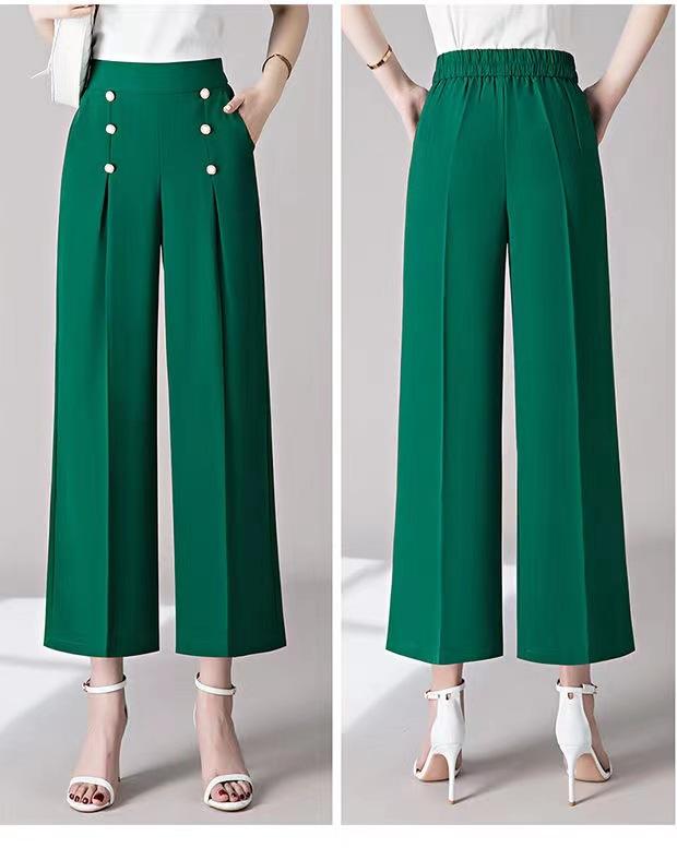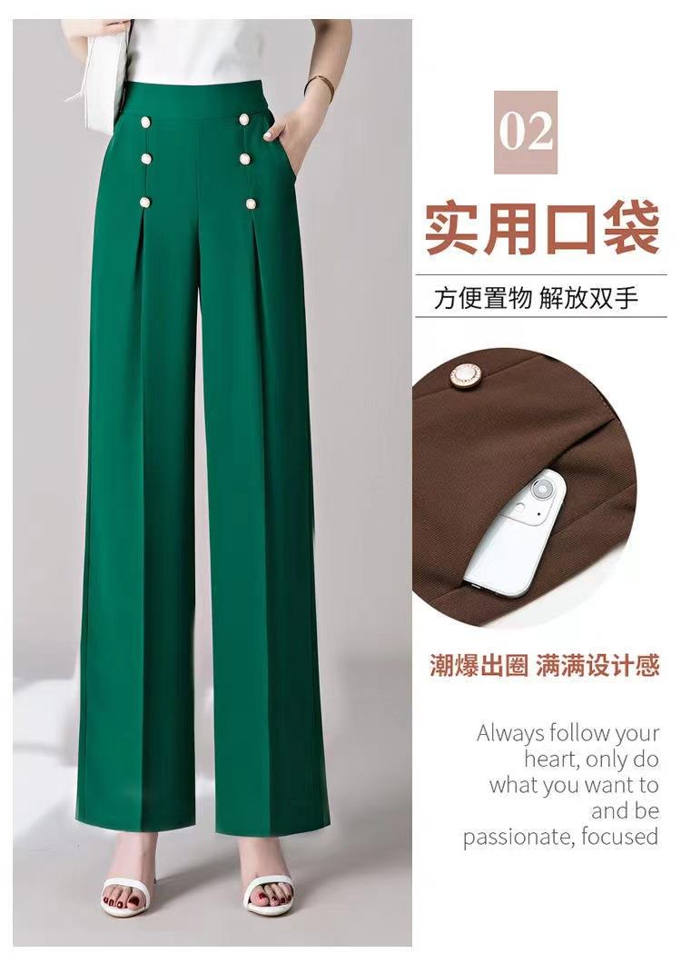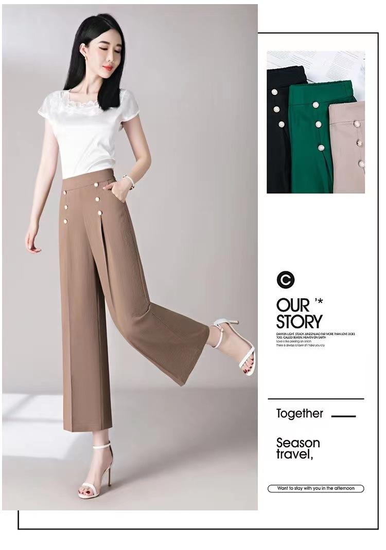 Pantalones Drapeados de Pierna Ancha para Mujer, Otoño Nuevo Pantalones de Mamá de Gama Alta, Pantalones Casuales de Cintura Alta Sueltos Rectos Recortados