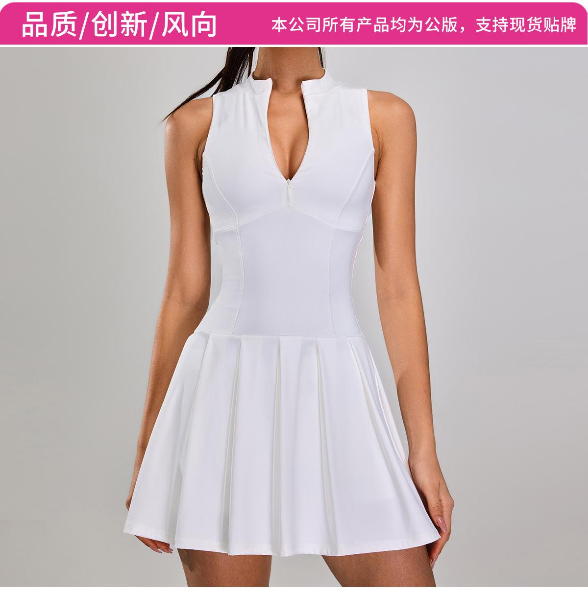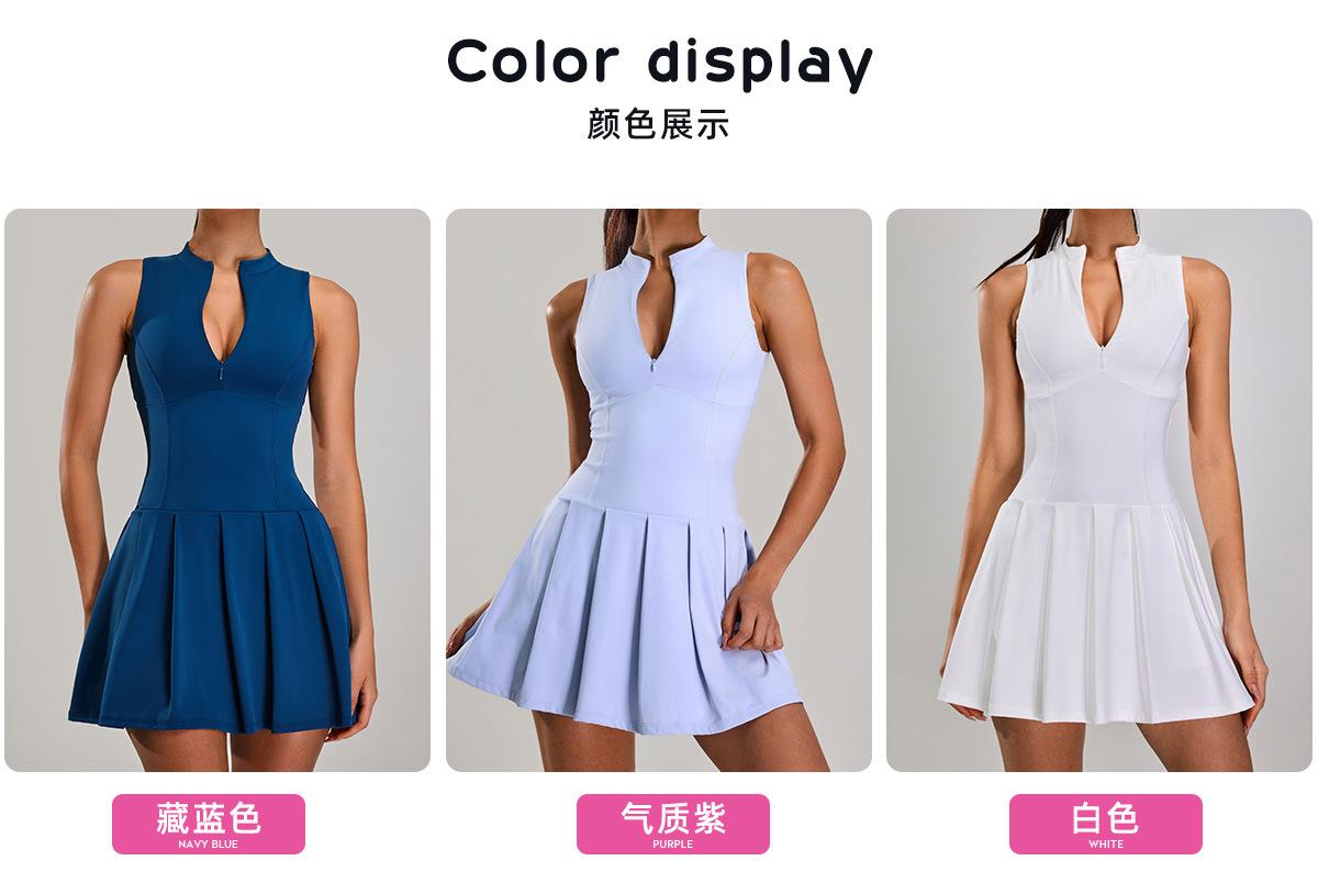 Vestido Deportivo Ajustado de Cintura Ajustada Transfronterizo para Mujer con Cremallera Antirozaduras Traje de Tenis para Correr al Aire Libre Fitness Falda de Tenis