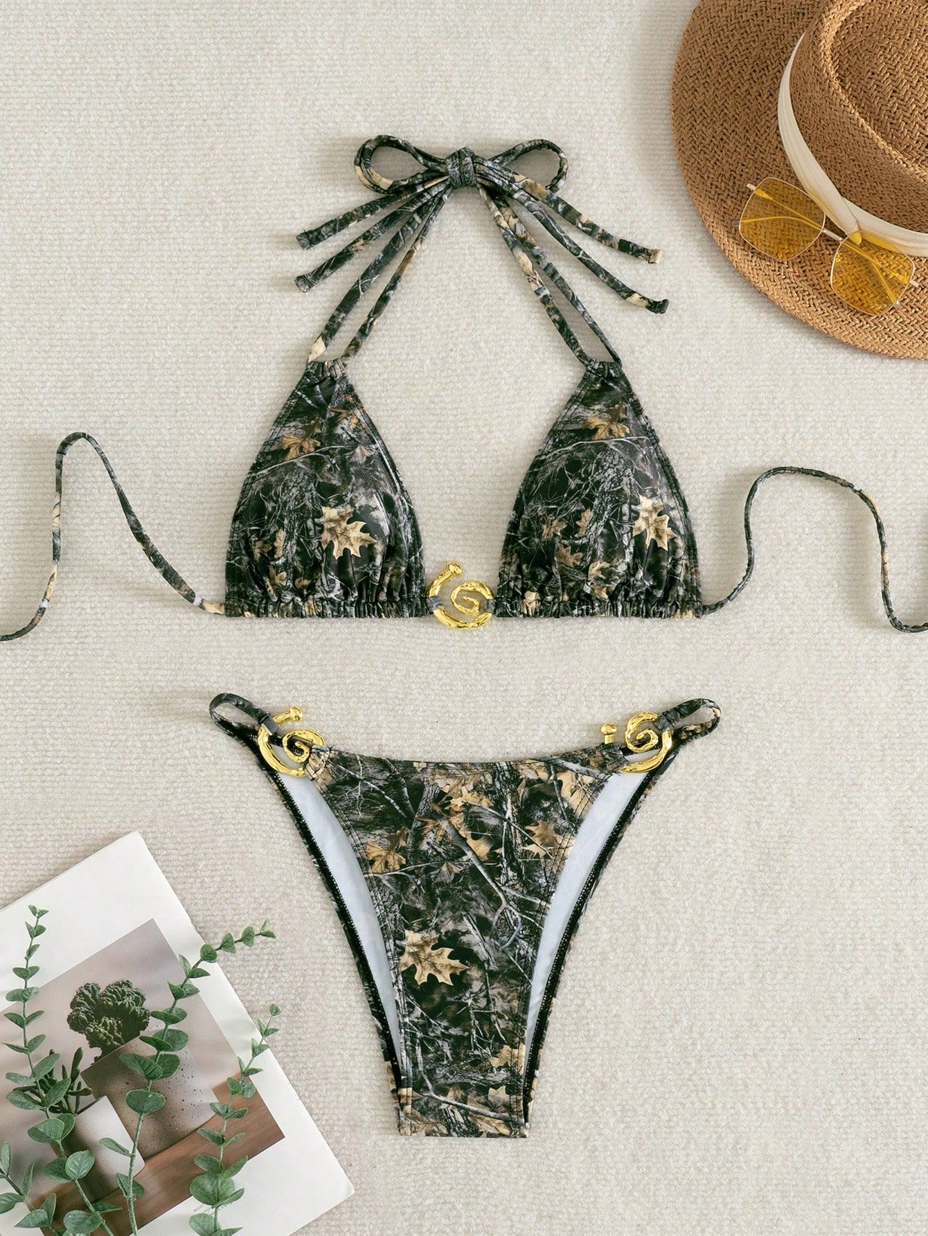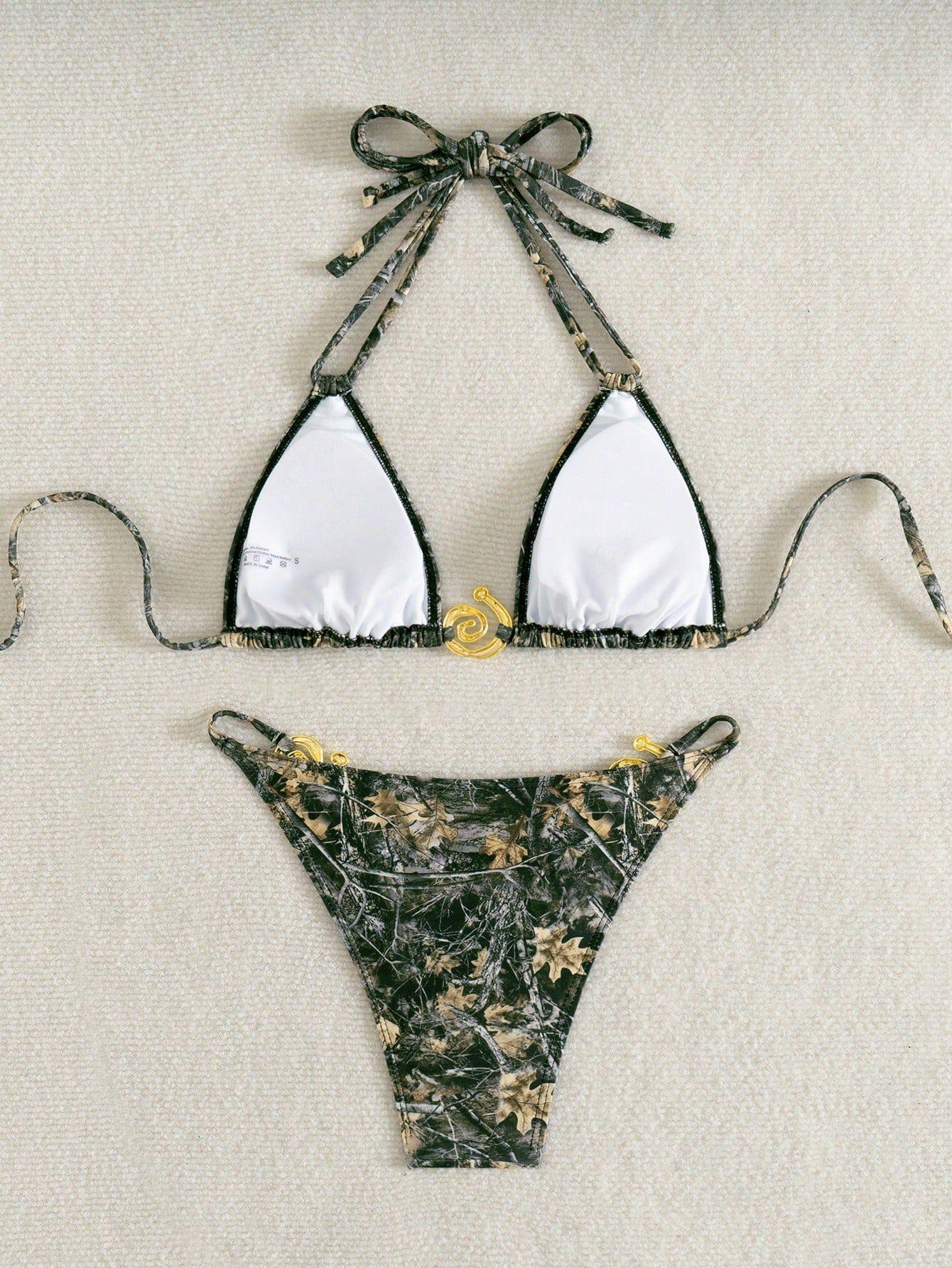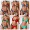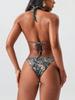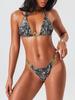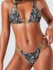 Traje de Baño Bikini Sexy Estampado Nuevo Europeo y Americano 2025 para Mujer con Encaje y Espalda Descubierta con Abertura