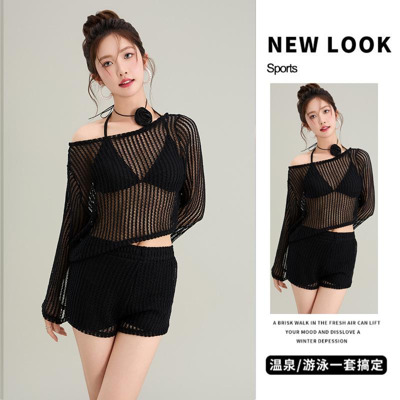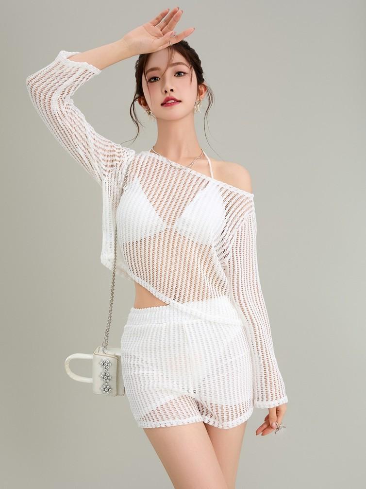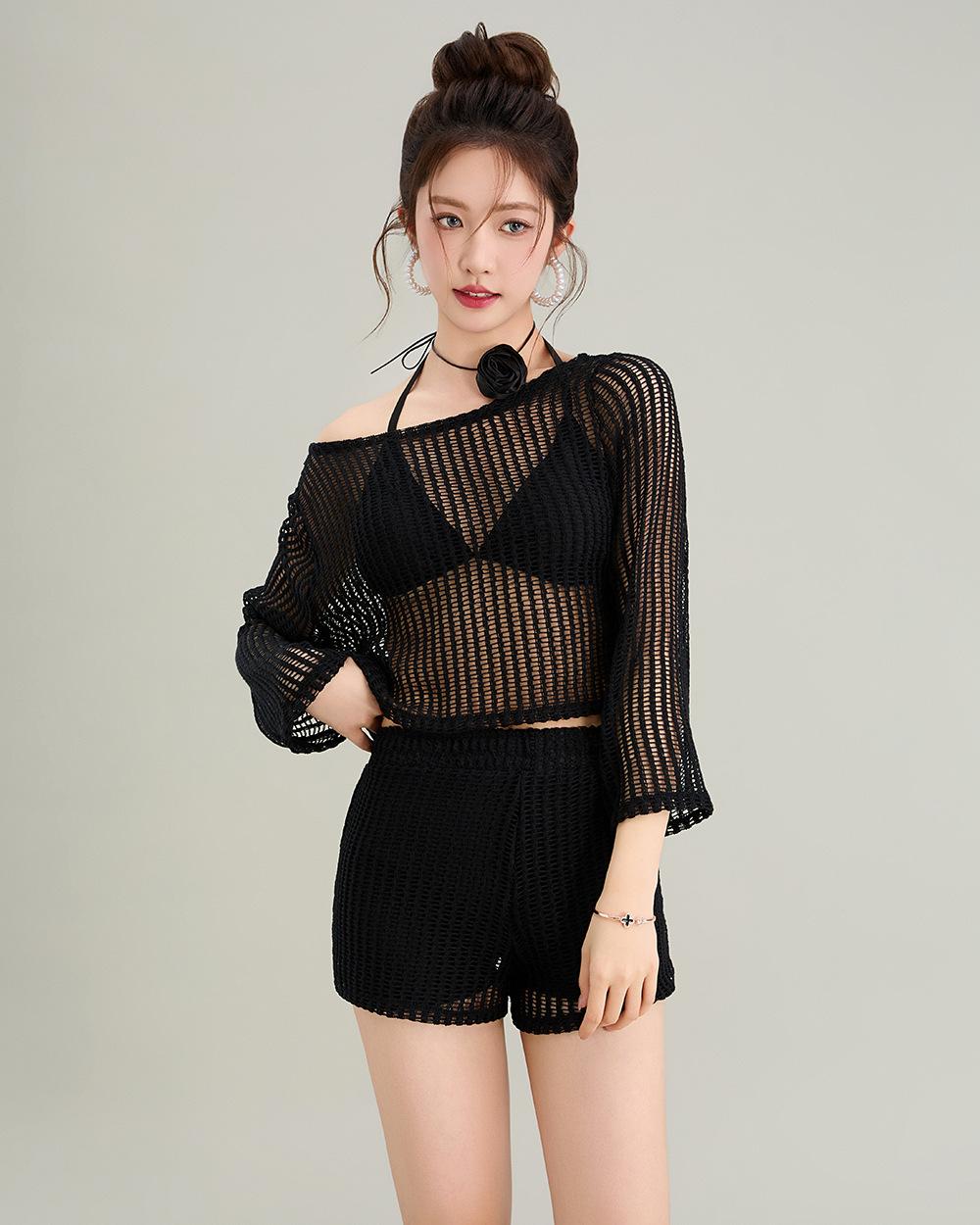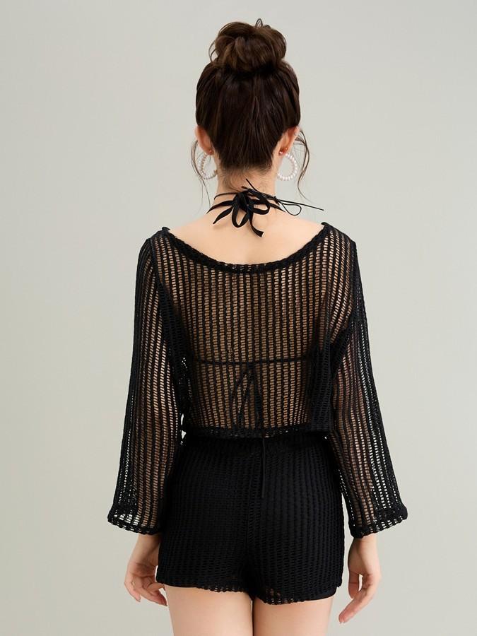 2025 Vacaciones en la Playa Manga Larga Sexy Bikini Cover-Up Traje de Baño Cut Out Protección Solar Ropa de Playa Traje de Baño para Mujer Ropa Exterior
