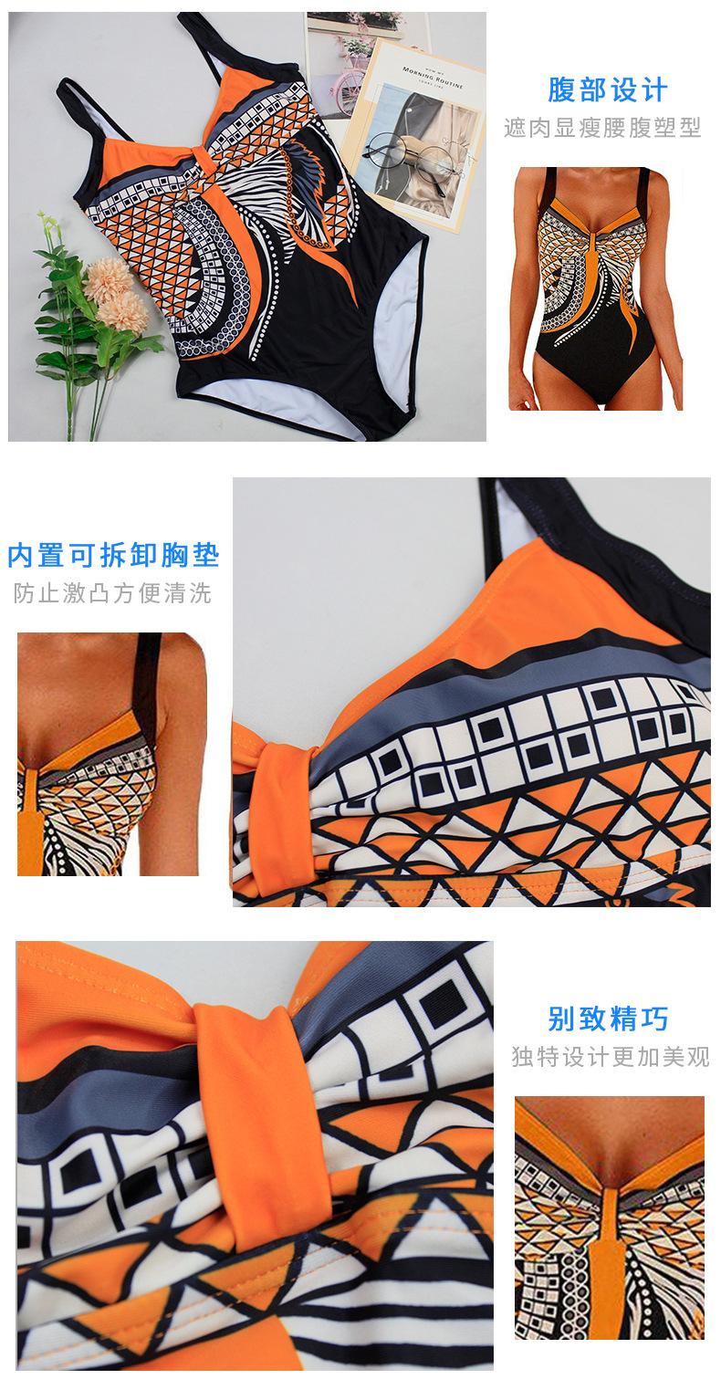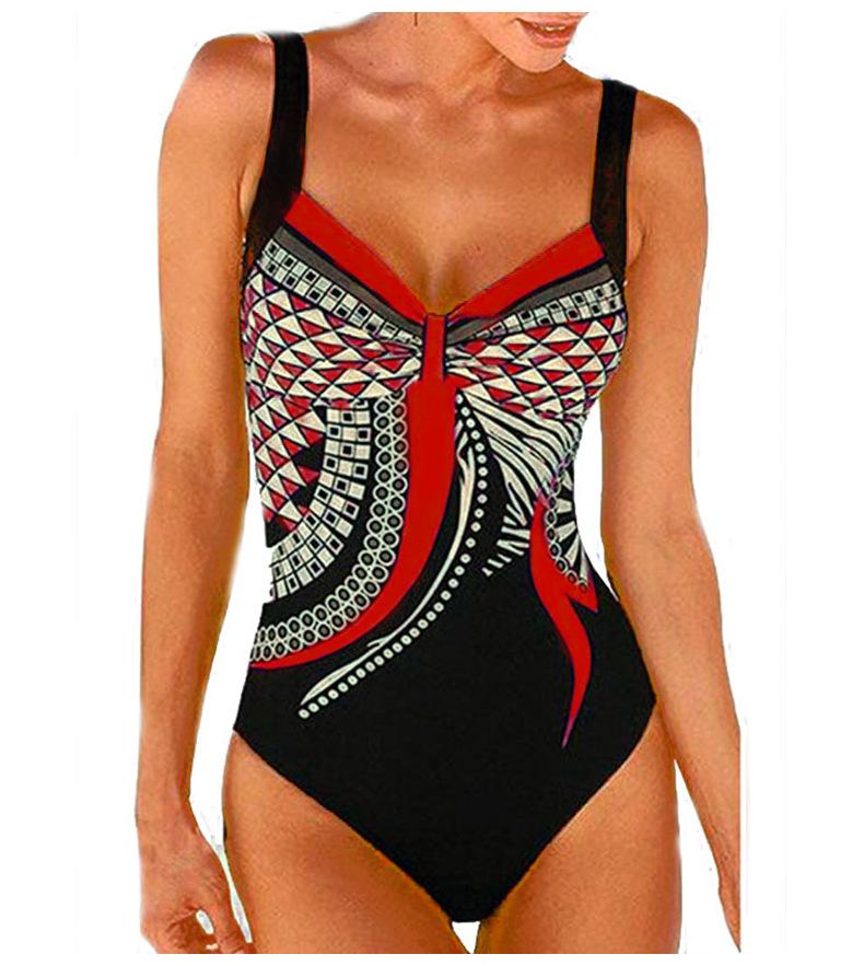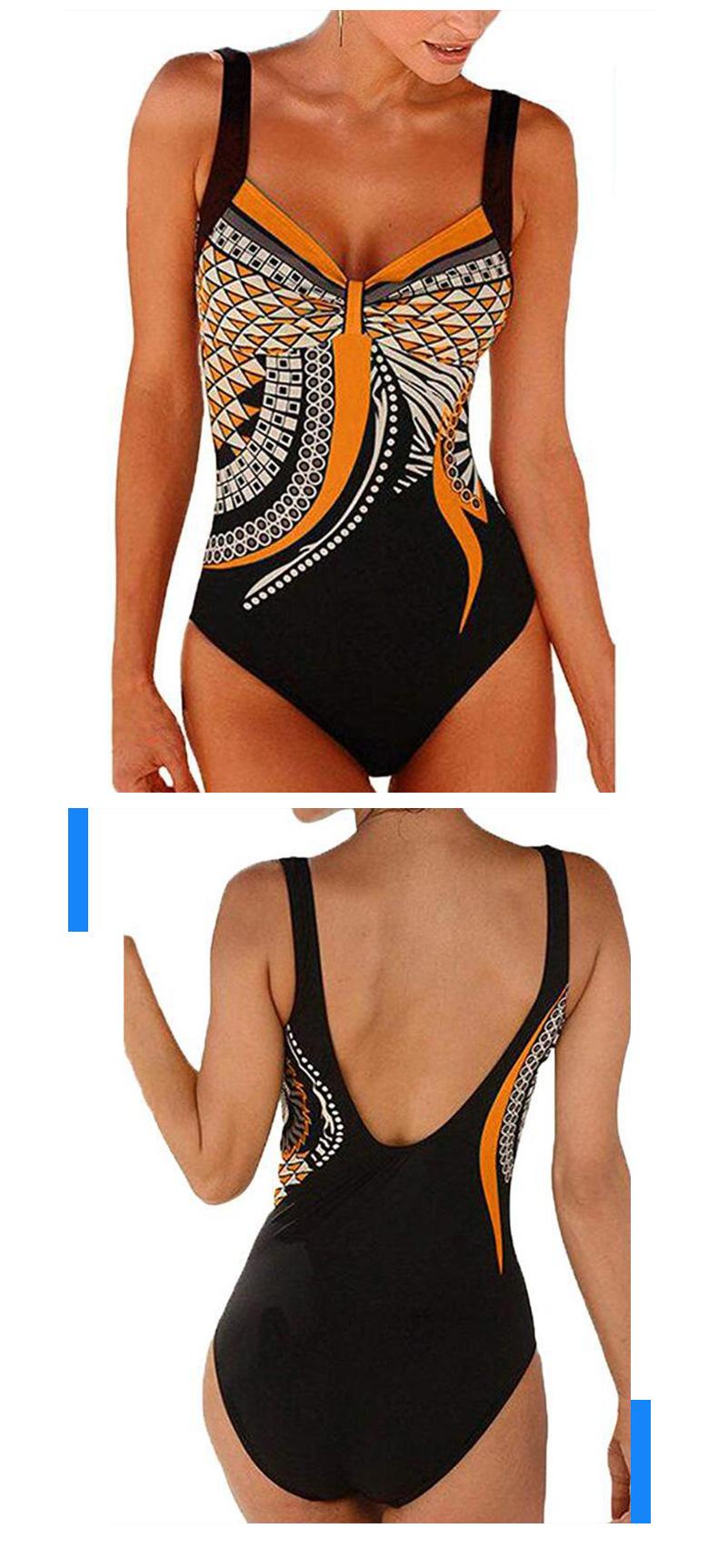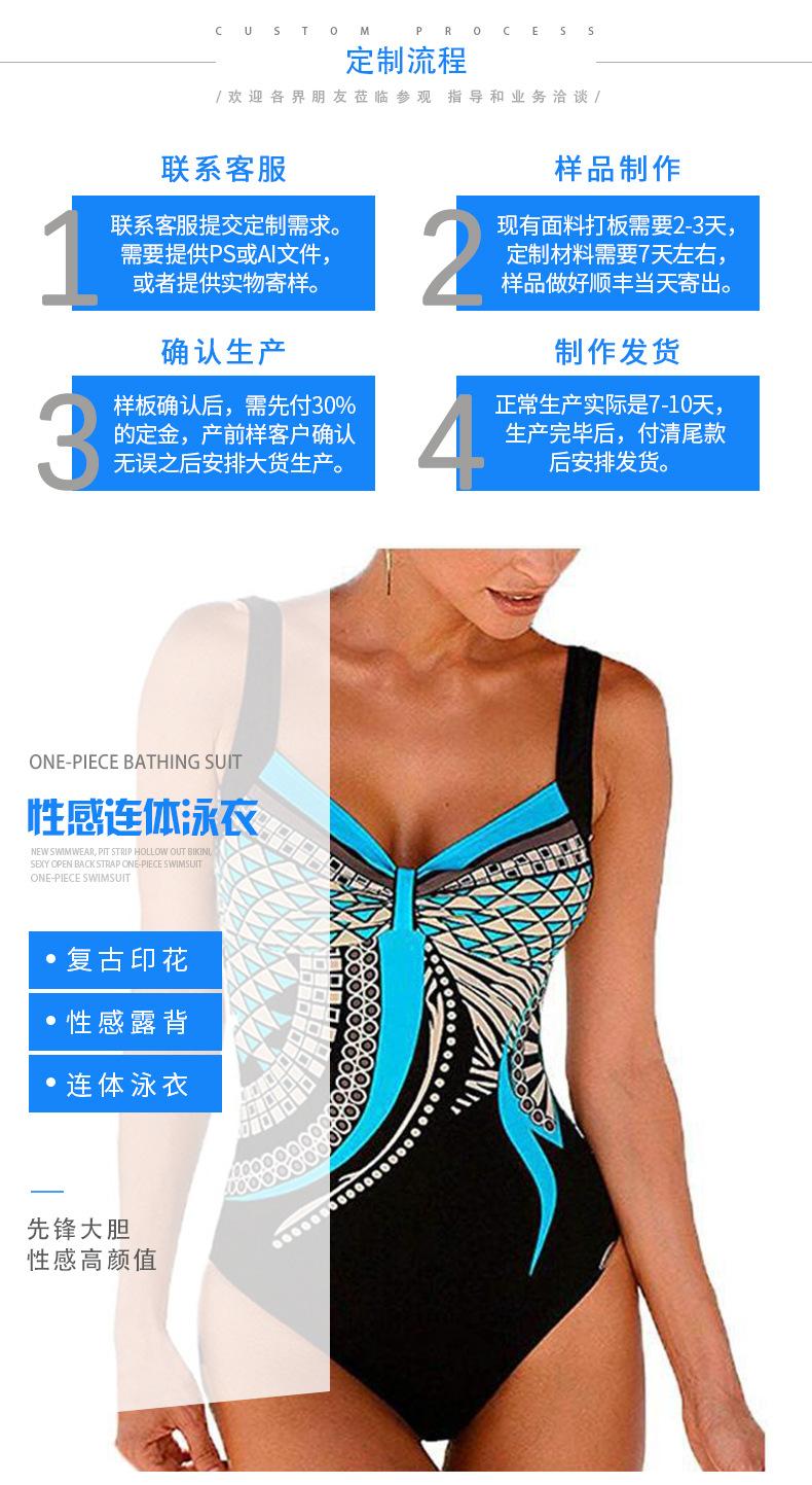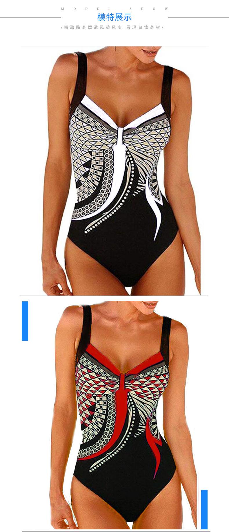 Amazon Nuevo Estilo Caliente Europeo y Americano Sling Estampado Retro Traje de Baño Entero Mujer Espalda Descubierta Traje de Baño Triángulo Ropa de Playa