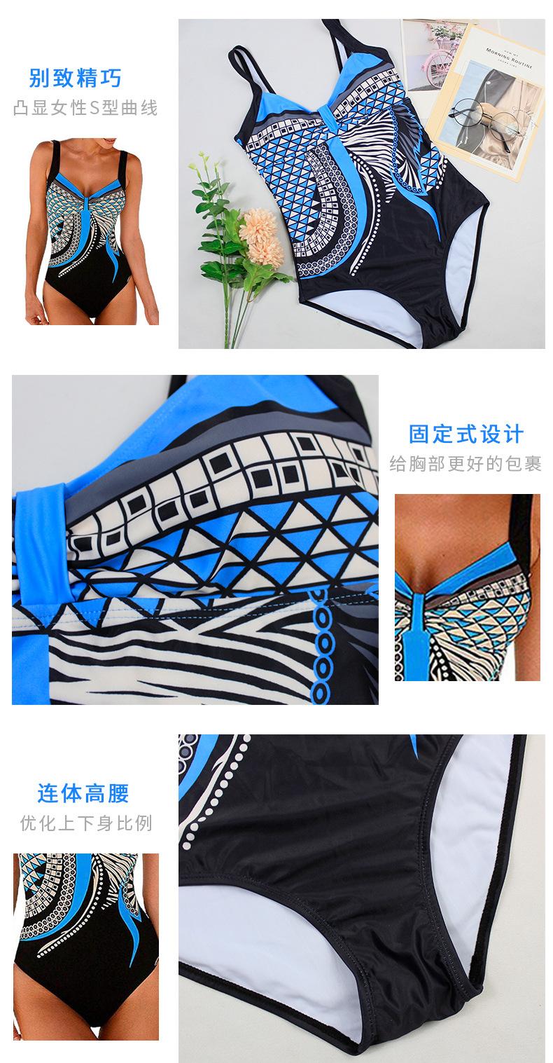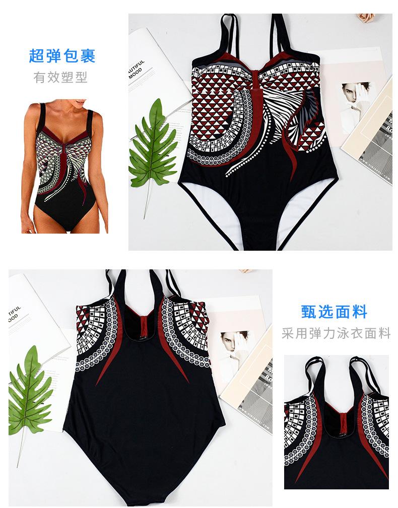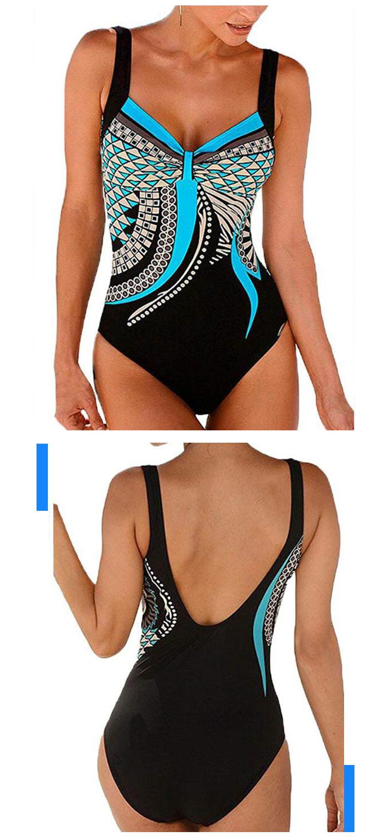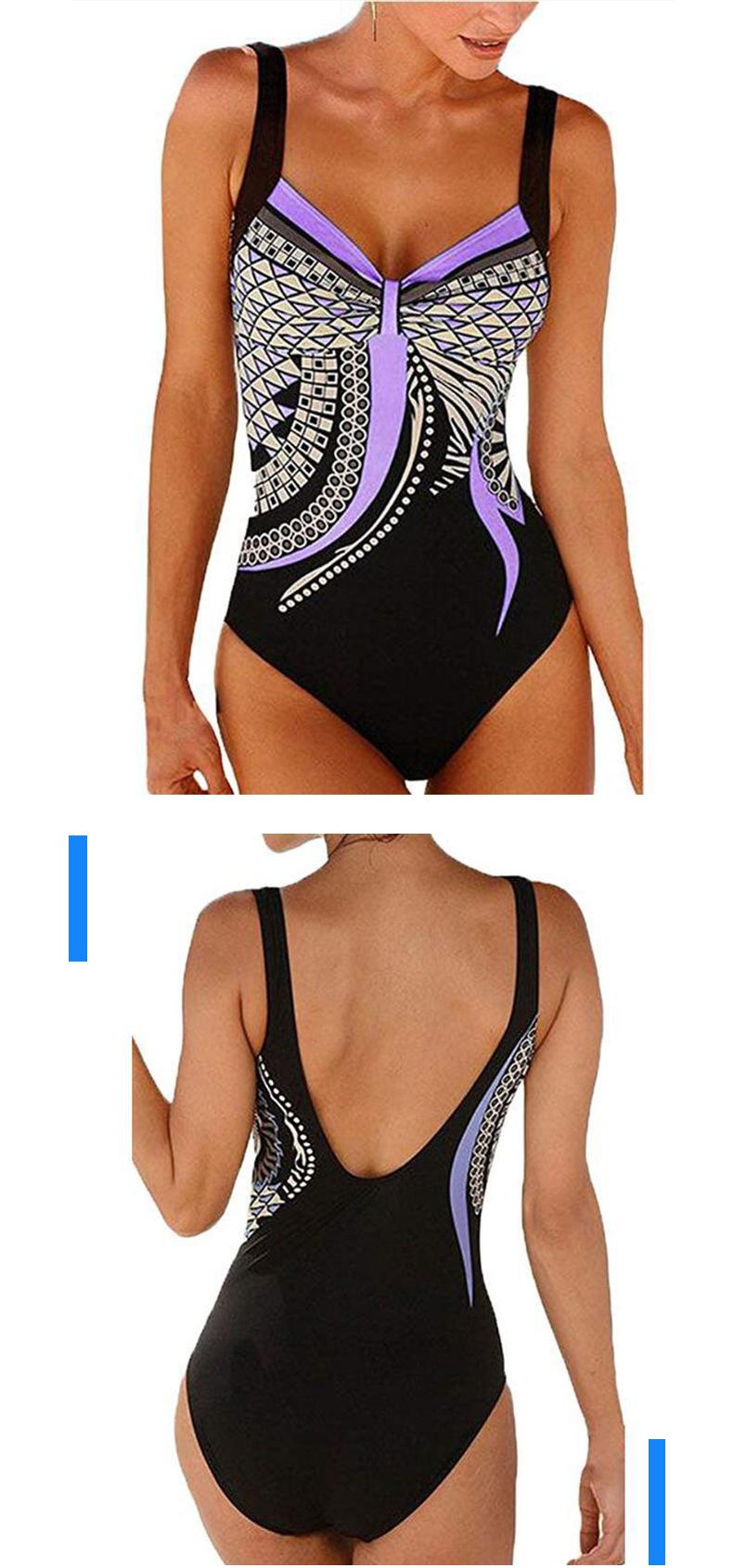 Amazon Nuevo Estilo Caliente Europeo y Americano Sling Estampado Retro Traje de Baño Entero Mujer Espalda Descubierta Traje de Baño Triángulo Ropa de Playa