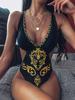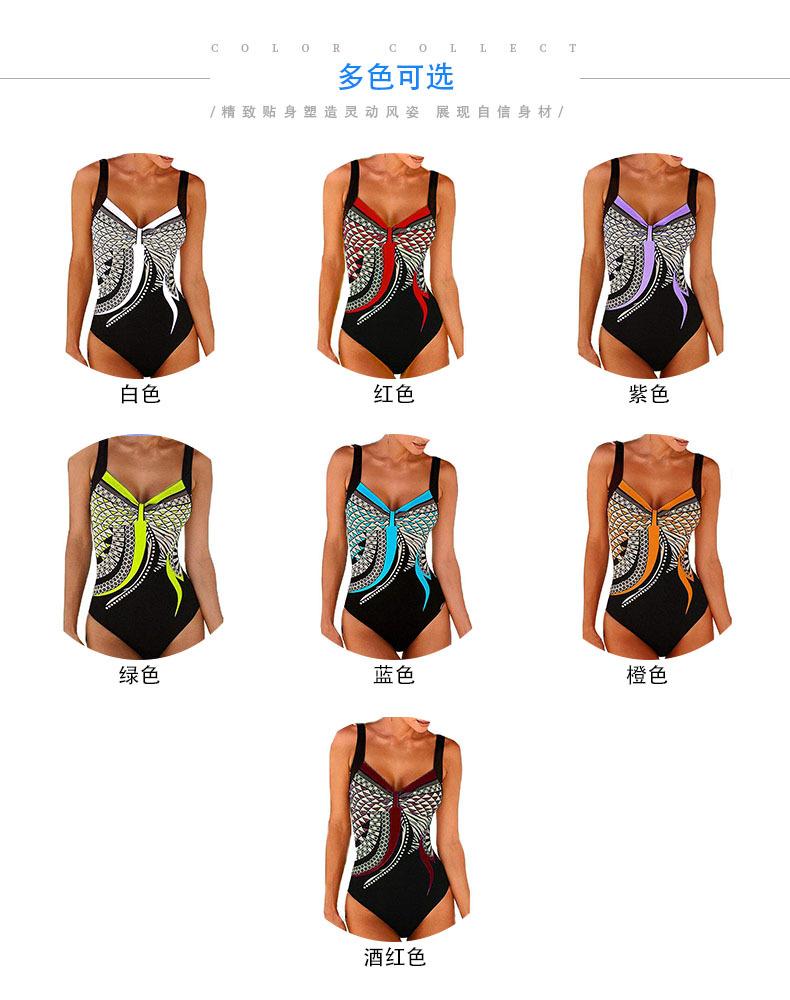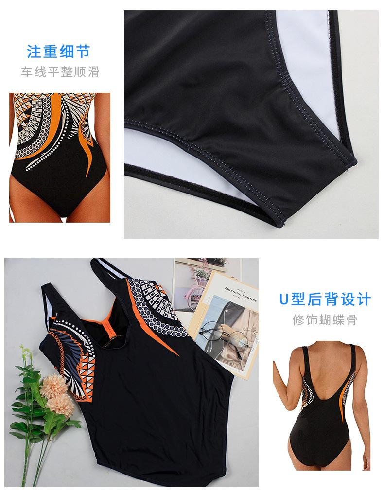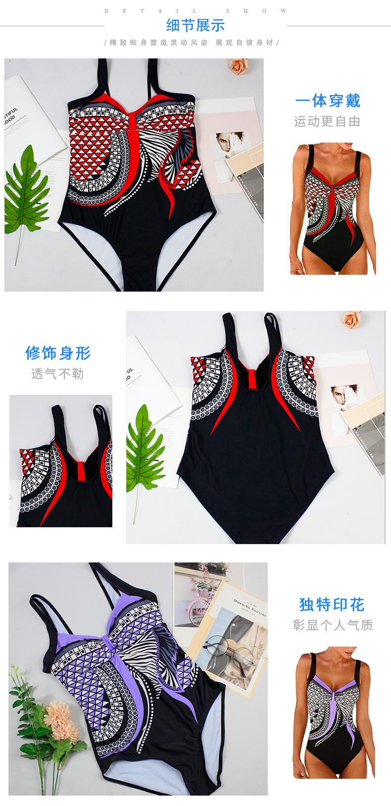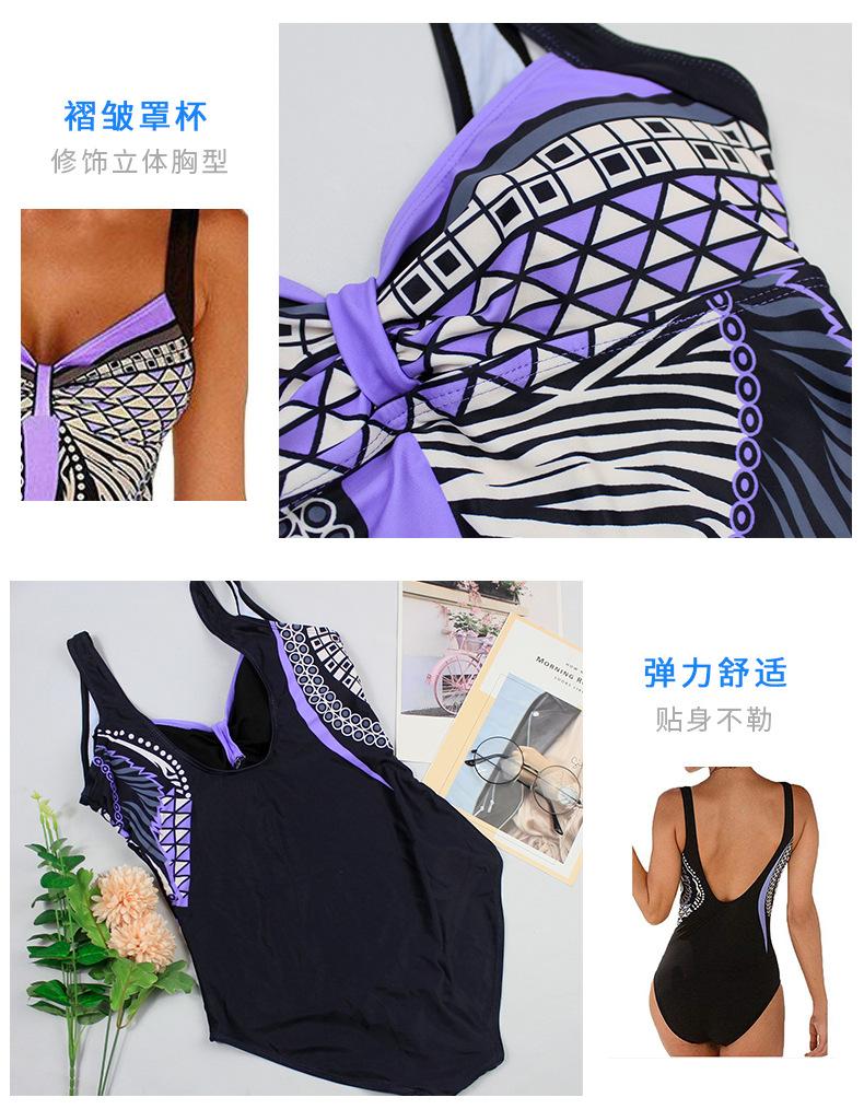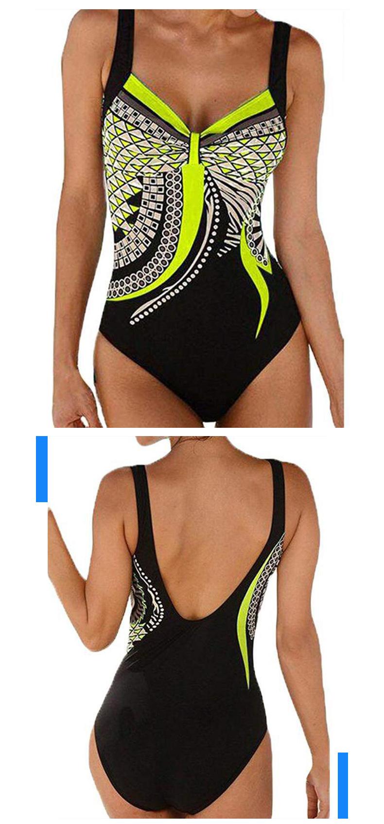Amazon Nuevo Estilo Caliente Europeo y Americano Sling Estampado Retro Traje de Baño Entero Mujer Espalda Descubierta Traje de Baño Triángulo Ropa de Playa