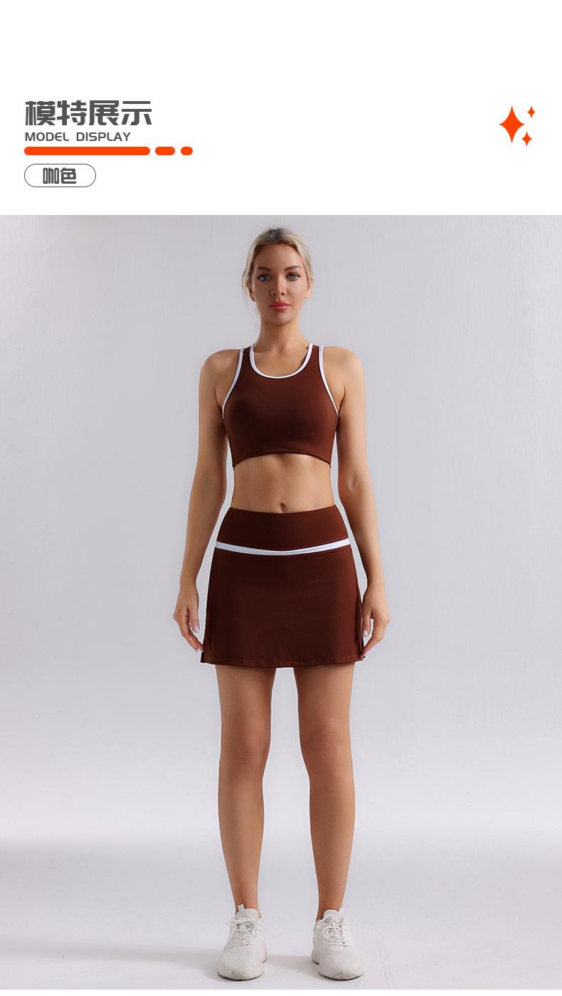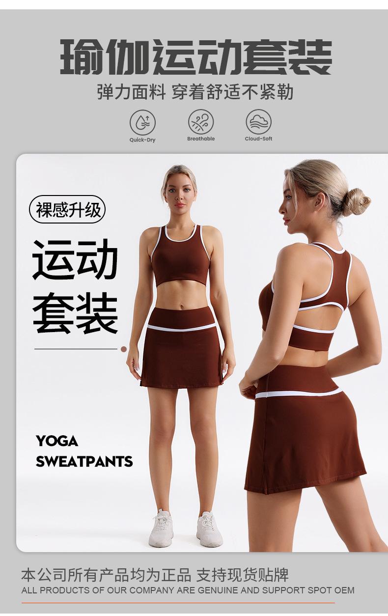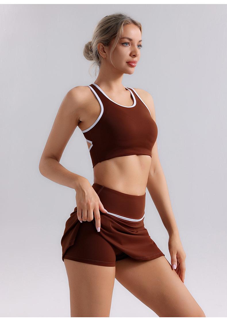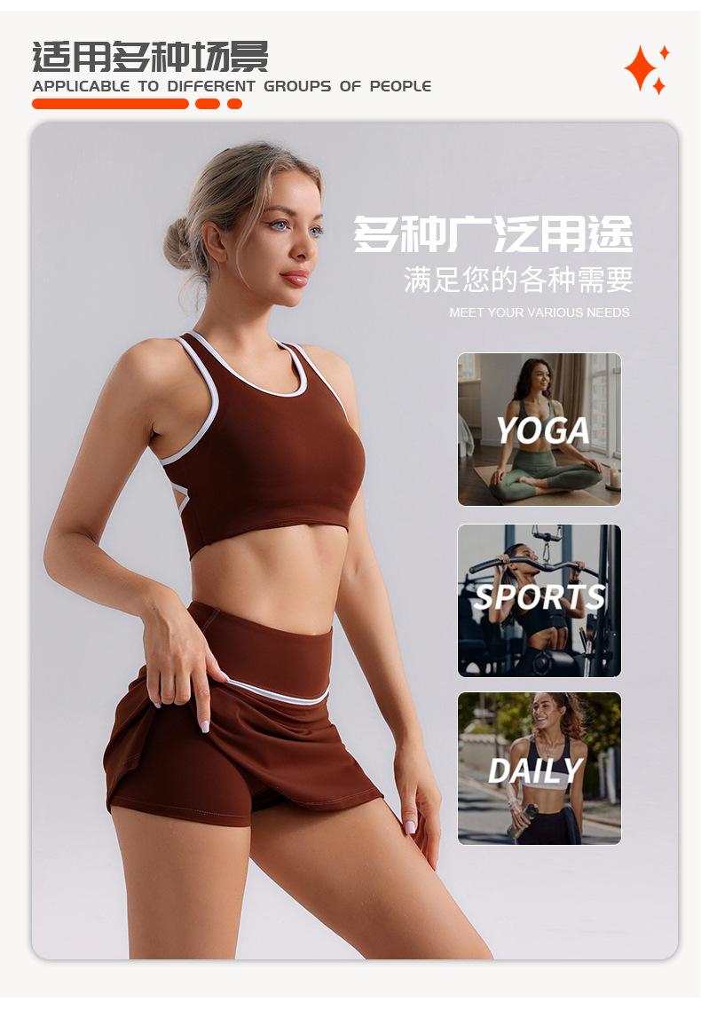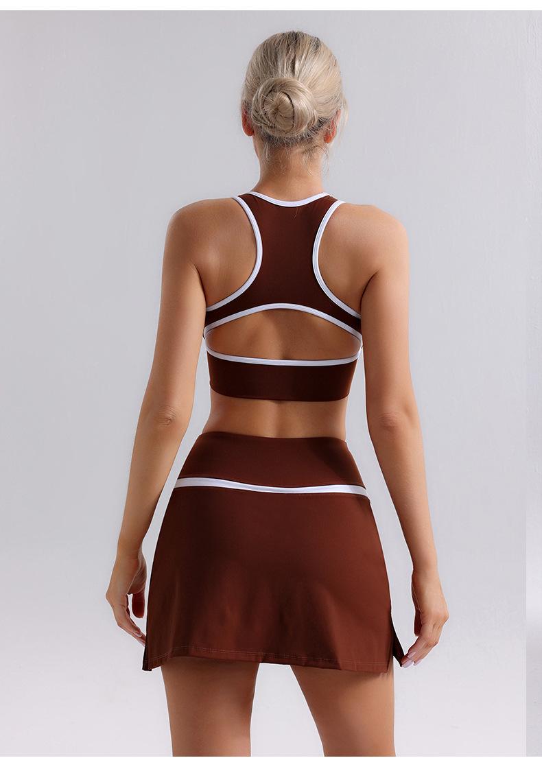 Traje de Ropa de Yoga de Contraste de Lijado Desnudo Sujetador Deportivo de Espalda para Mujer Running Secado Rápido Adelgazante Traje de Falda de Yoga