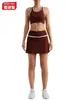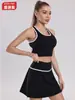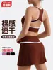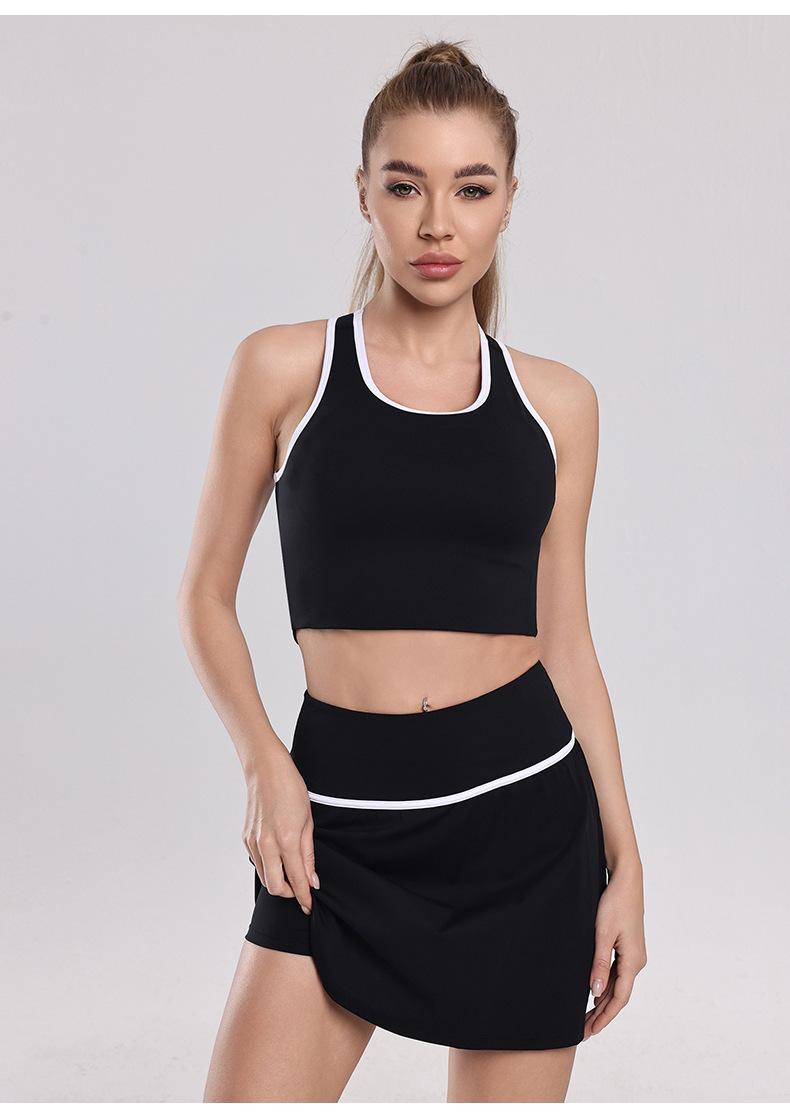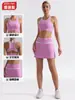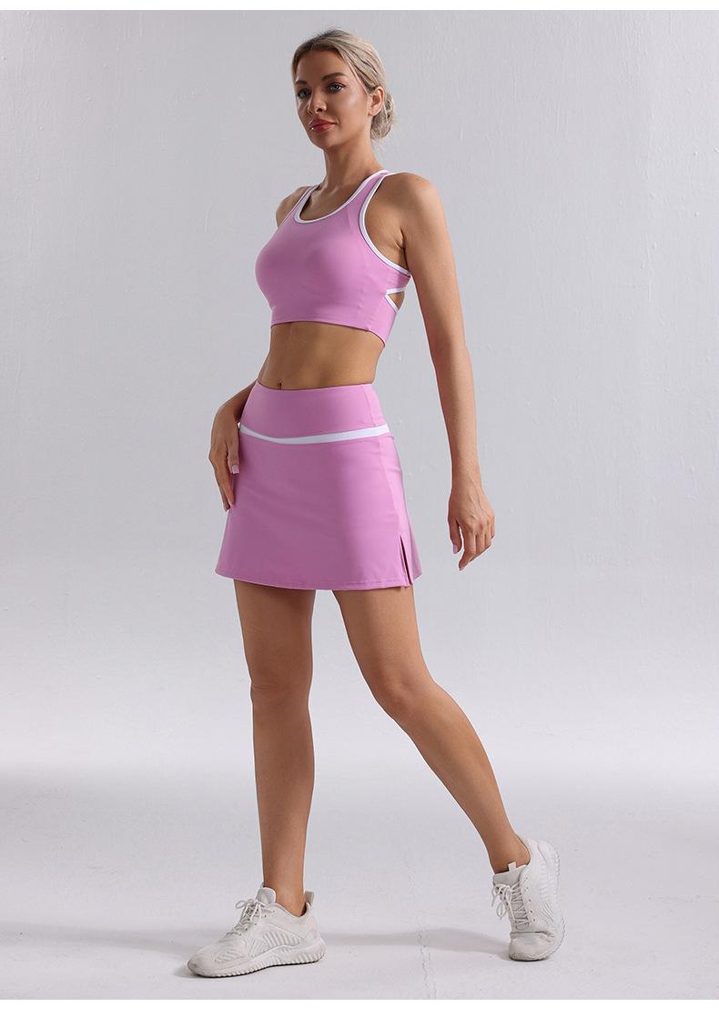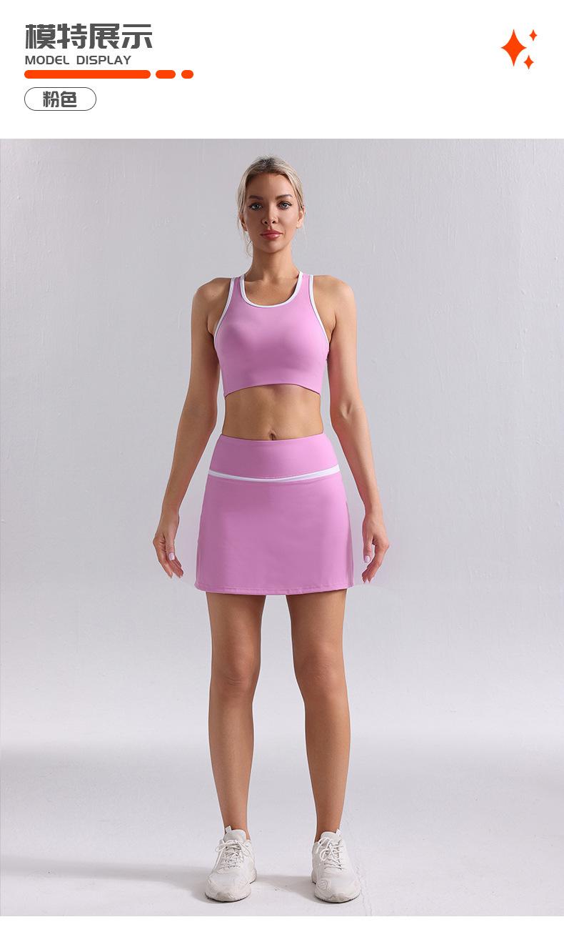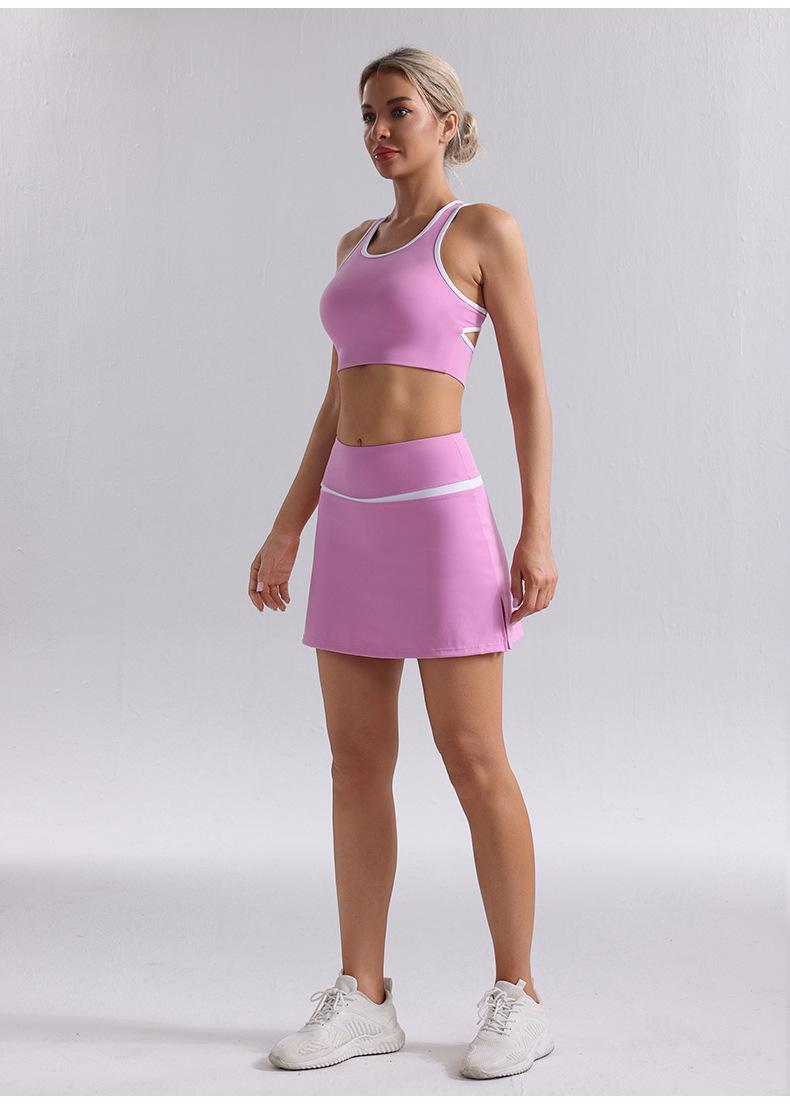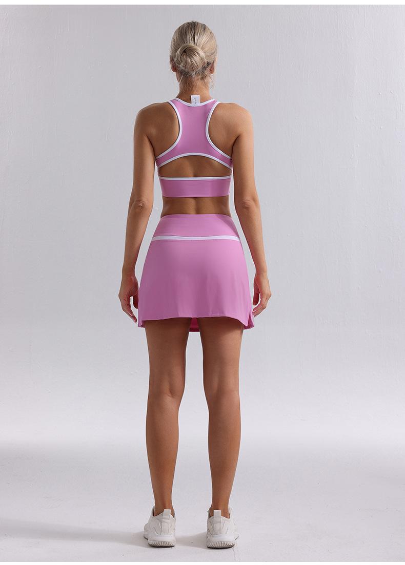 Traje de Ropa de Yoga de Contraste de Lijado Desnudo Sujetador Deportivo de Espalda para Mujer Running Secado Rápido Adelgazante Traje de Falda de Yoga